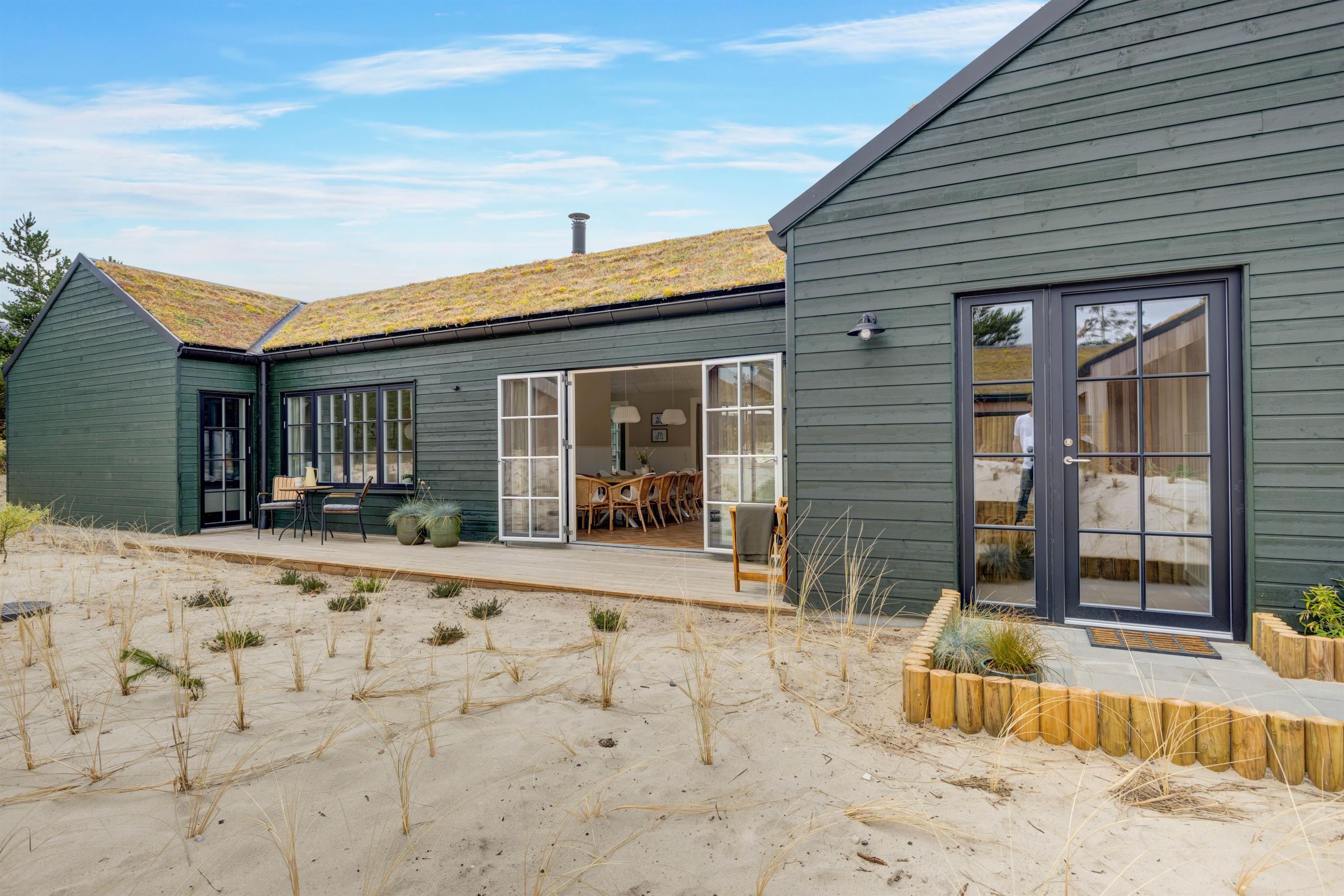 I huset på Søren Gades Mark 16A kan 12 personer og 2 hunde lade batterierne op og nyde livet, og dét finder I ikke smukkere rammer til end i det pragtfulde, grønne hus med græs på taget.