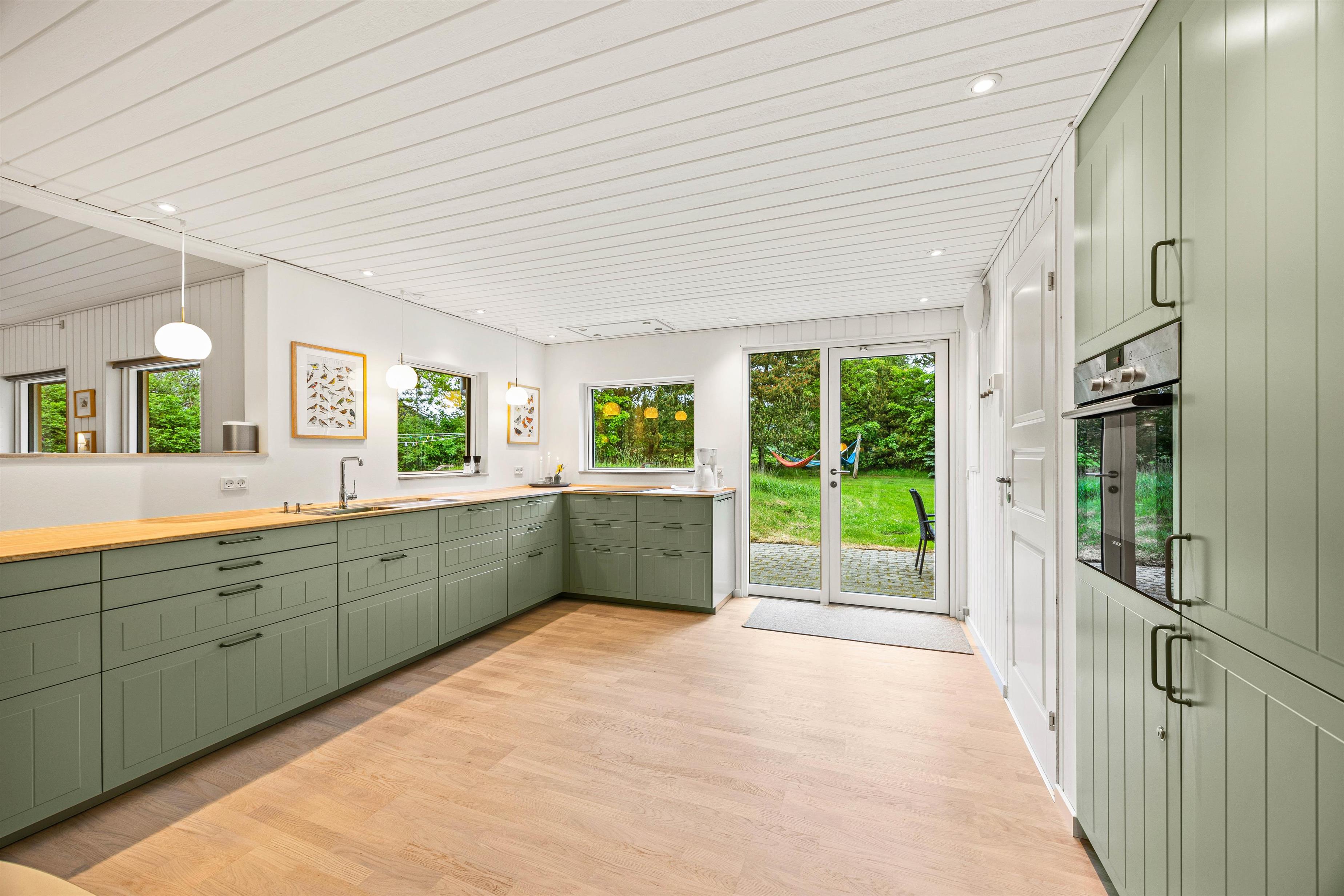 Sommerhusets 2 badeværelser gør det nemt for den store familie eller vennepar at dele pladsen, og det i 2025 renoverede og veludstyrede køkken giver jer mulighed for at tilberede lækre måltider sammen. Det flotte parketgulv med gulvvarme i køkkenet, spisestuen og sofastuen samt den effektive, moderne varmepumpe sørger for en behagelig indetemperatur året rundt.