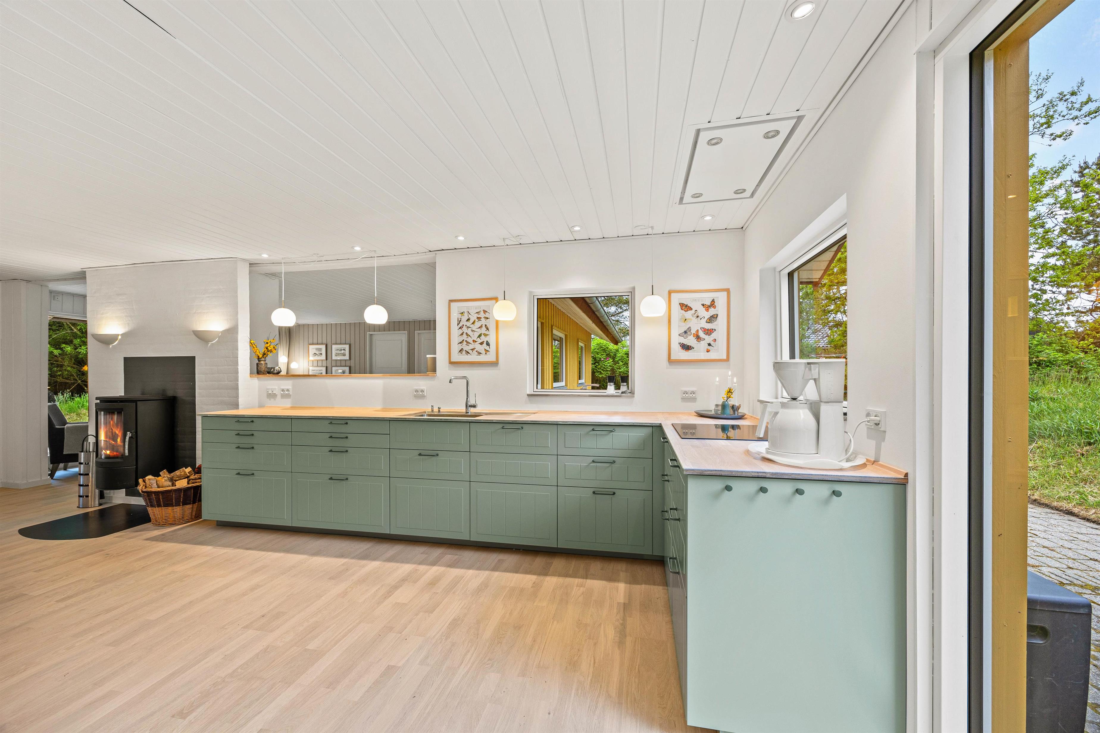 Efter en dag med udendørsaktiviteter kan I inde i huset på kolde dage nyde en afslappende stund foran den knitrende brændeovn, der spreder varme og hygge i sommerhuset. Der er en chromecast i sommerhuset, så I kan se en sjov film, som I selv har valgt.