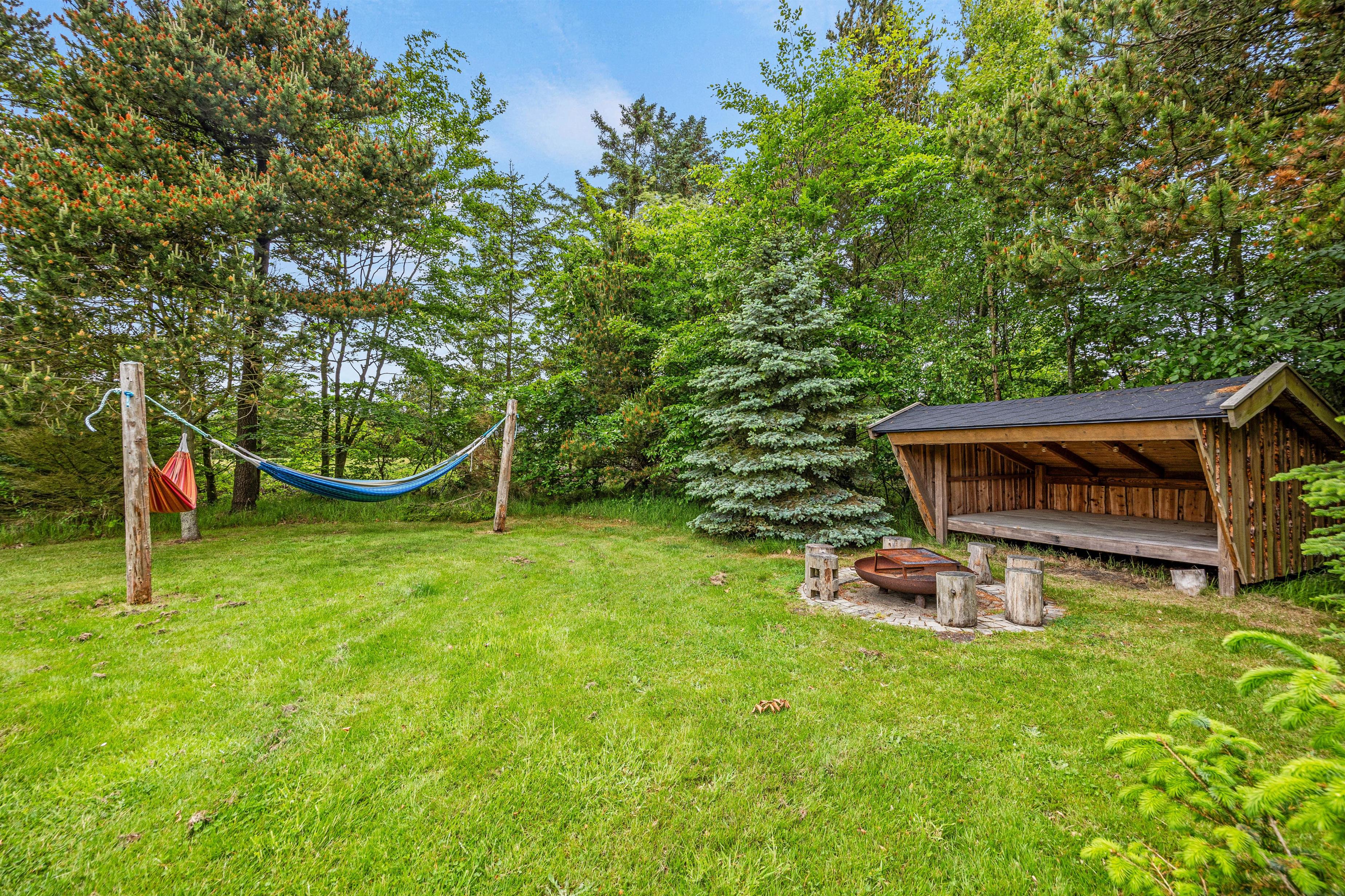 Udendørs byder sommerhuset på et skønt område med shelter og bålplads, hvor udelivet kan nydes af store og små.