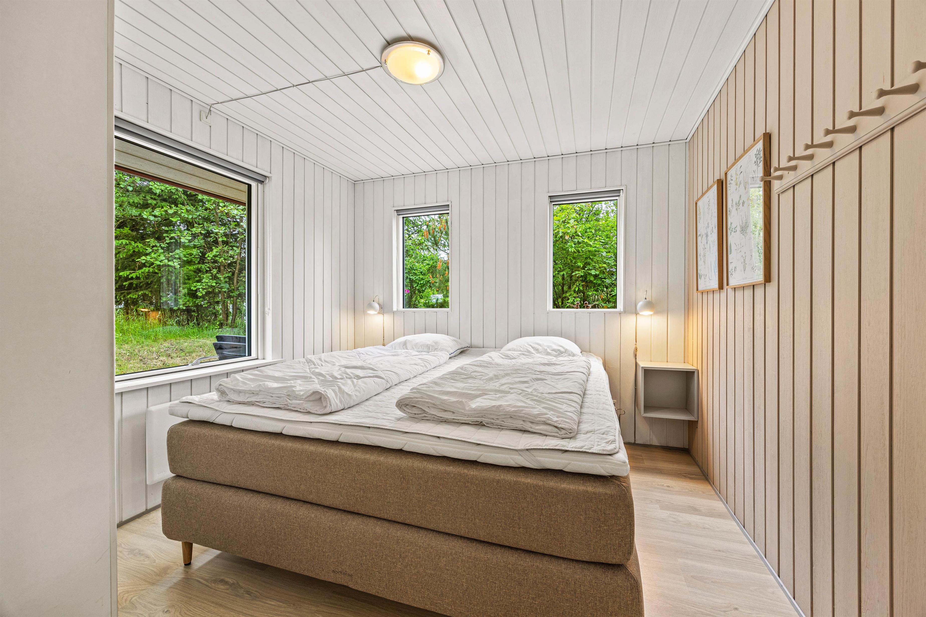 Når mørket falder på, og I skal til køjs, kan I fordele jer på de 4 soveværelser, der er indrettet med 2 dobbeltsenge og ialt 4 enkeltsenge, så I kan få en god nats søvn efter dagens oplevelser.