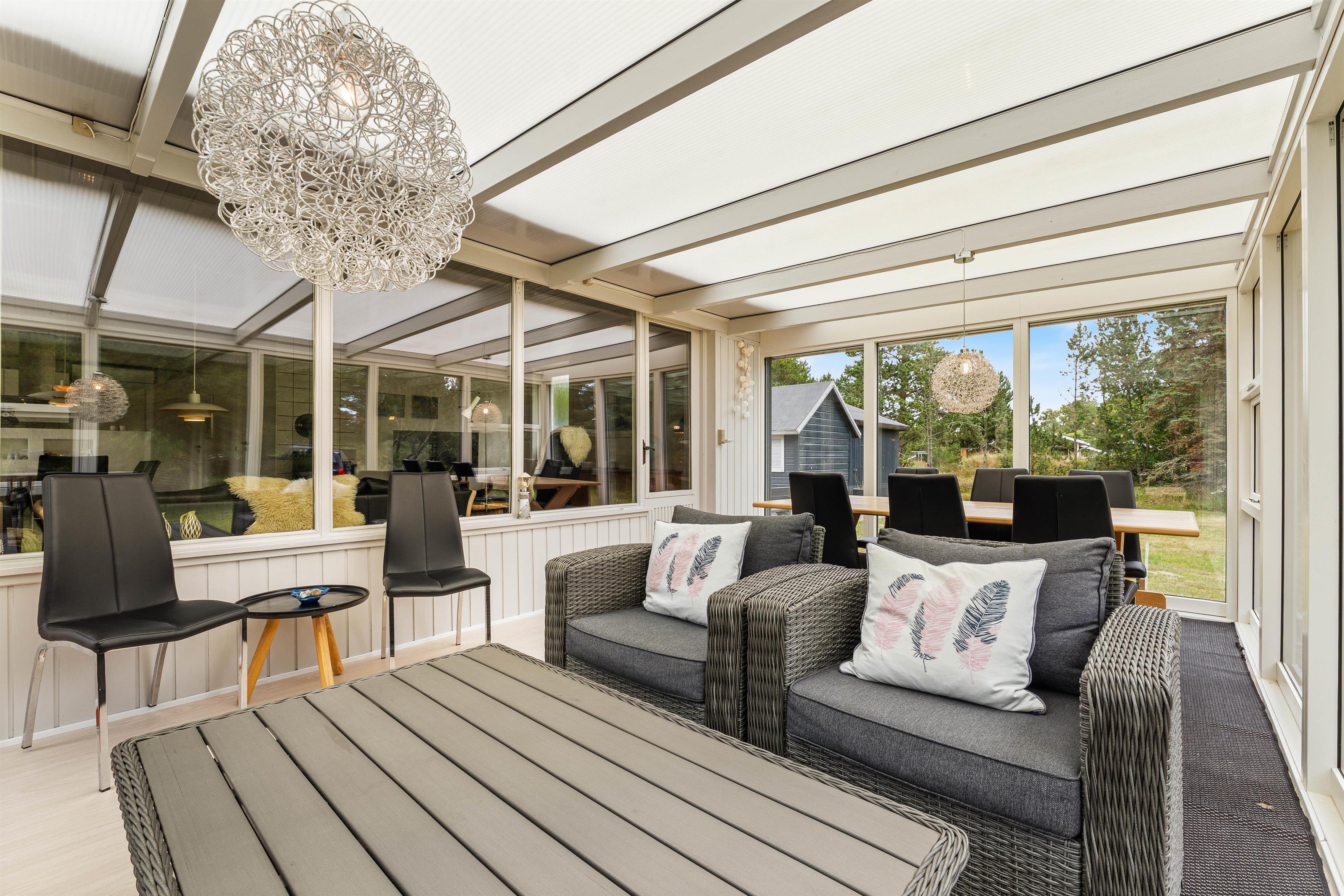 I udestuen kan I hygge jer og samtidigt nyde alt det grønne udenfor og solens stråler, selv i de kølige og blæsende efterårs- og vintermåneder, mens I sidder godt og lunt indendøre, måske med en friskbrygget kop kaffe og et spil kort...