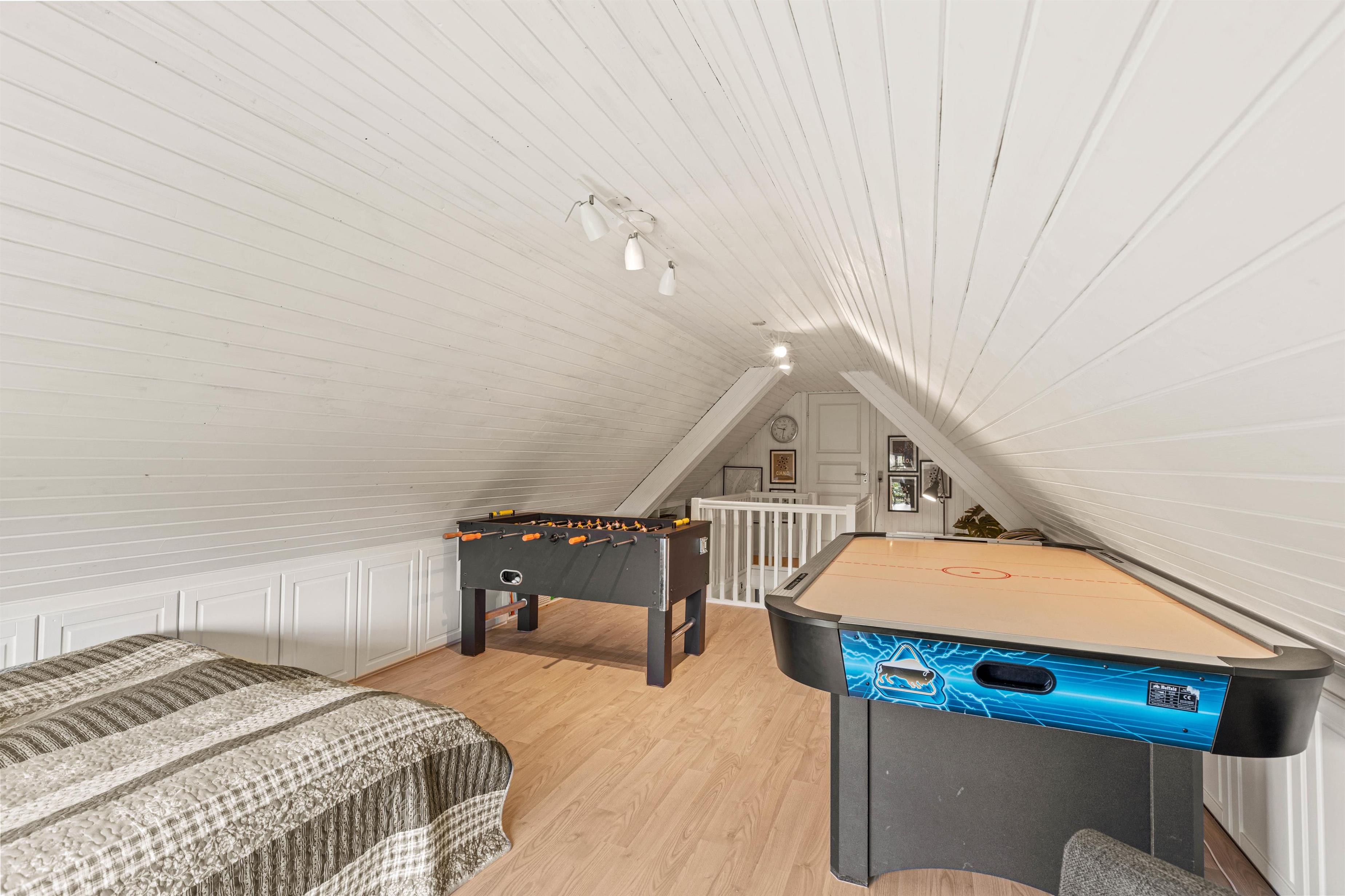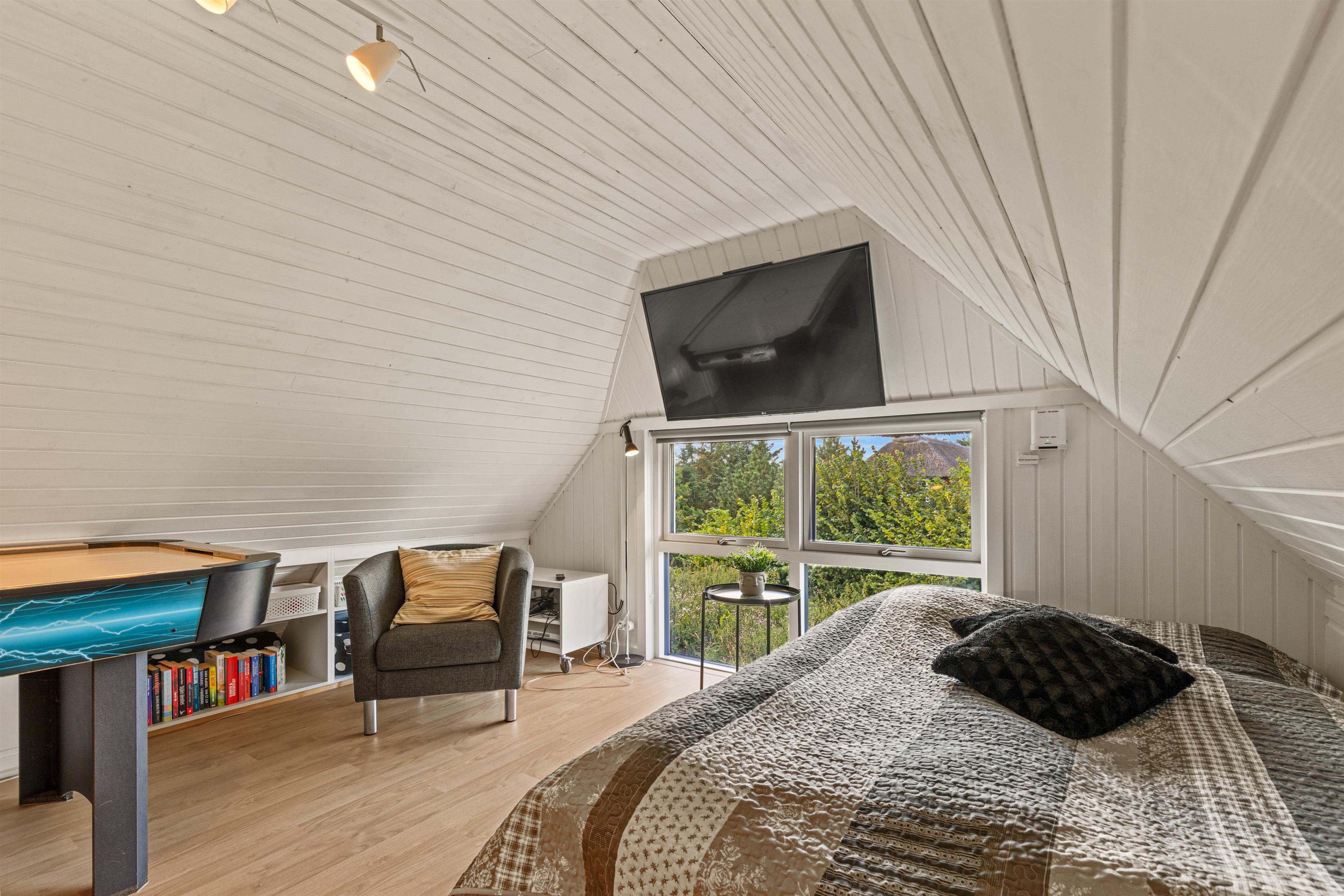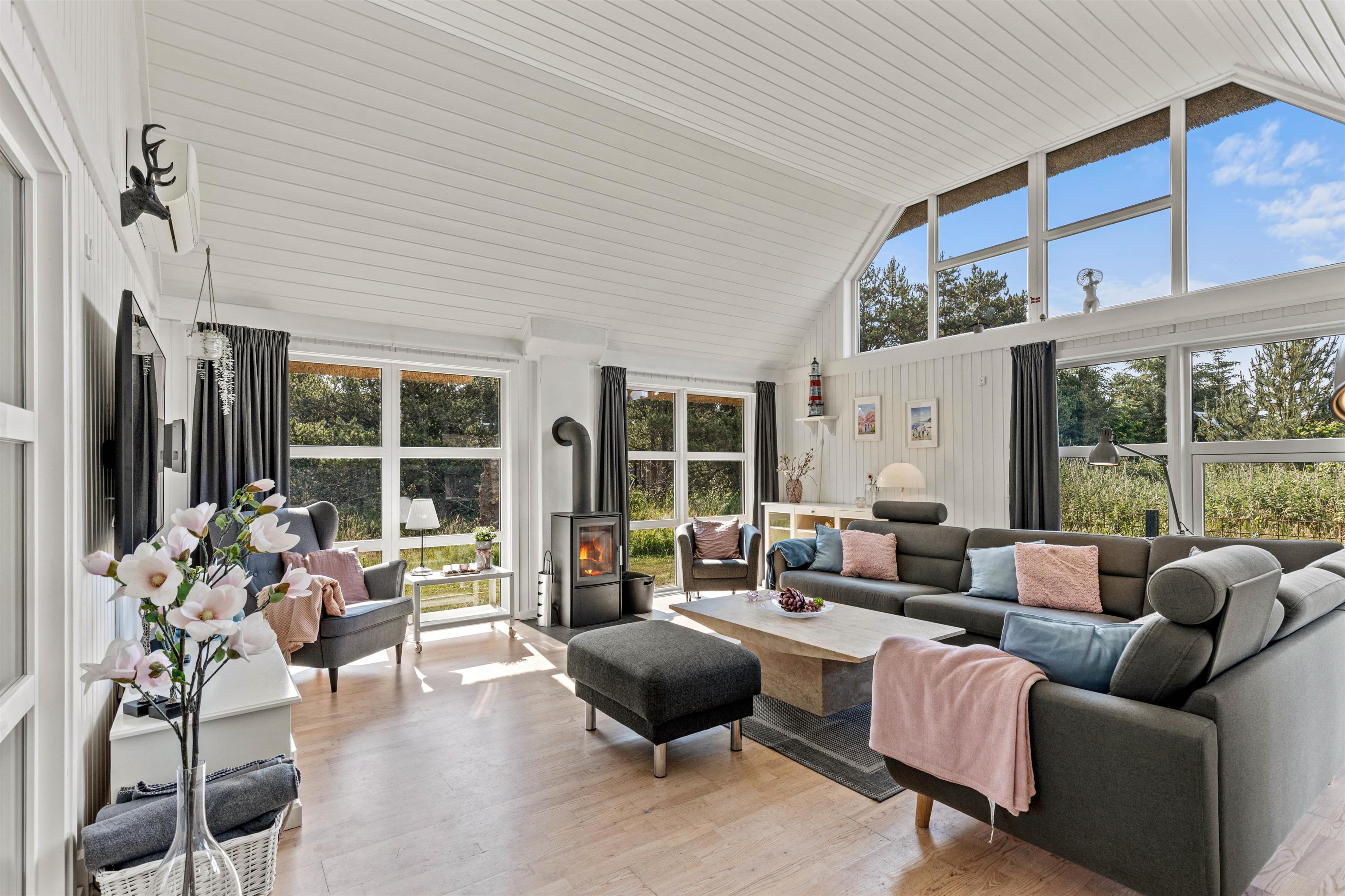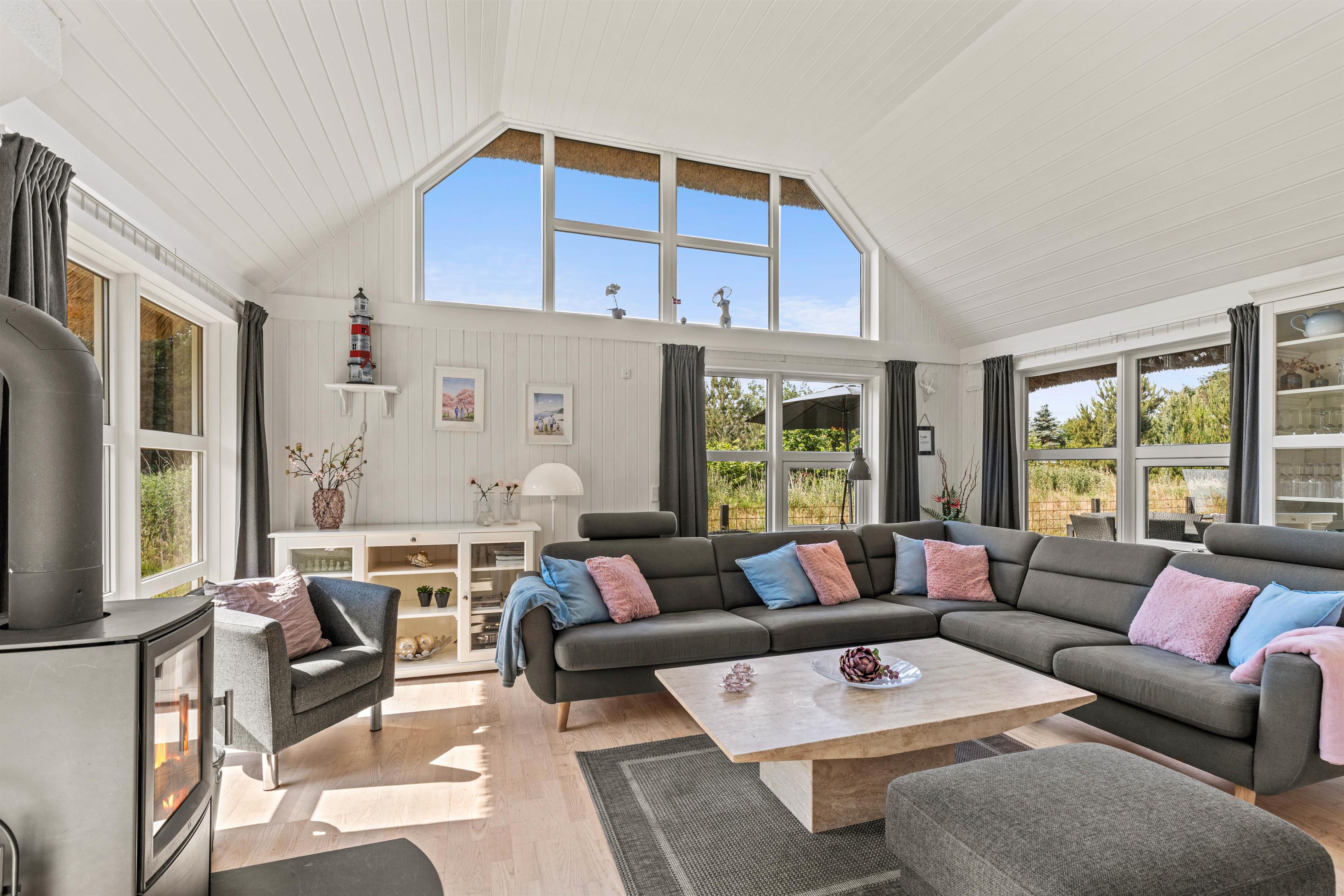 Dette charmerende sommerhus emmer af feriestemning og hygge. Sommerhusets store vinduespartier skaber et skønt lysindfald, og brændeovnen i stuen øger hyggen til næste niveau. Her kan hele familien samles til en film eller serie, når en god dag afsluttes. Der er selvfølgelig også trådløst internet. I sommerhuset finder I desuden også bordfodbold og airhockey, som med sikkerhed vil glæde familiens børn.