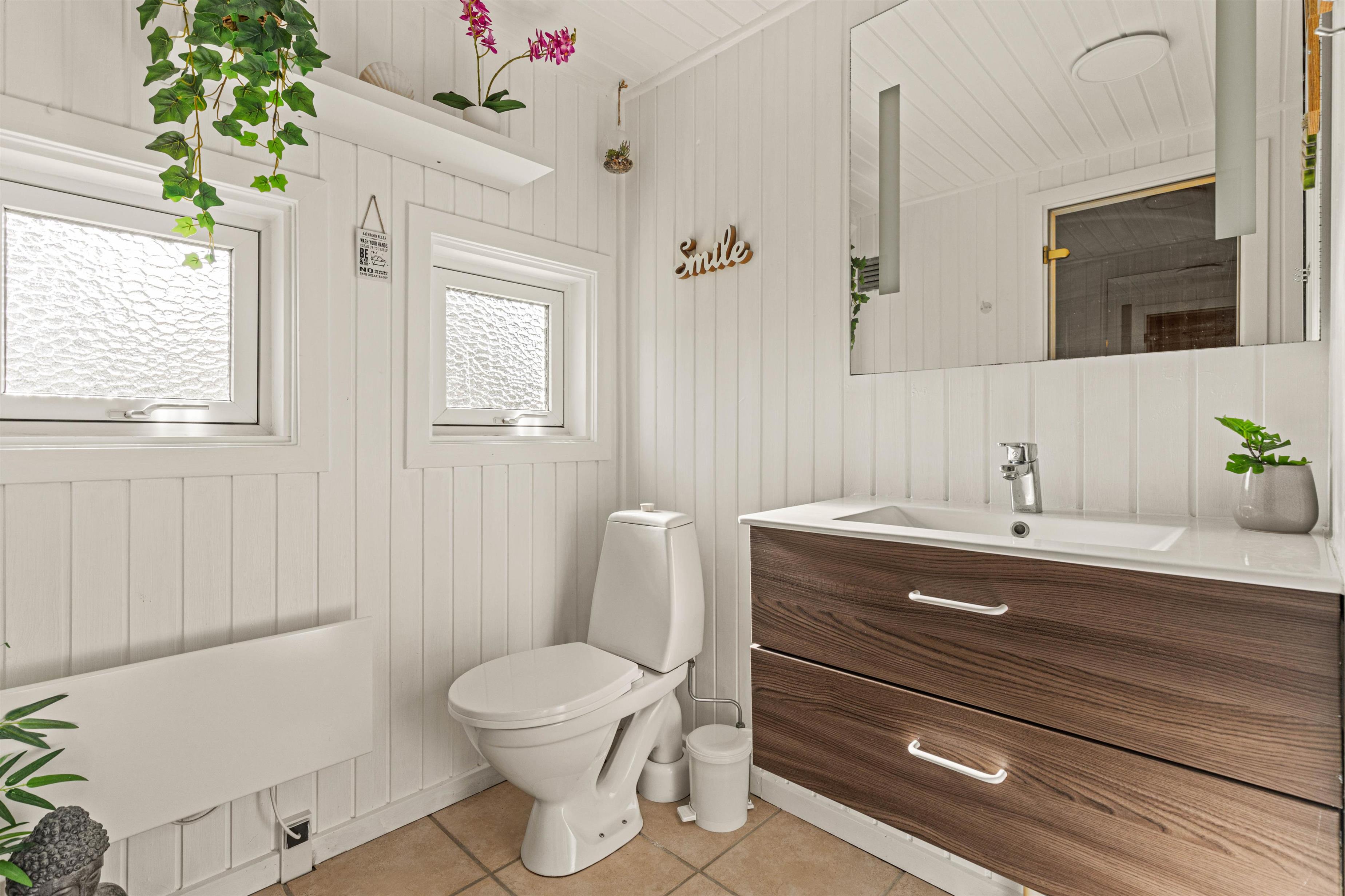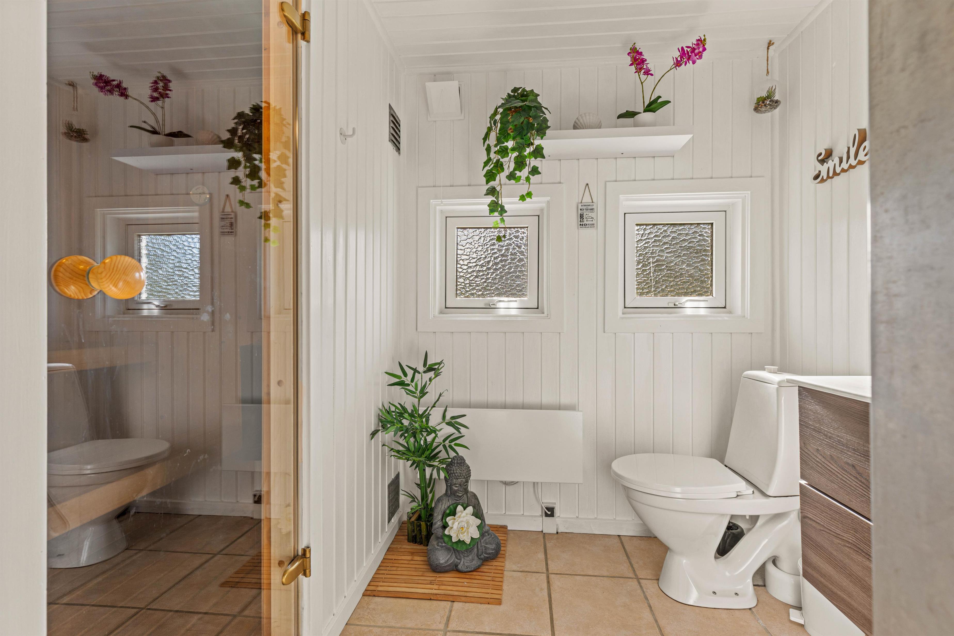 Derudover har sommerhuset 2 badeværelser, så hvis I er 2 familier afsted på ferie, kan hver familie have deres eget badeværelse. Begge badeværelser er selvfølgelig med gulvvarme, så I undgår at få kolde fødder. Varmepumpen sørger desuden for behagelige temperaturer til lave omkostninger. Der er desuden en pusleplads i bryggerset.