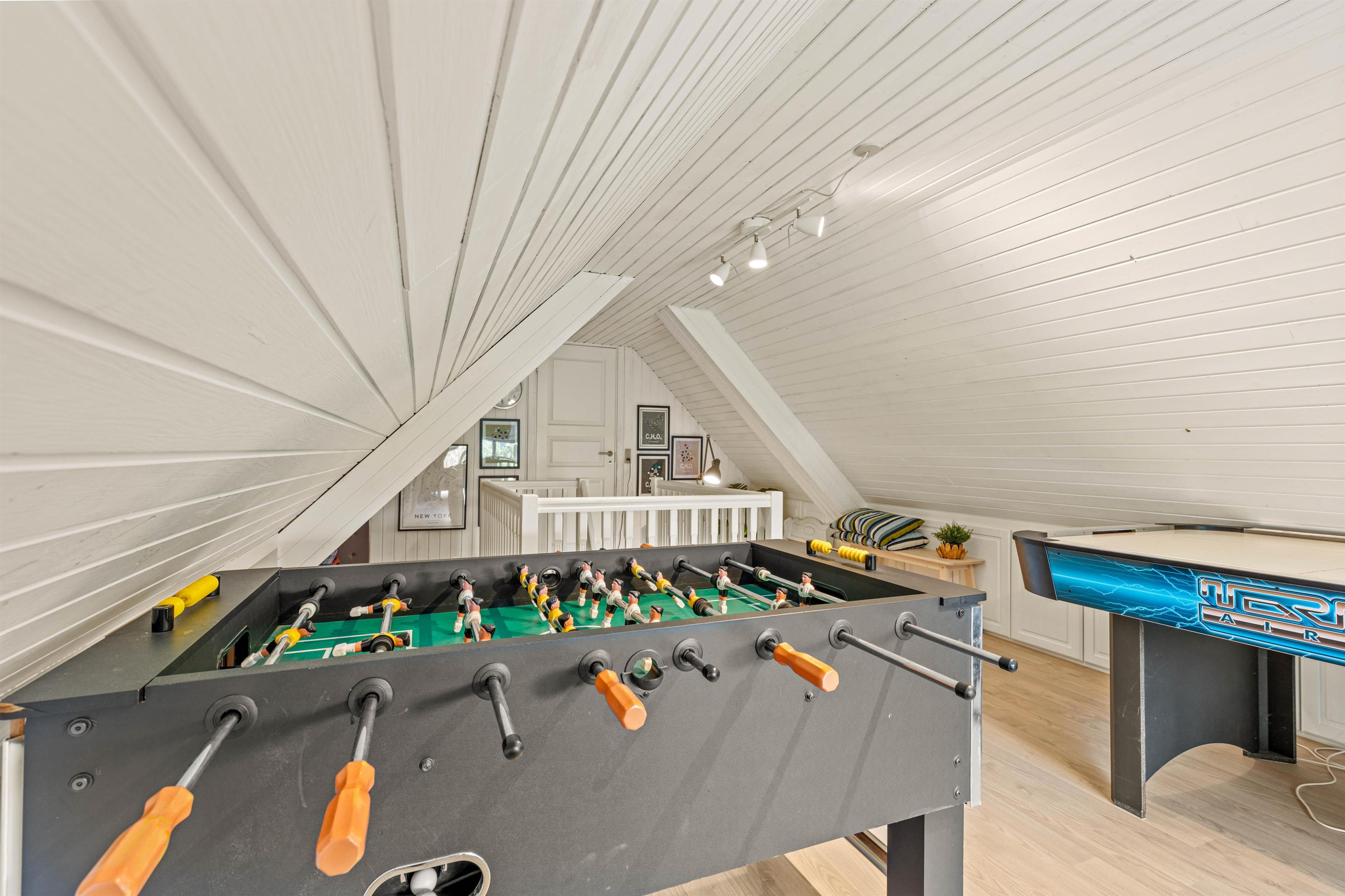 Bordfodbold, airhockey og familiehygge foran brændeovn