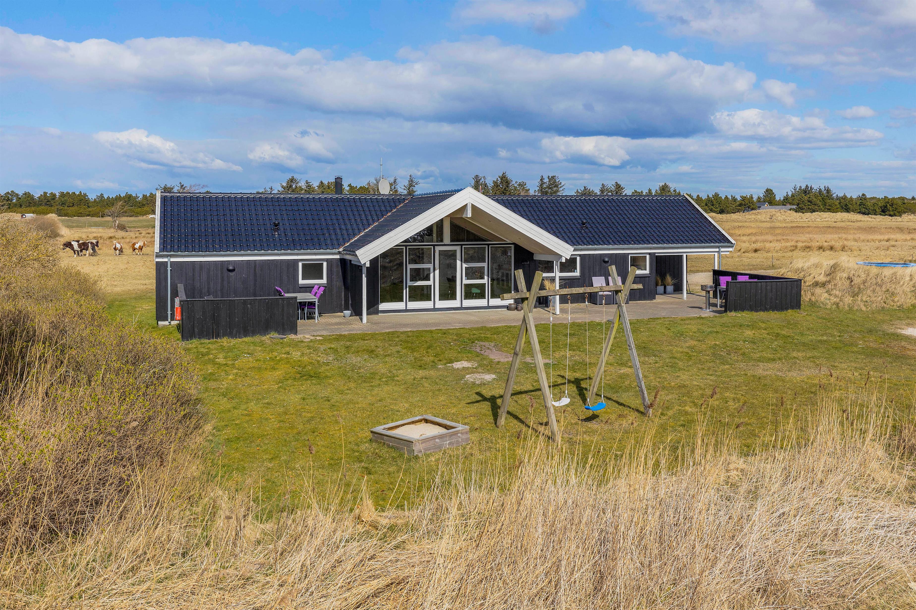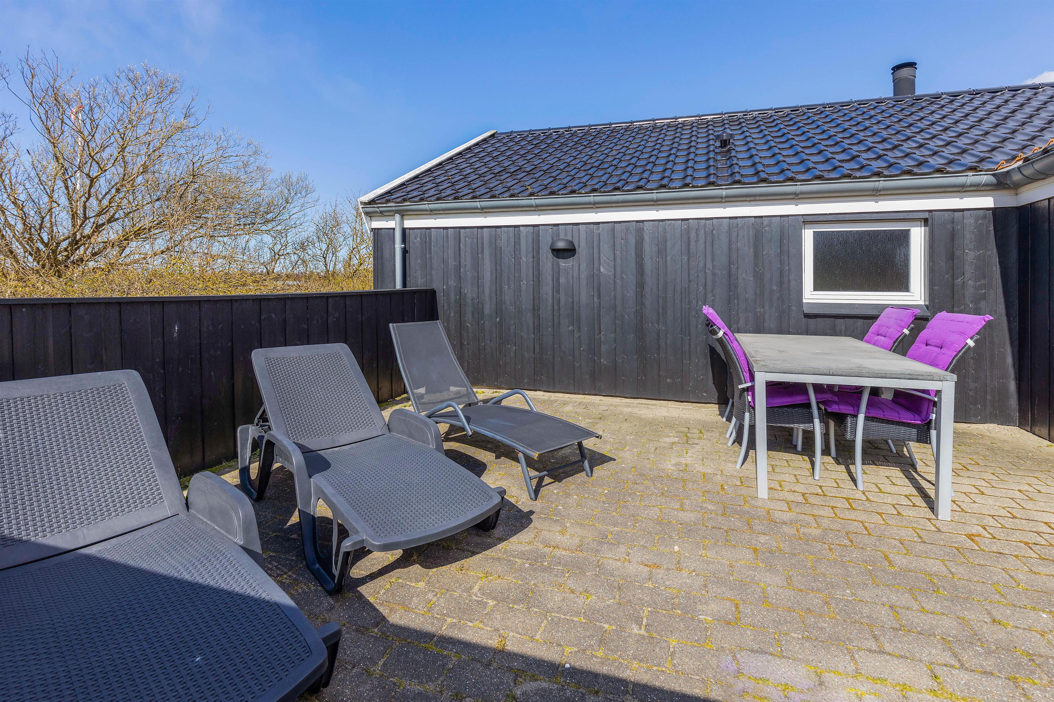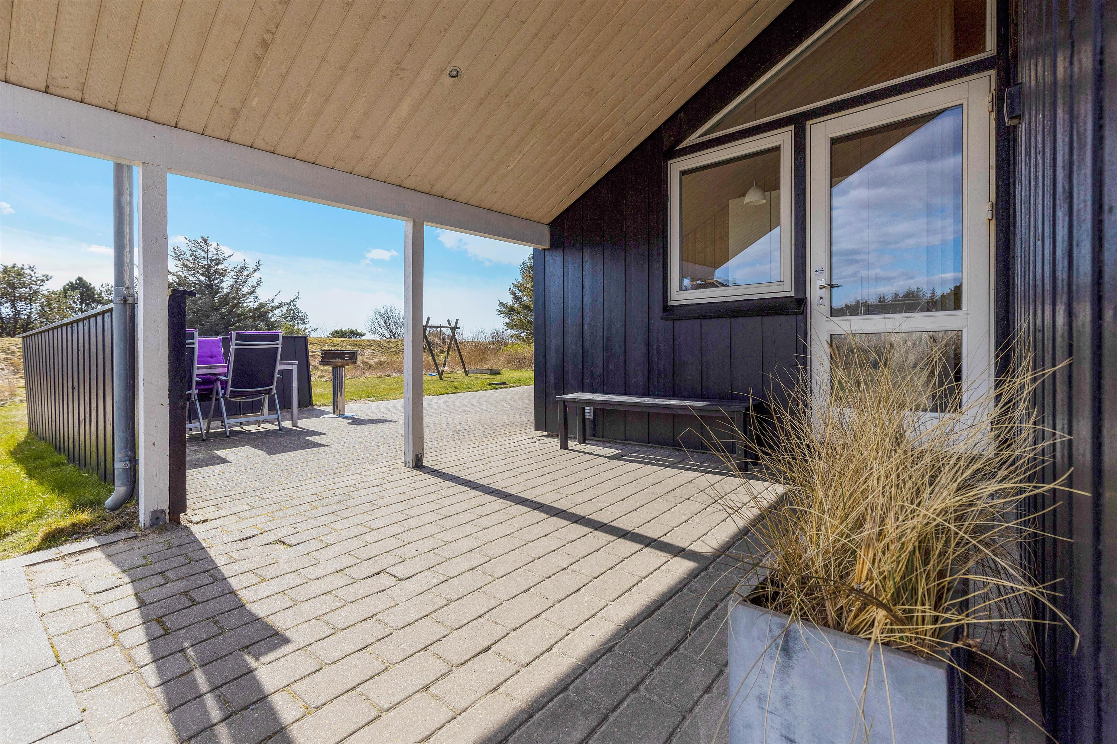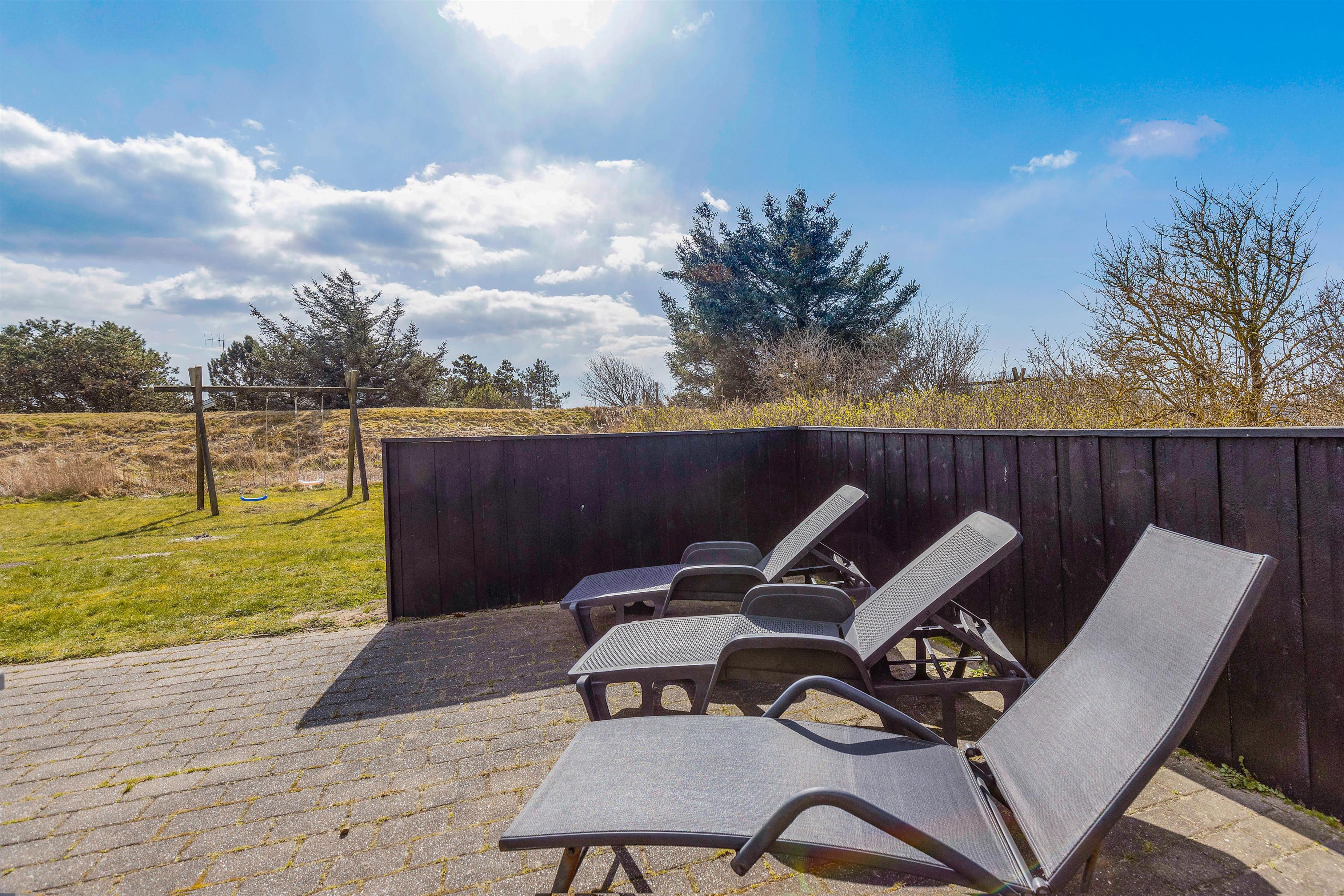 Vil I hellere slappe af i solen, kan I gøre det på terrassen, hvor der både står havemøbler og liggestole klar til jer, som I kan finde jer godt til rette i. Skulle I få brug for at sidde i skyggen, kan I rykke ind under terrassens overdækkede del. Til børnene er der både sandkasse og gyngestativ, de kan få glæde af i haven.