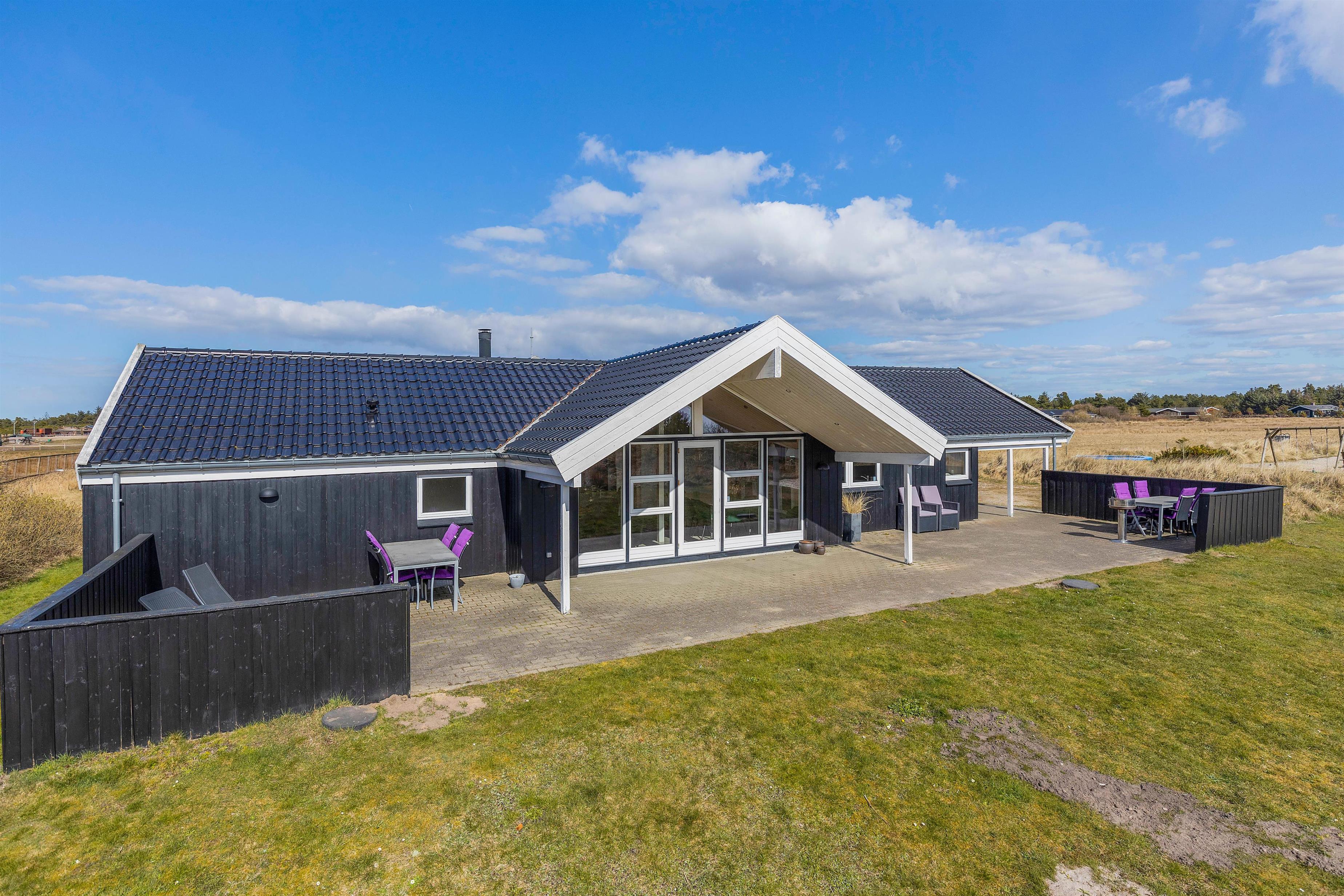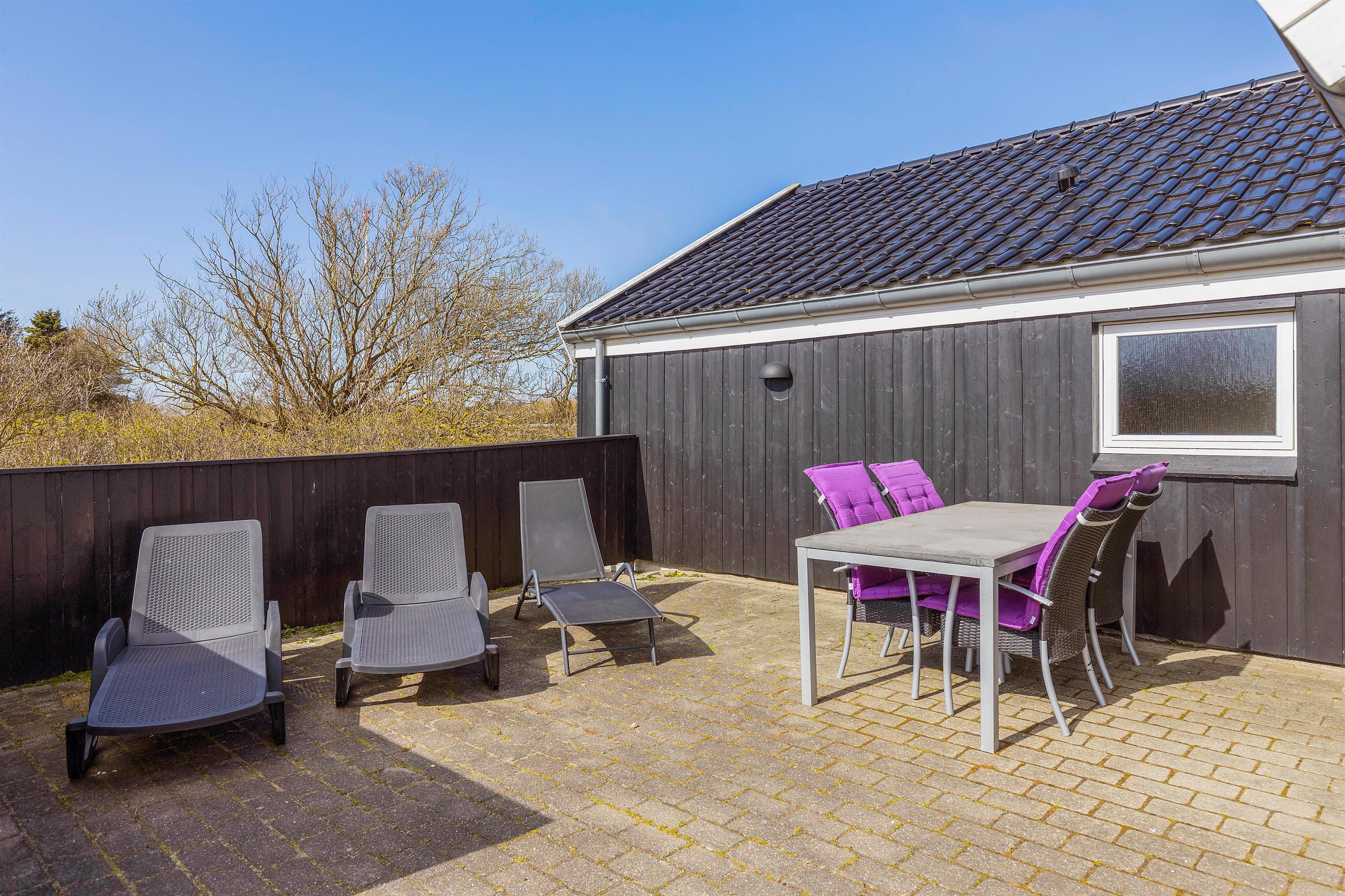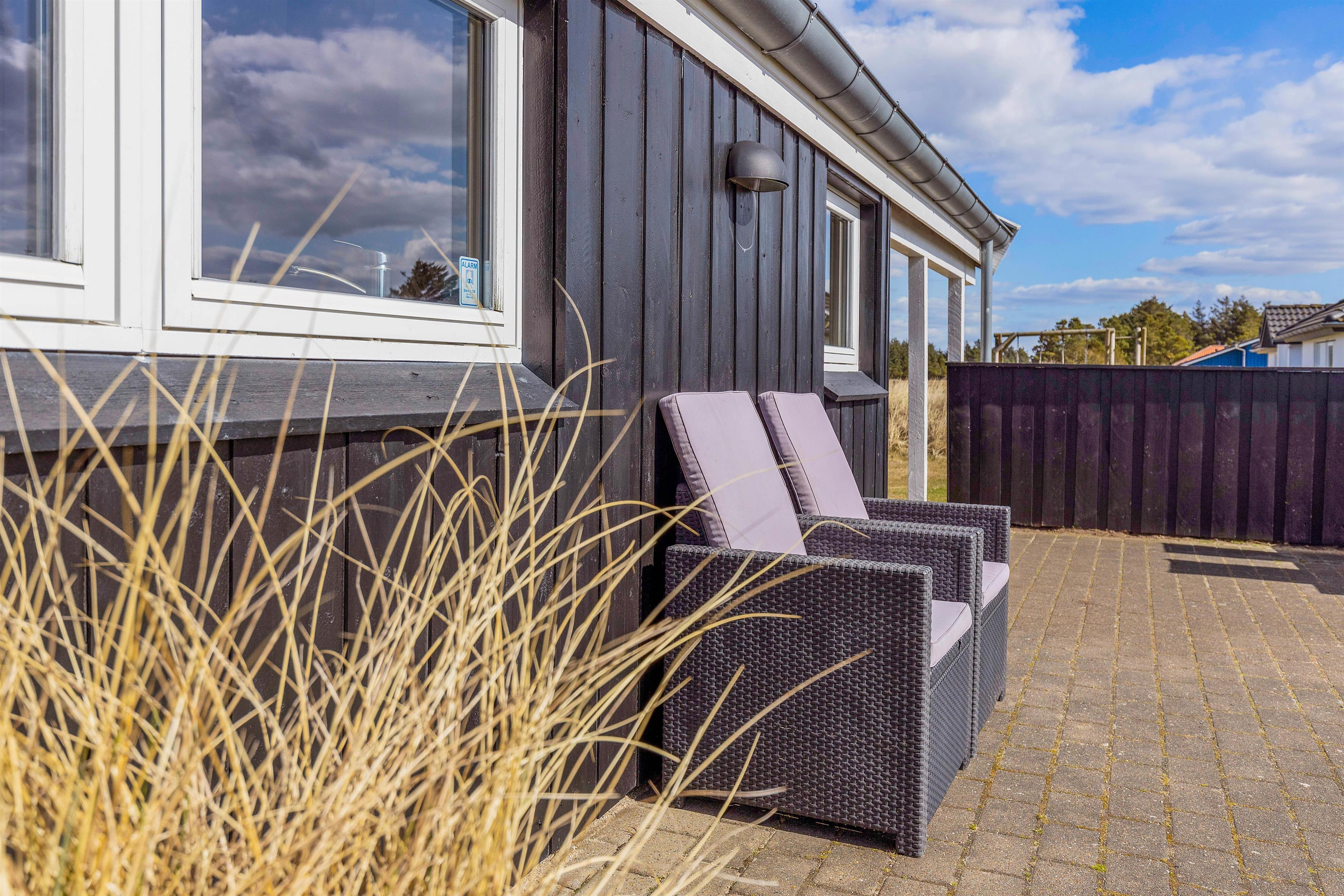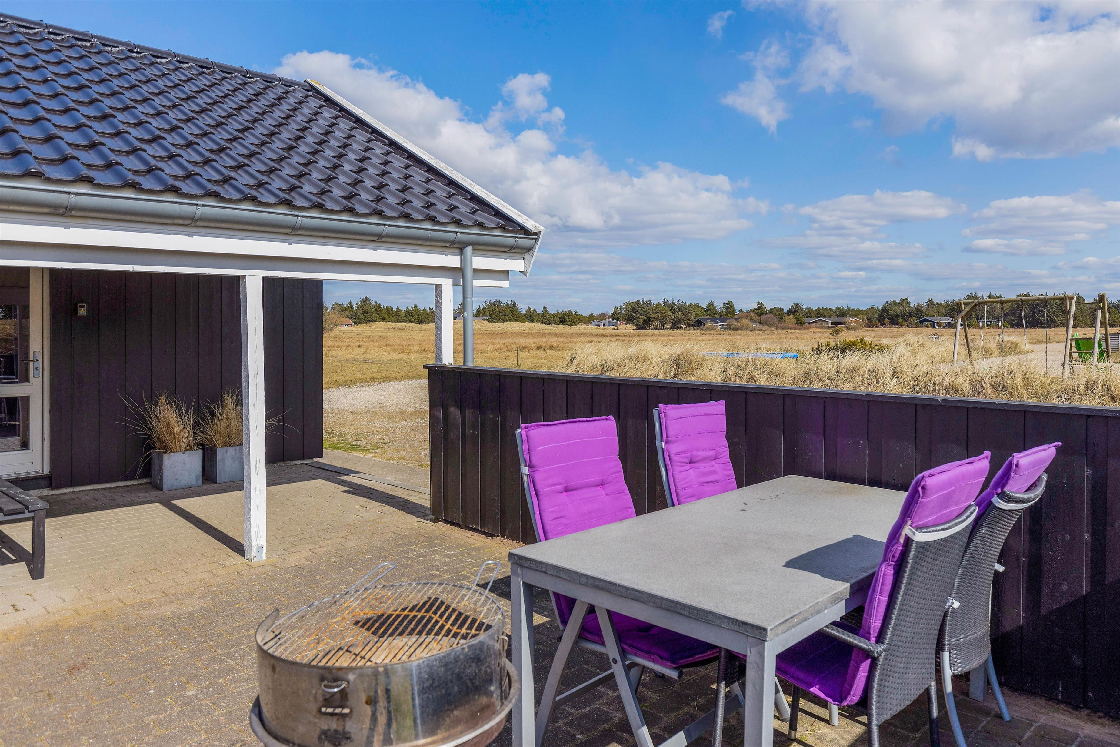 Vil I hellere slappe af i solen, kan I gøre det på terrassen, hvor der både står havemøbler og liggestole klar til jer, som I kan finde jer godt til rette i. Skulle I få brug for at sidde i skyggen, kan I rykke ind under terrassens overdækkede del. Til børnene er der både sandkasse og gyngestativ, de kan få glæde af i haven.