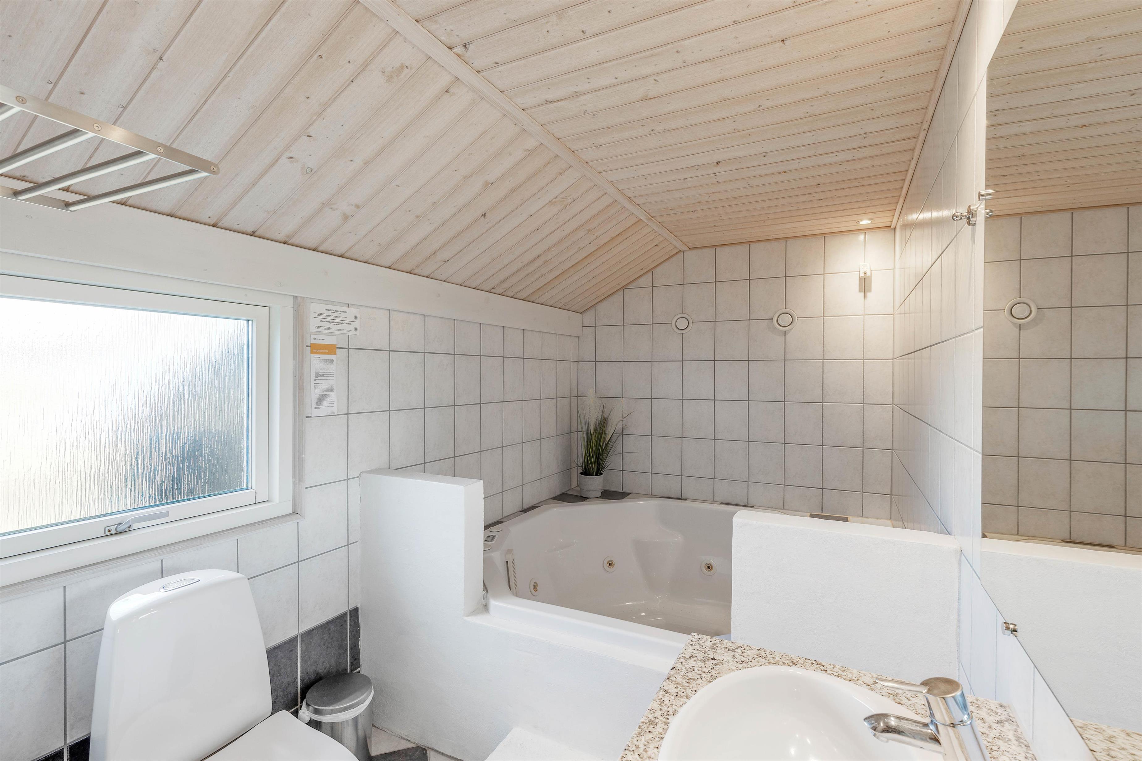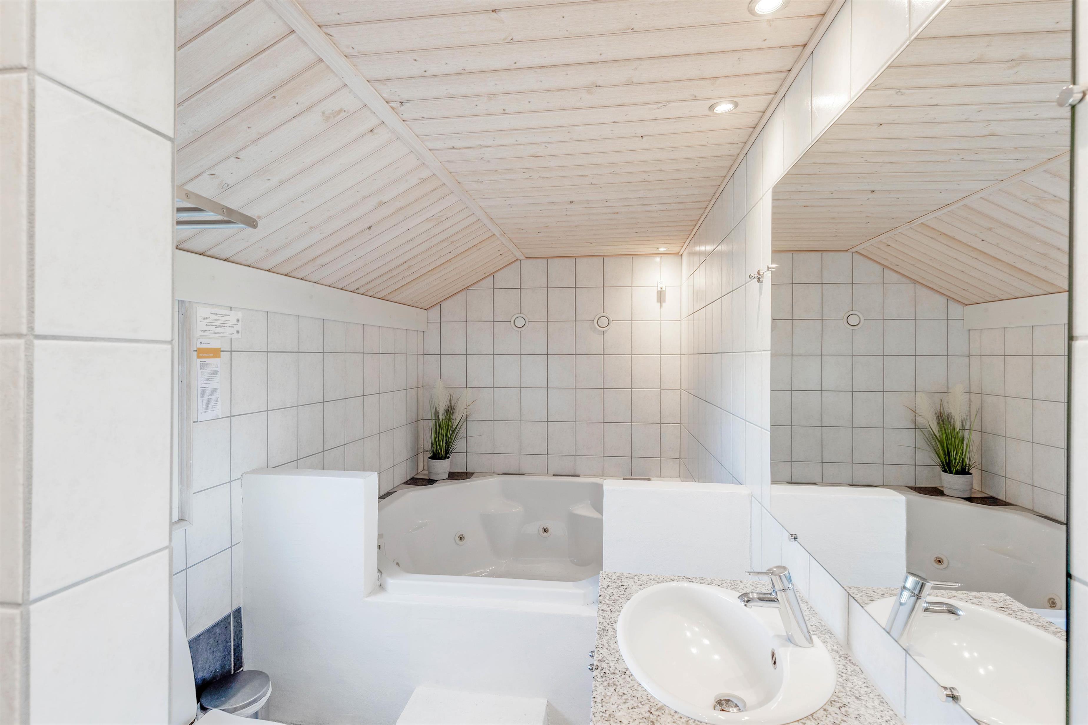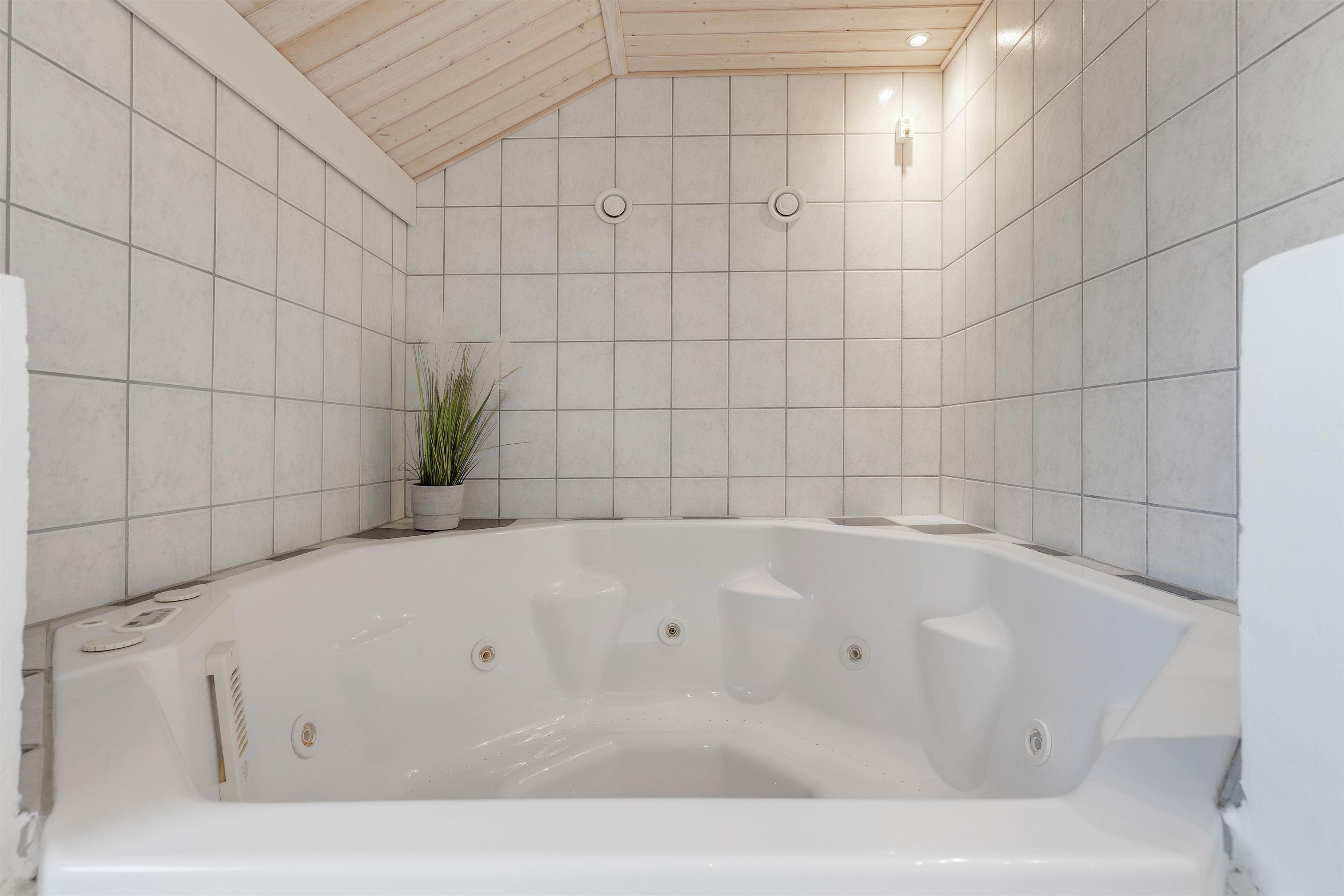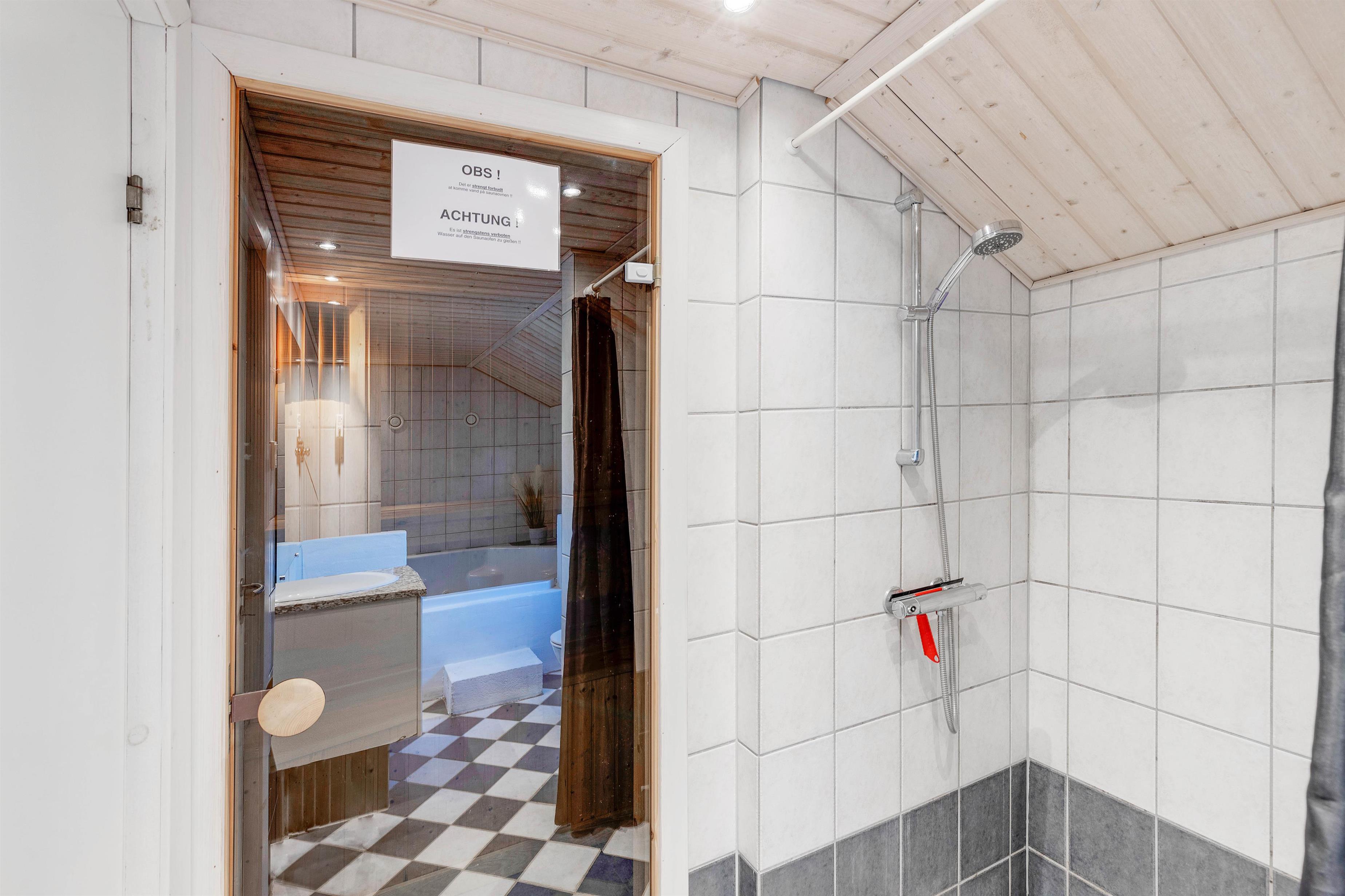 På det ene af de 3 badeværelser finder I også et lille wellnessområde, hvor I kan blive forkælet med masser af afslapning på ferien. Her kan I sætte jer til rette i det varme, boblende vand i spaen eller læne jer tilbage i varmen i saunaen. Her kan I virkelig komme ned i gear og få ladt jeres batterier op igen.
