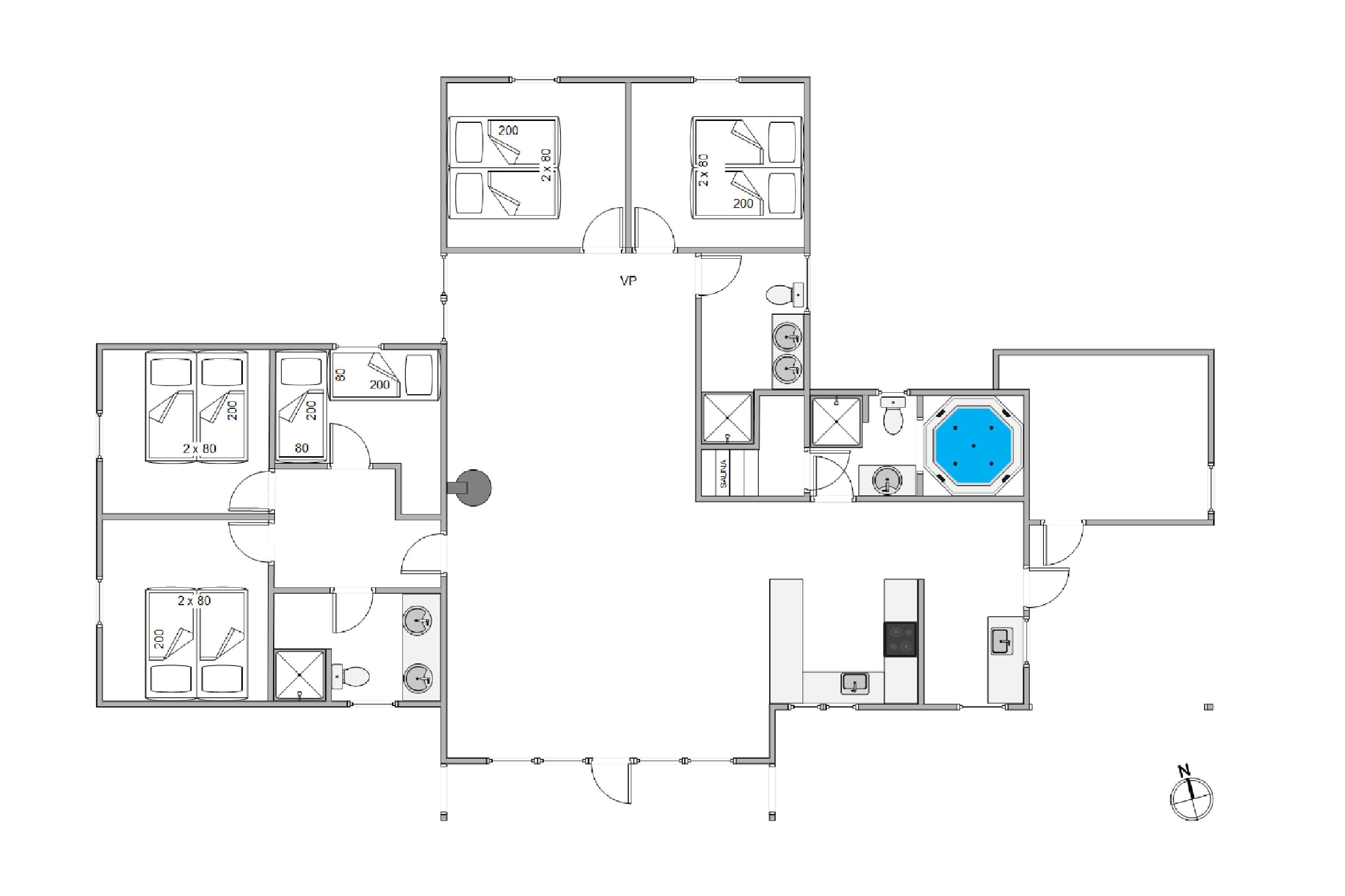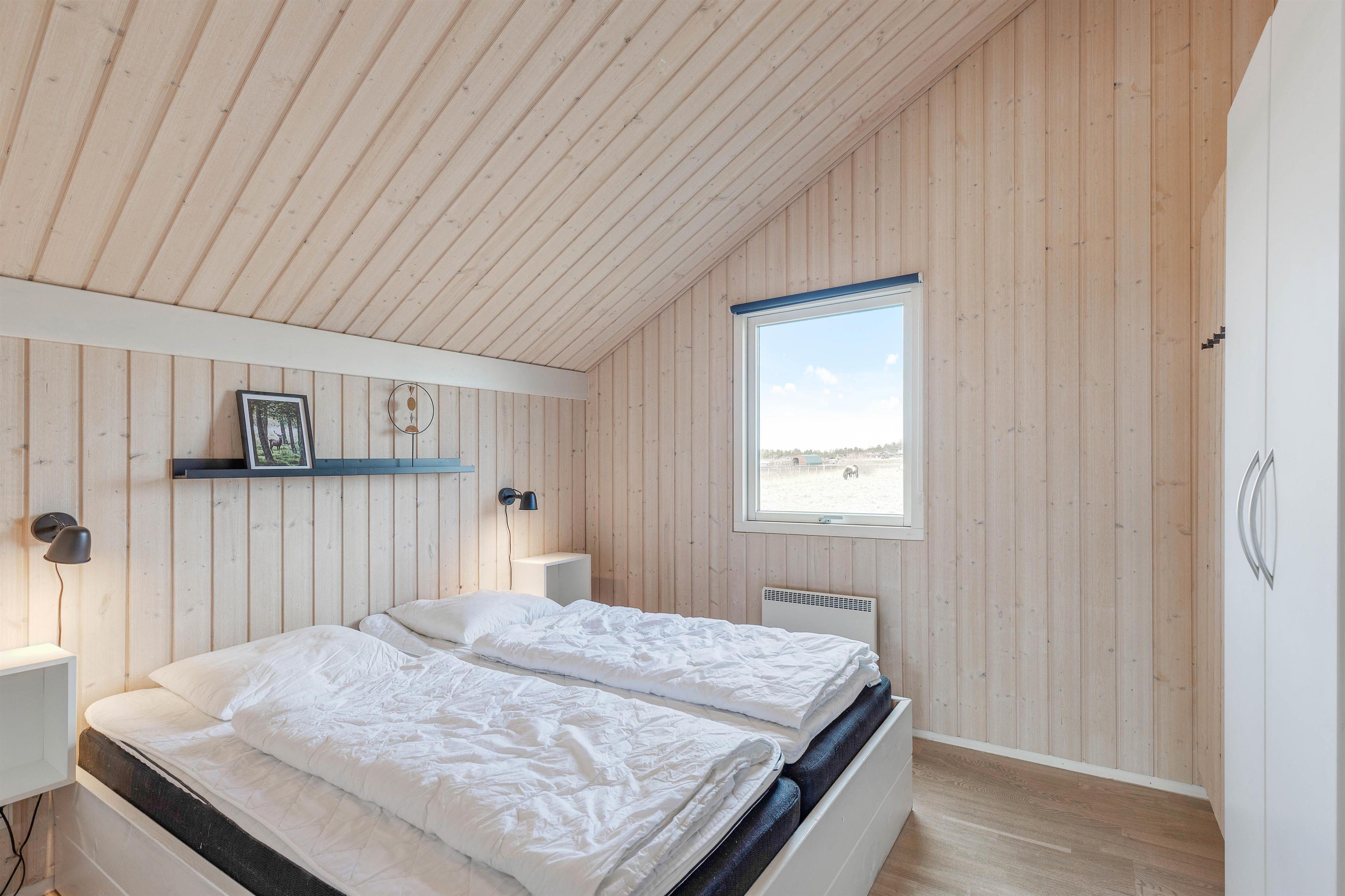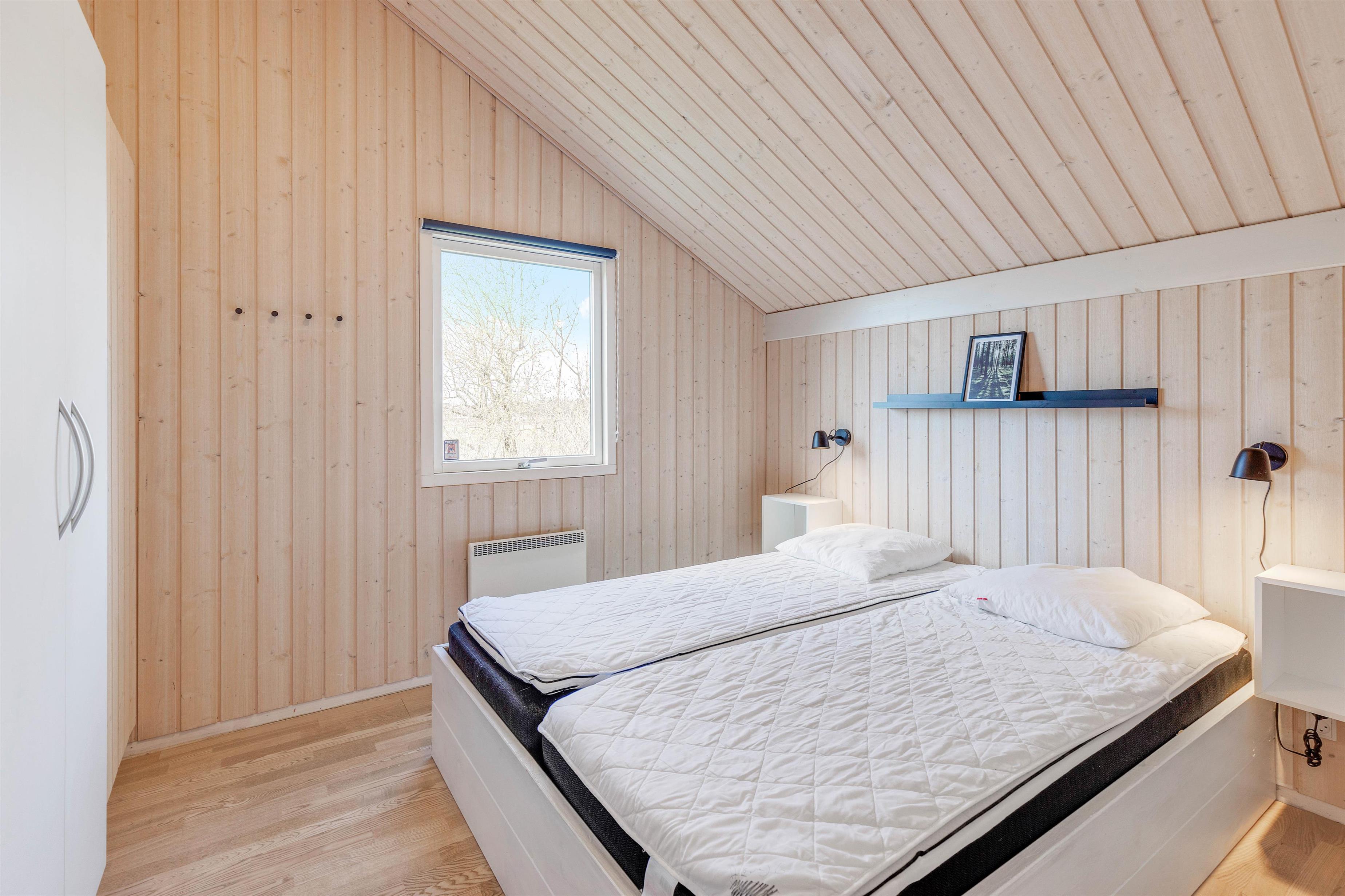 I det 178 kvadratmeter store sommerhus er der 5 soveværelser. 4 af soveværelserne er indrettet med en dobbeltseng hver, mens det femte soveværelse er indrettet med 2 enkeltsenge. Med hele 3 badeværelser i sommerhuset slipper I desuden for at starte jeres feriedage med at stå i kø til badeværelset – alle 3 badeværelser har endda gulvvarme.