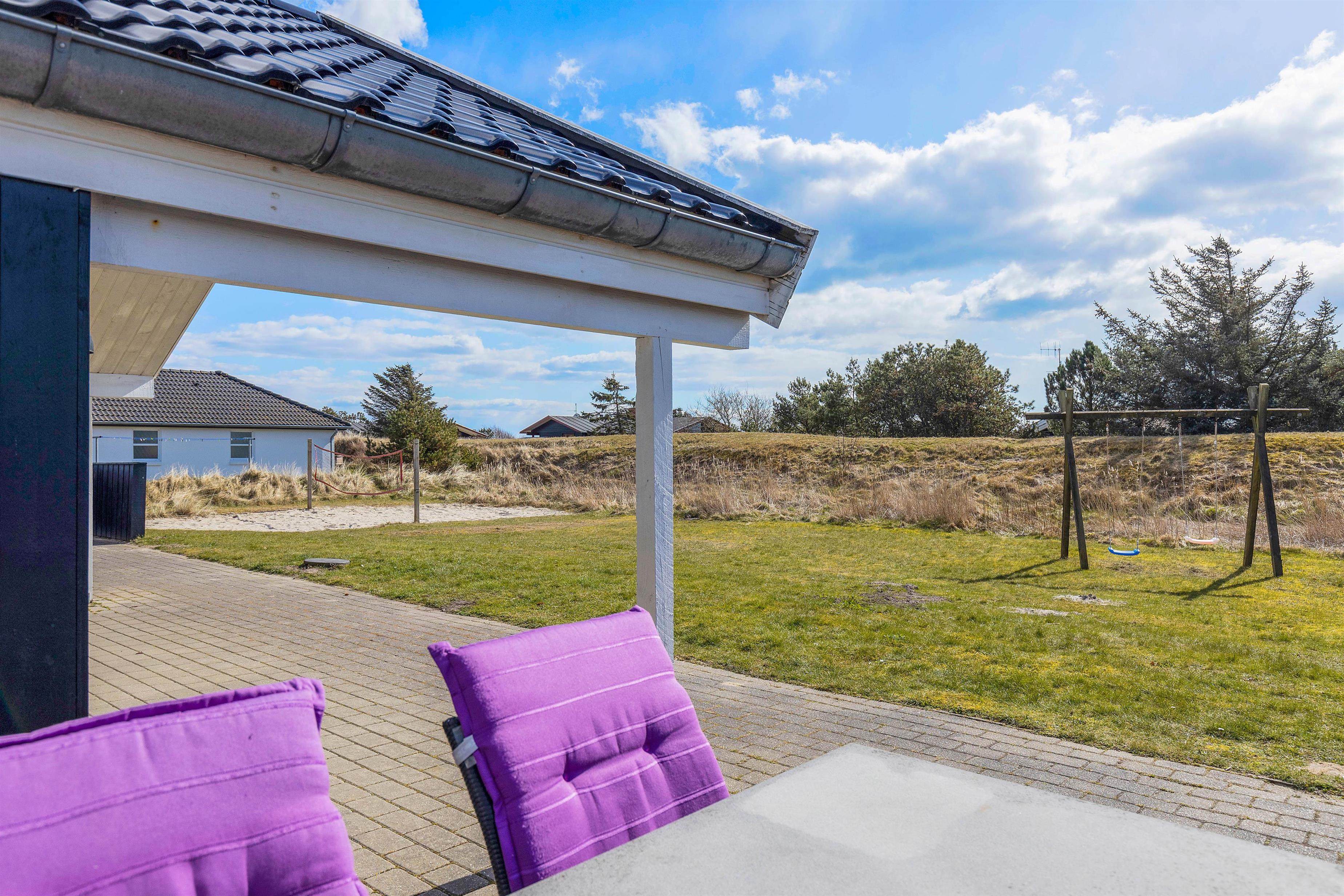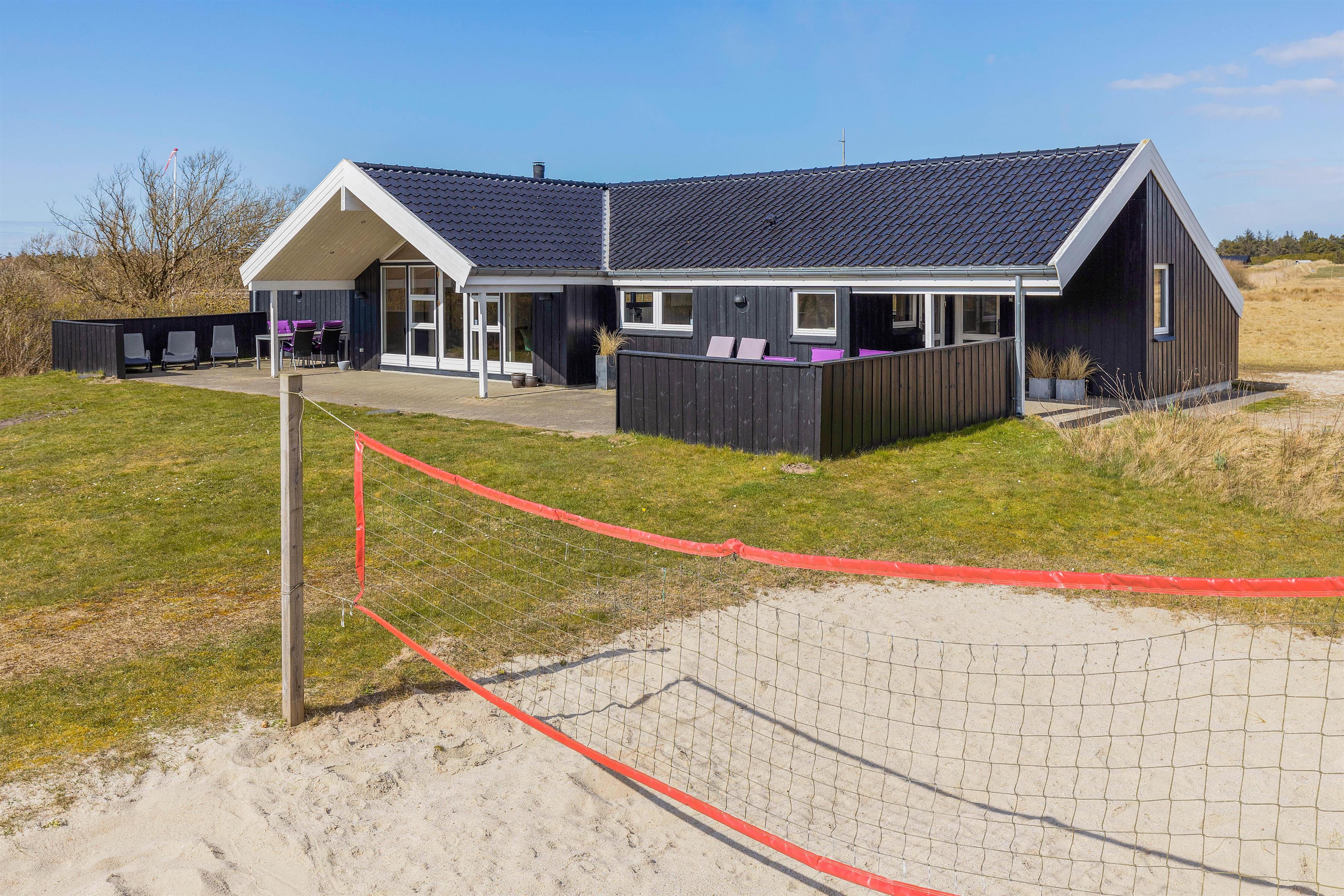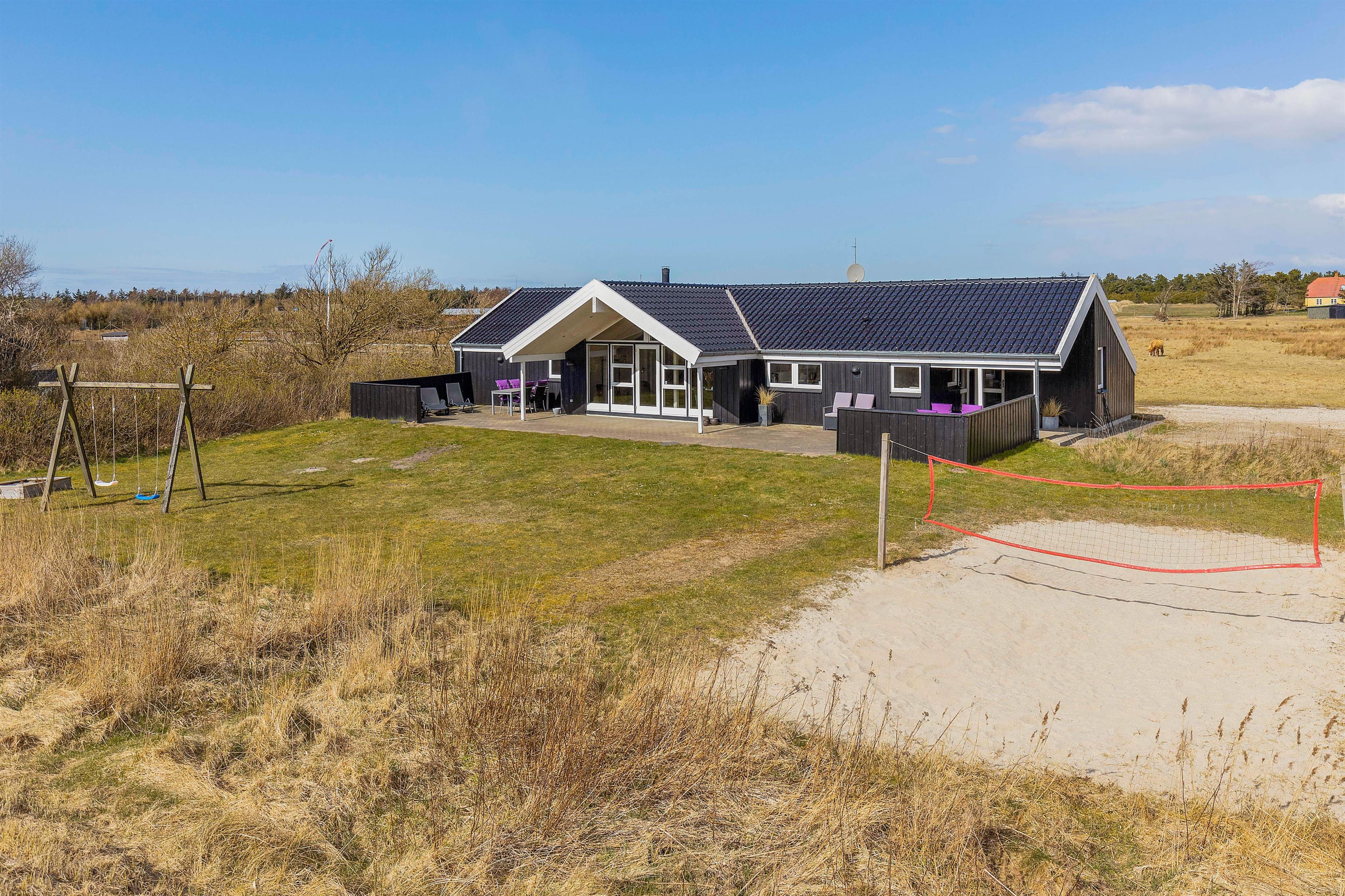 Sommerhuset er beliggende på en grund, der er 2.500 kvadratmeter stor, og her venter jer et stort udeområde med noget for både store og små. Her har I blandt andet en beachvolleybane, hvor I kan spille masser af beachvolley på jeres ferie – hvem mon udgør det bedste hold?