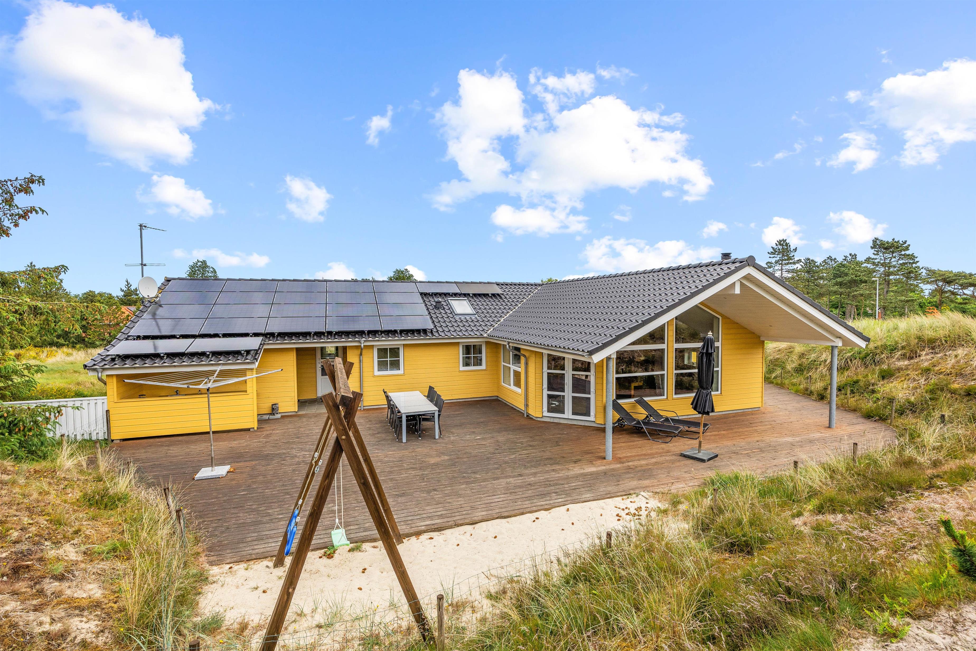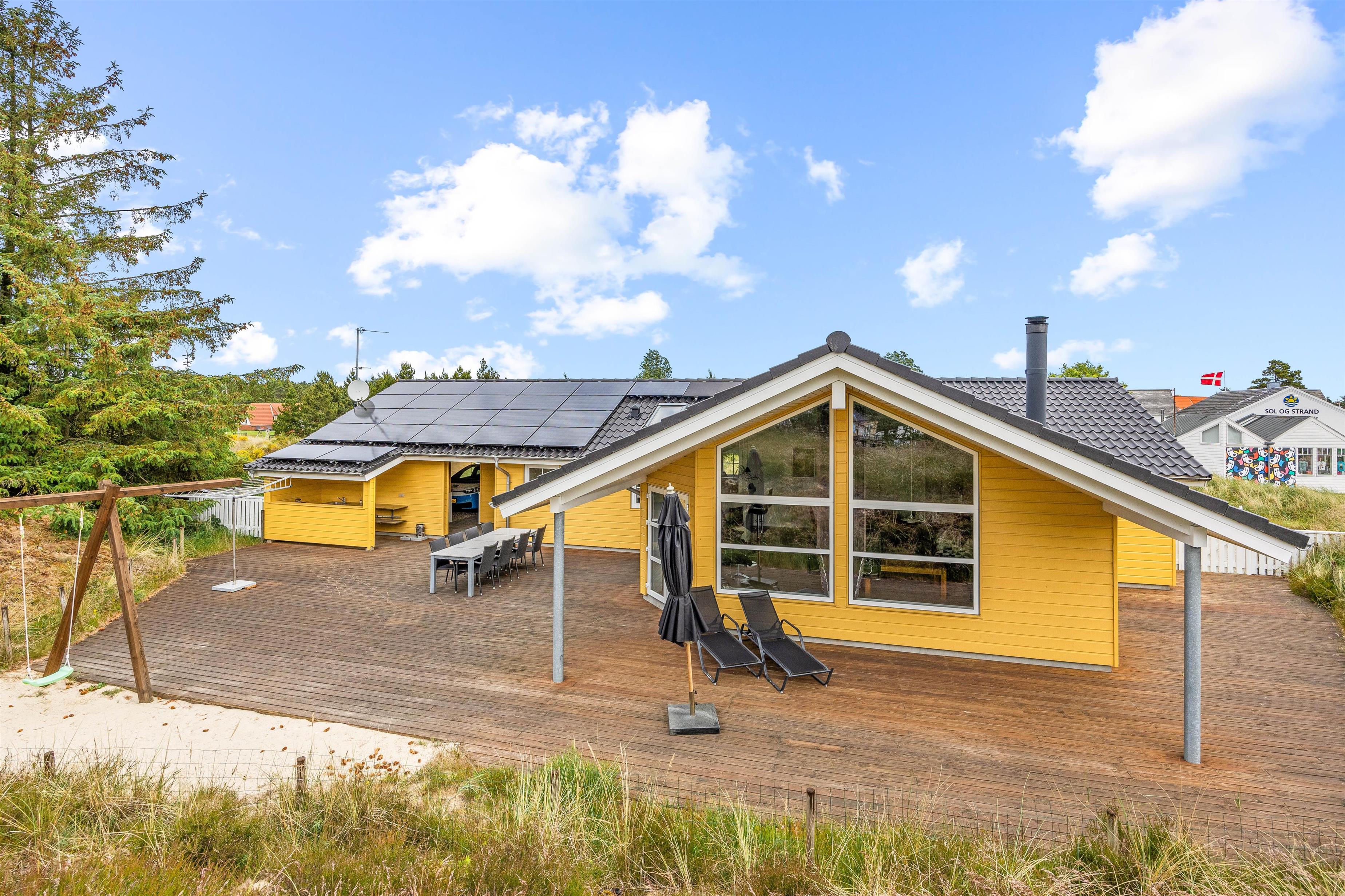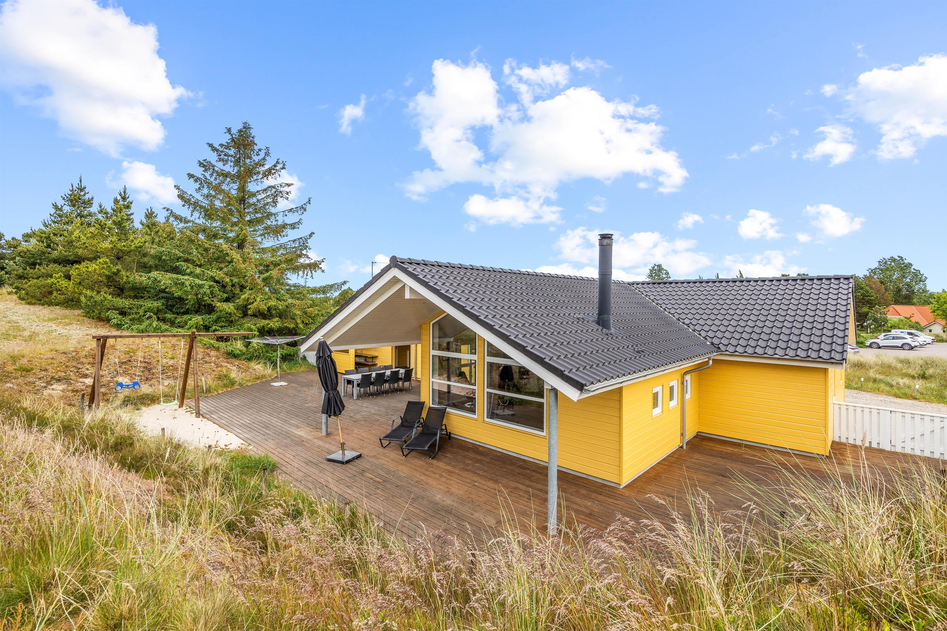 På Blåvandvej 33 E venter dette skønne gule træsommerhus på jer. Med en central beliggenhed og en flot og moderne indretning kan I tilbringe en rigtig herlig ferie med helt op til 8 personer her.