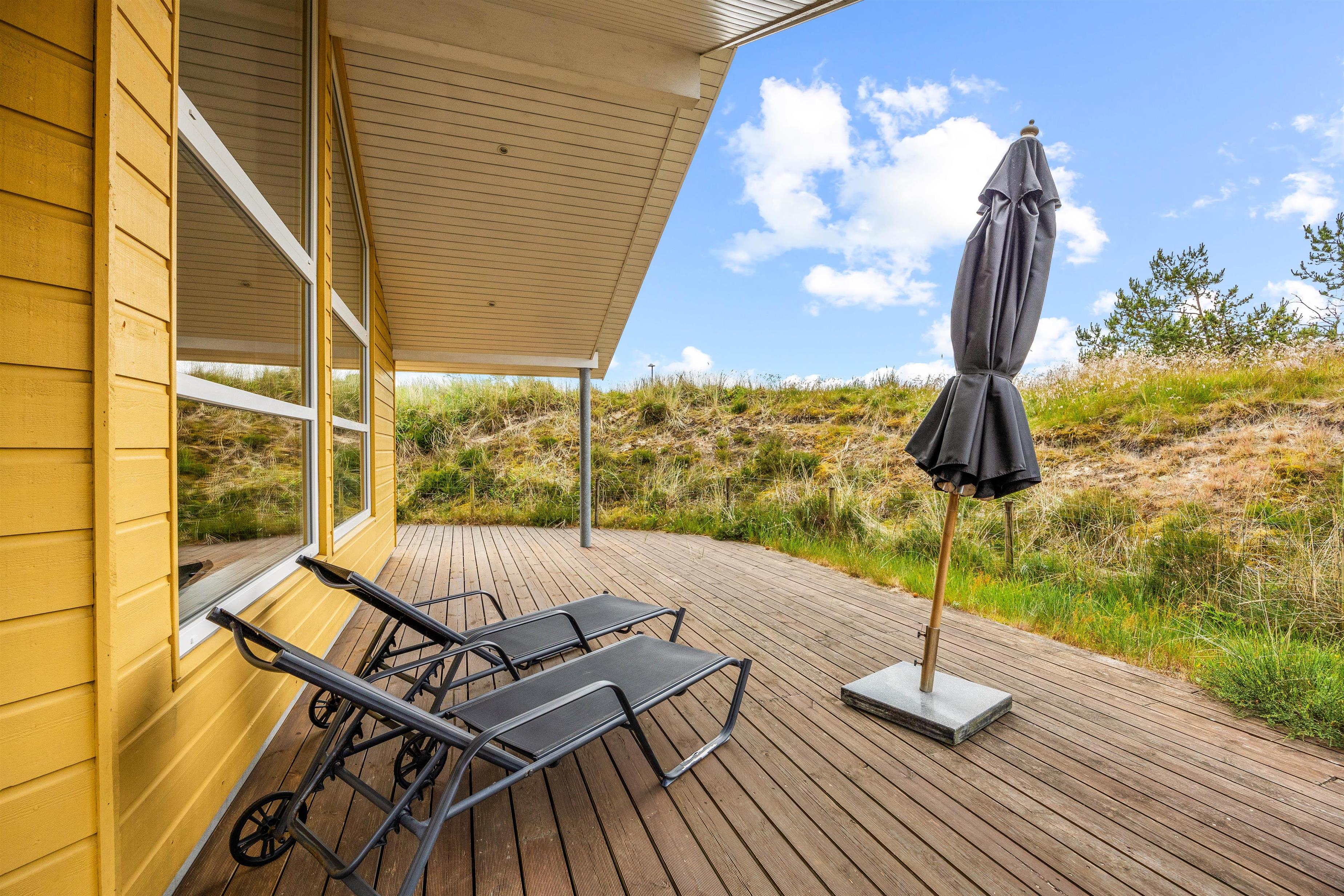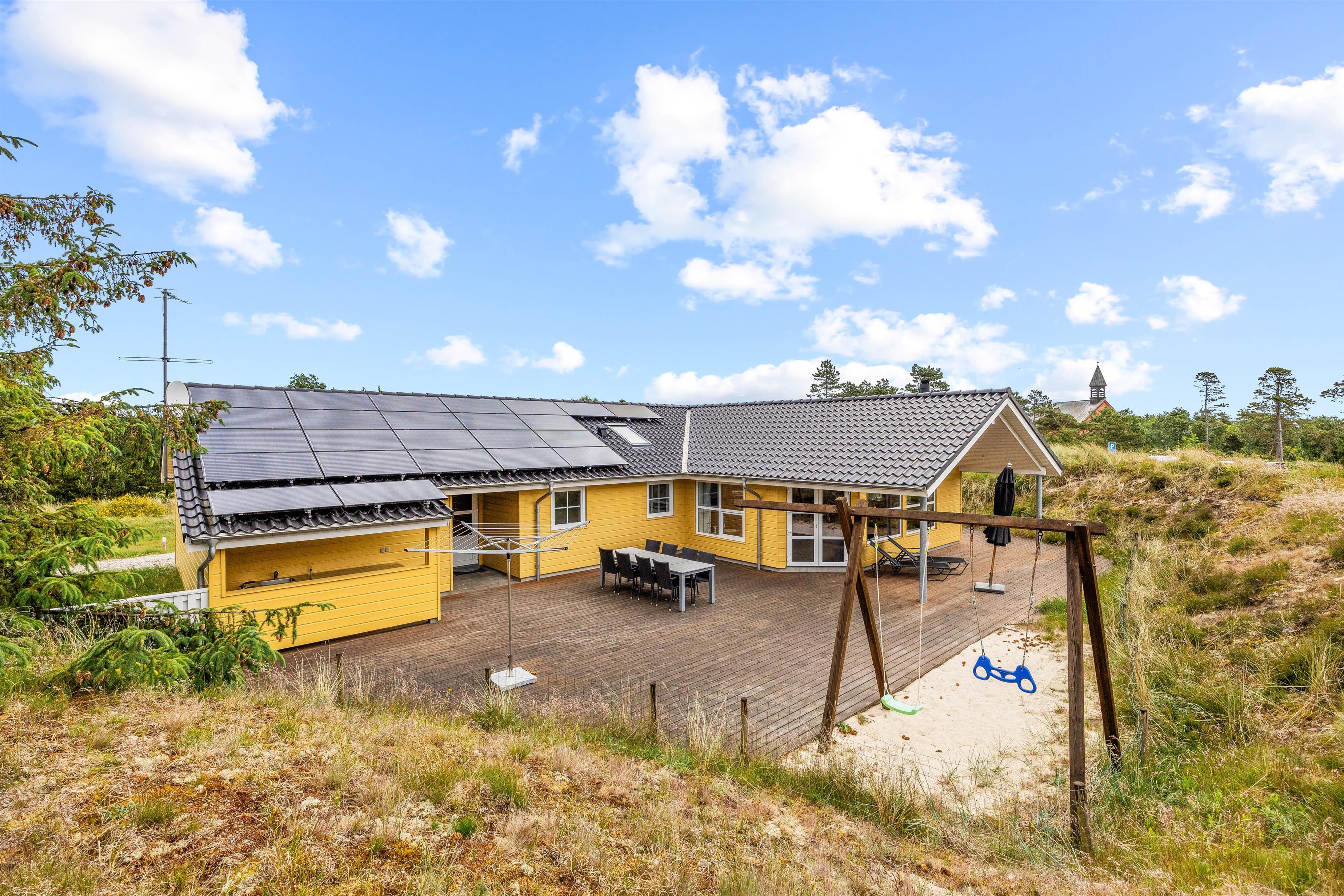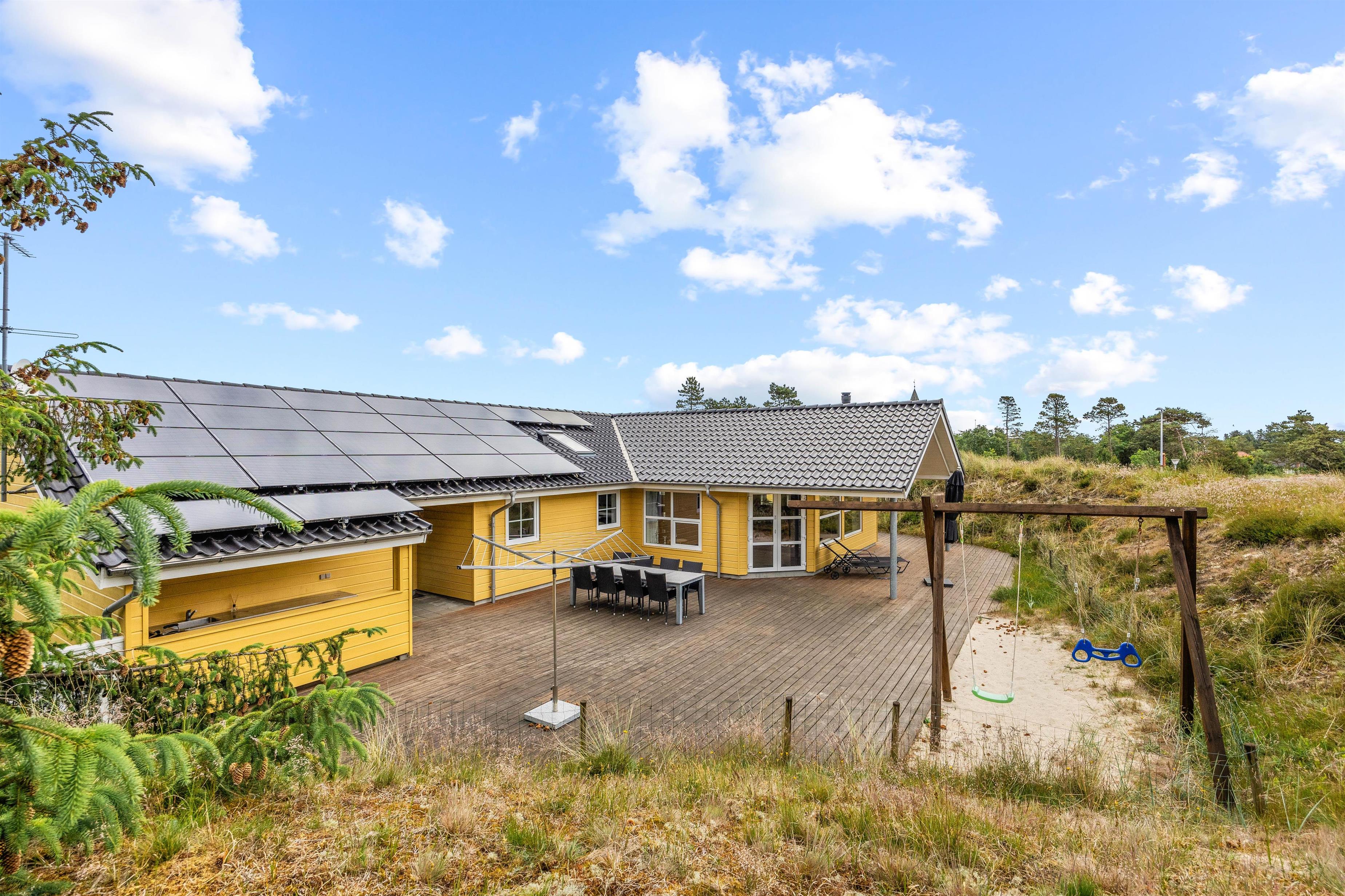 På Blåvandvej 33 E venter dette skønne gule træsommerhus på jer. Med en central beliggenhed og en flot og moderne indretning kan I tilbringe en rigtig herlig ferie med helt op til 8 personer her.