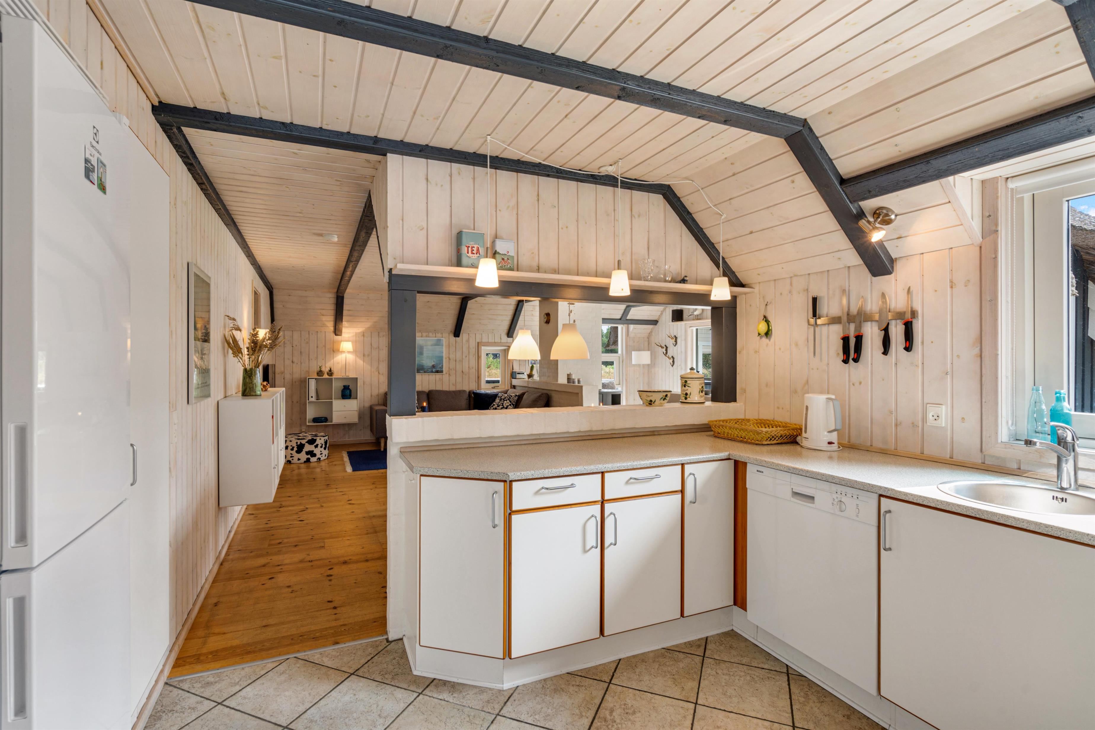 Det stråtækte feriehus er et godt valg til en afslappende ferie ved vandet, hvor I kan tanke nye kræfter i den friske havluft. Den lyse og venlige indretning emmer af klassisk sommerhuscharme med træbeklædte overflader og synlige bjælker, og efter en god gåtur måske i blæsevejr vil I kunne lune jer ved den knitrende brændeovn, som er placeret i opholdsrummet.