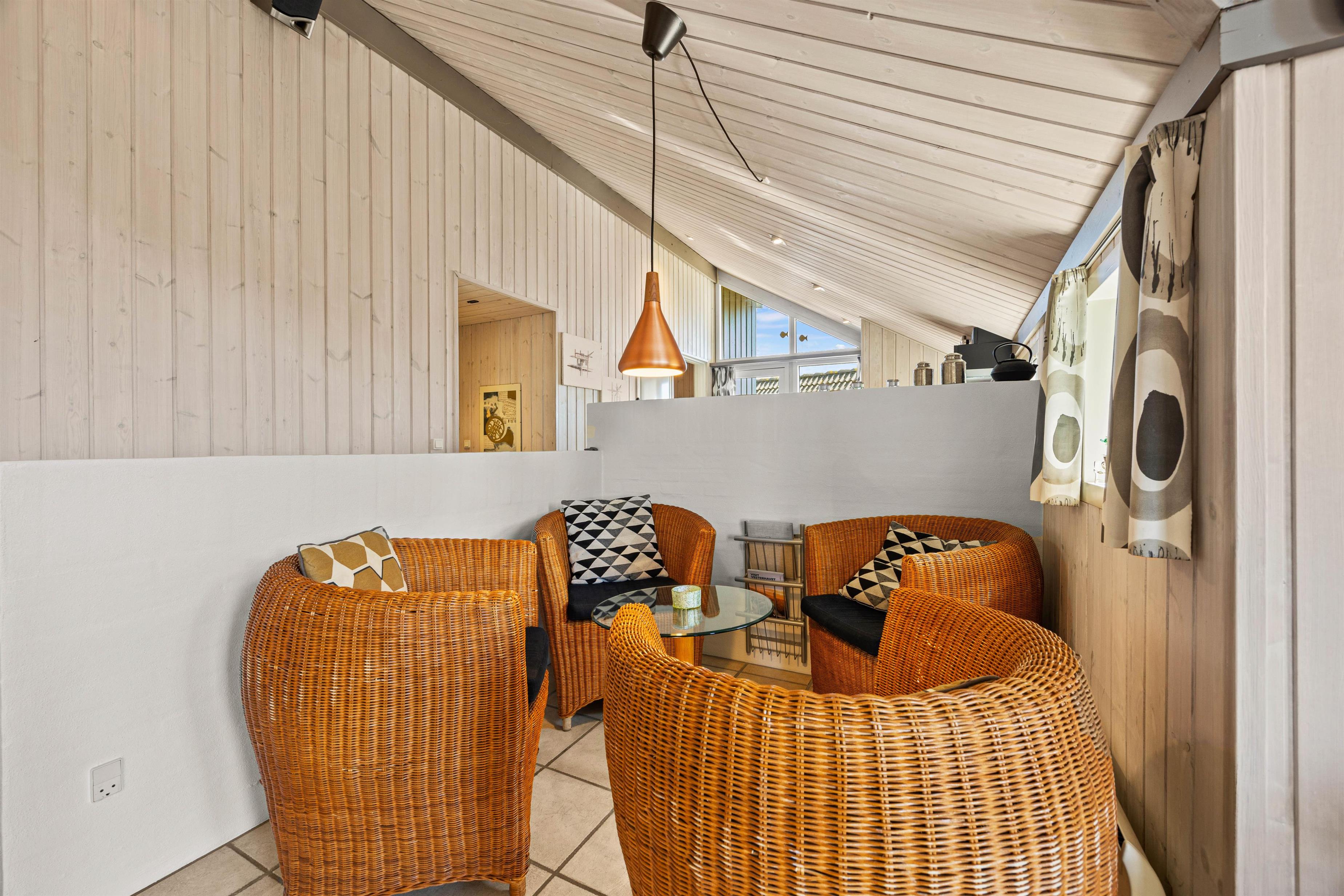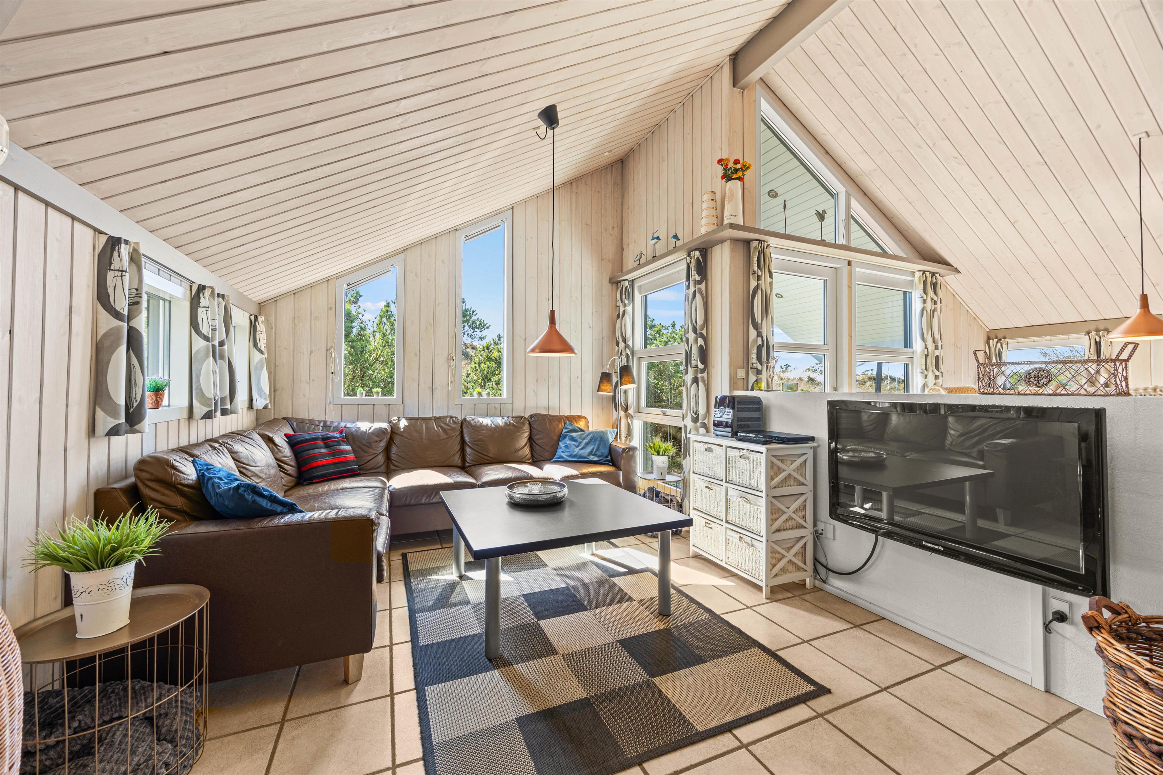 Opholdsrummet i huset er delt op i små afdelinger, sådan at køkken, tv-hjørne og spiseplads er adskilt, og alligevel er I i samme rum og mærker hinandens tilstedeværelse. Tag jeres yndlingsfilm med og sæt i DVD’en, sæt jer omkring spisebordet med et spil eller smæk blot benene op og iagttag den knitrende ild i brændeovnen.