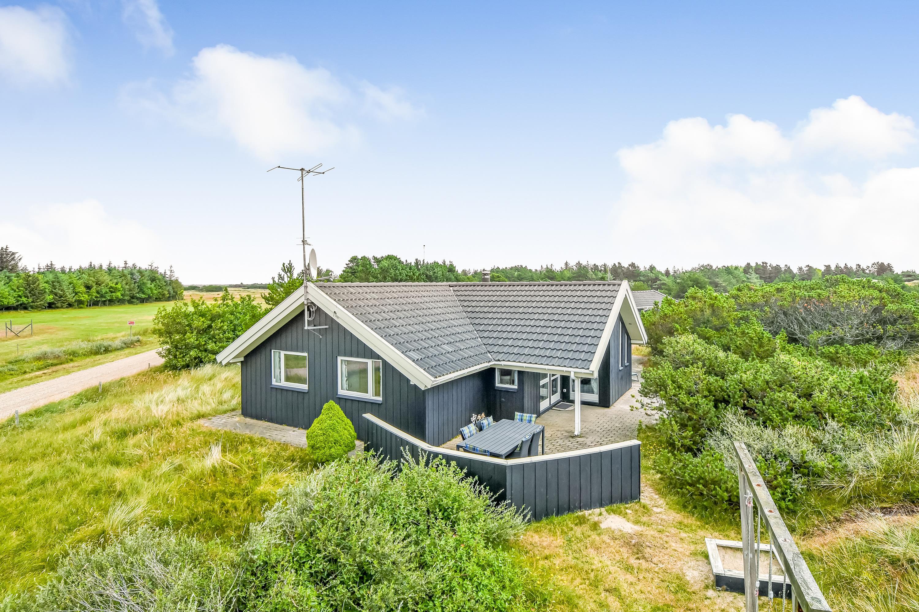 På Nordkrogen 26 i Blåvand ligger dette dejlige feriehus omgivet af plads og luft. Med udsigt til grønne områder, den råskønne natur som baghave og en rask gåtur på 1700 m til havet, inviterer dette hus til udeoplevelser. Samtidigt kan I nyde følelsen af at være helt jer selv, tænde op i brændeovnen på mørke og kolde aftener og lade roen sænke sig. Huset har plads til 8 personer og 2 husdyr.