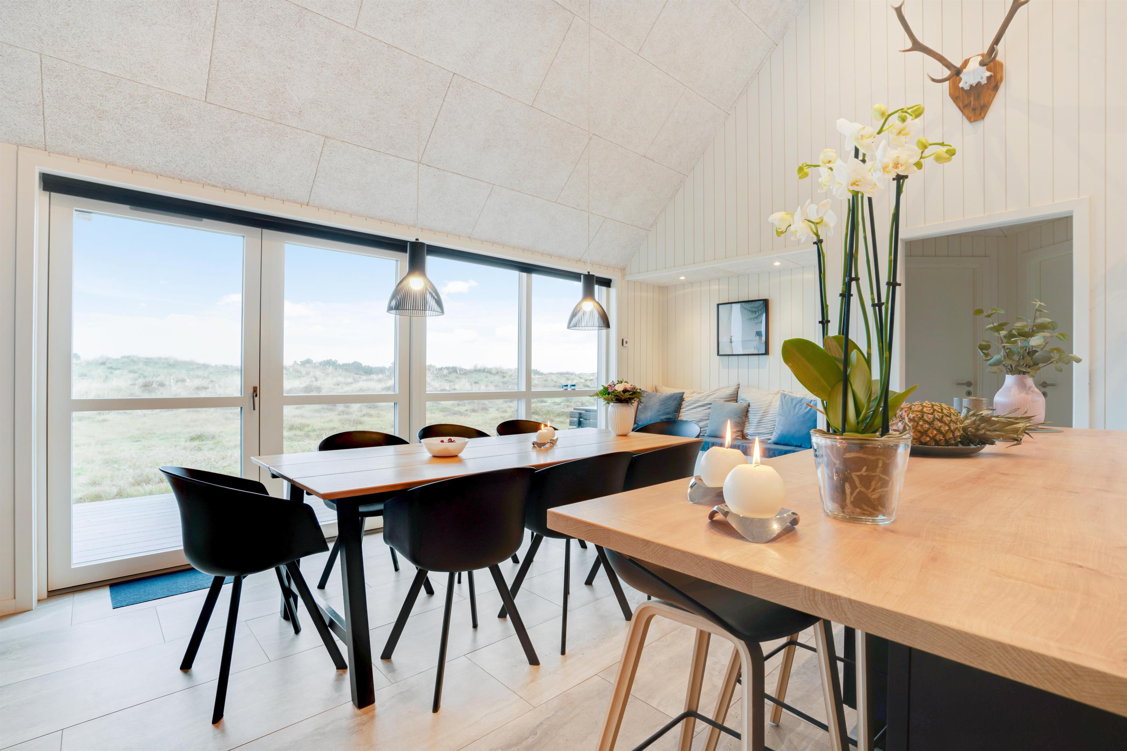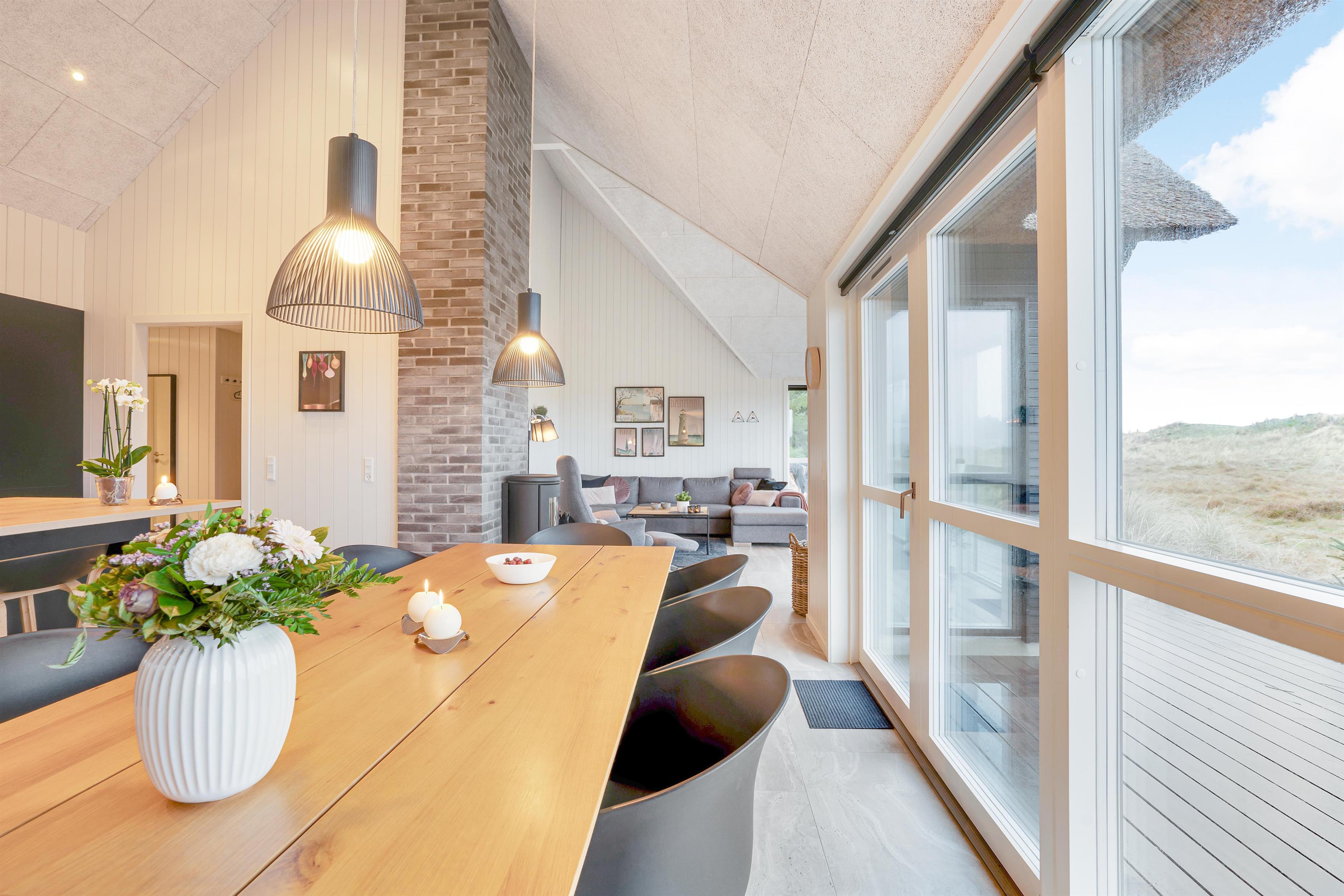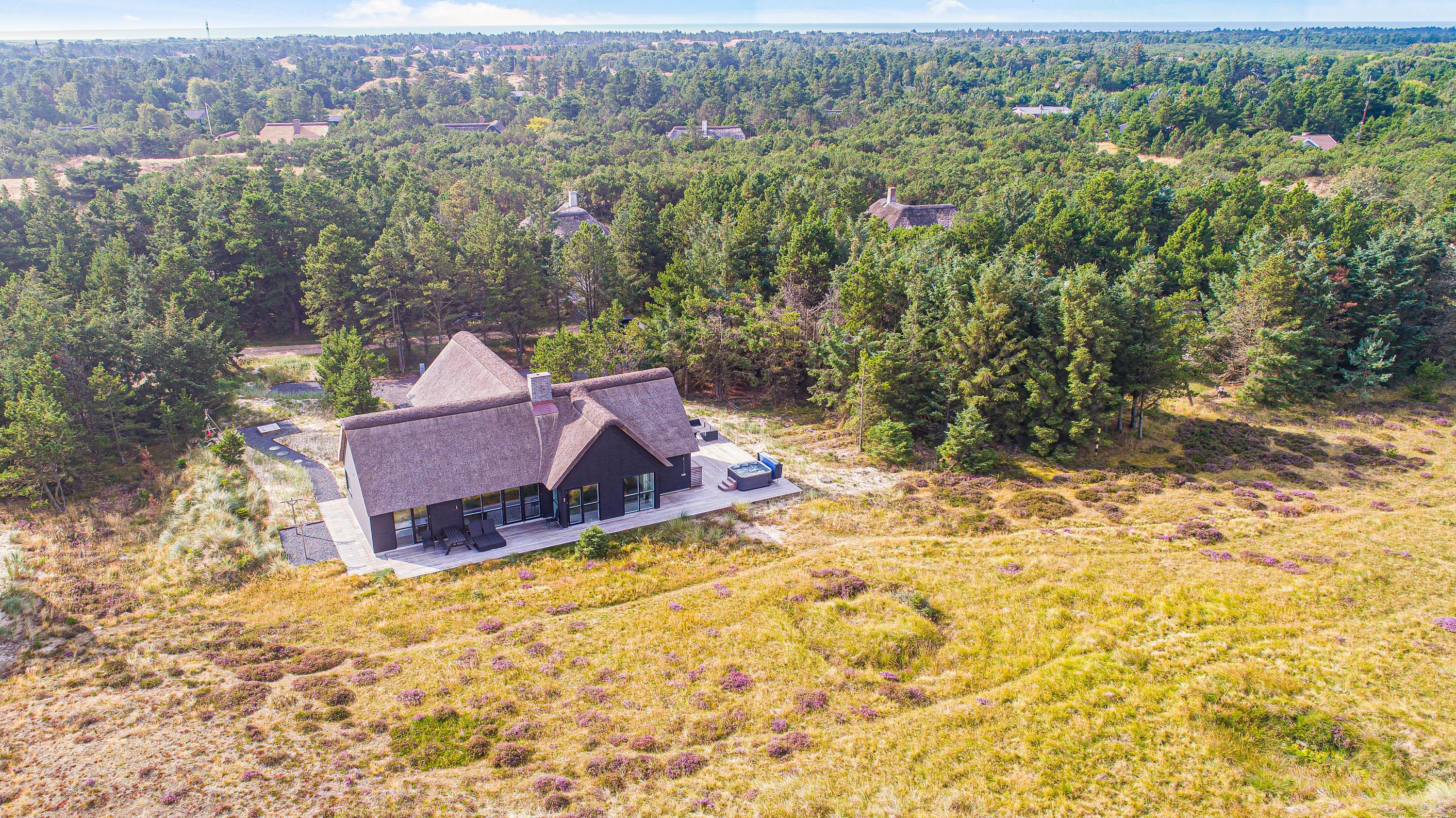 Leder I efter et eksklusivt feriehus til den næste ferie ved havet? Dette luksuriøse aktivitetshus til 10 personer i Blåvand byder på alt, hvad feriehjertet begærer! Her får I ikke kun en stilfuld indretning, der oser af kvalitet, og et hav af fede faciliteter som spabad, sauna, aktivitetsrum og udendørs spabad – I får også en helt unik beliggenhed med uforstyrret panoramaudsigt til det smukke hedelandskab.
