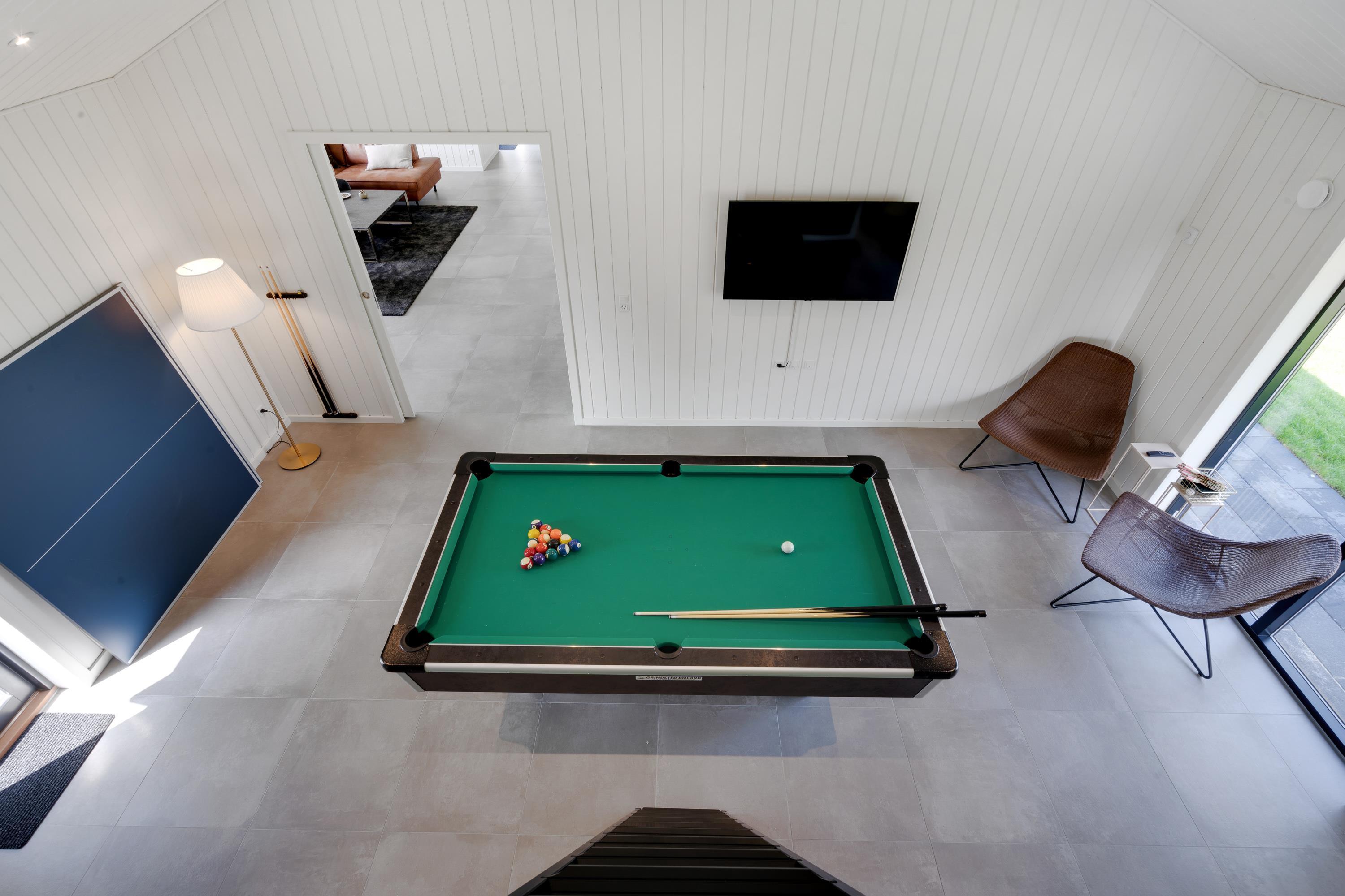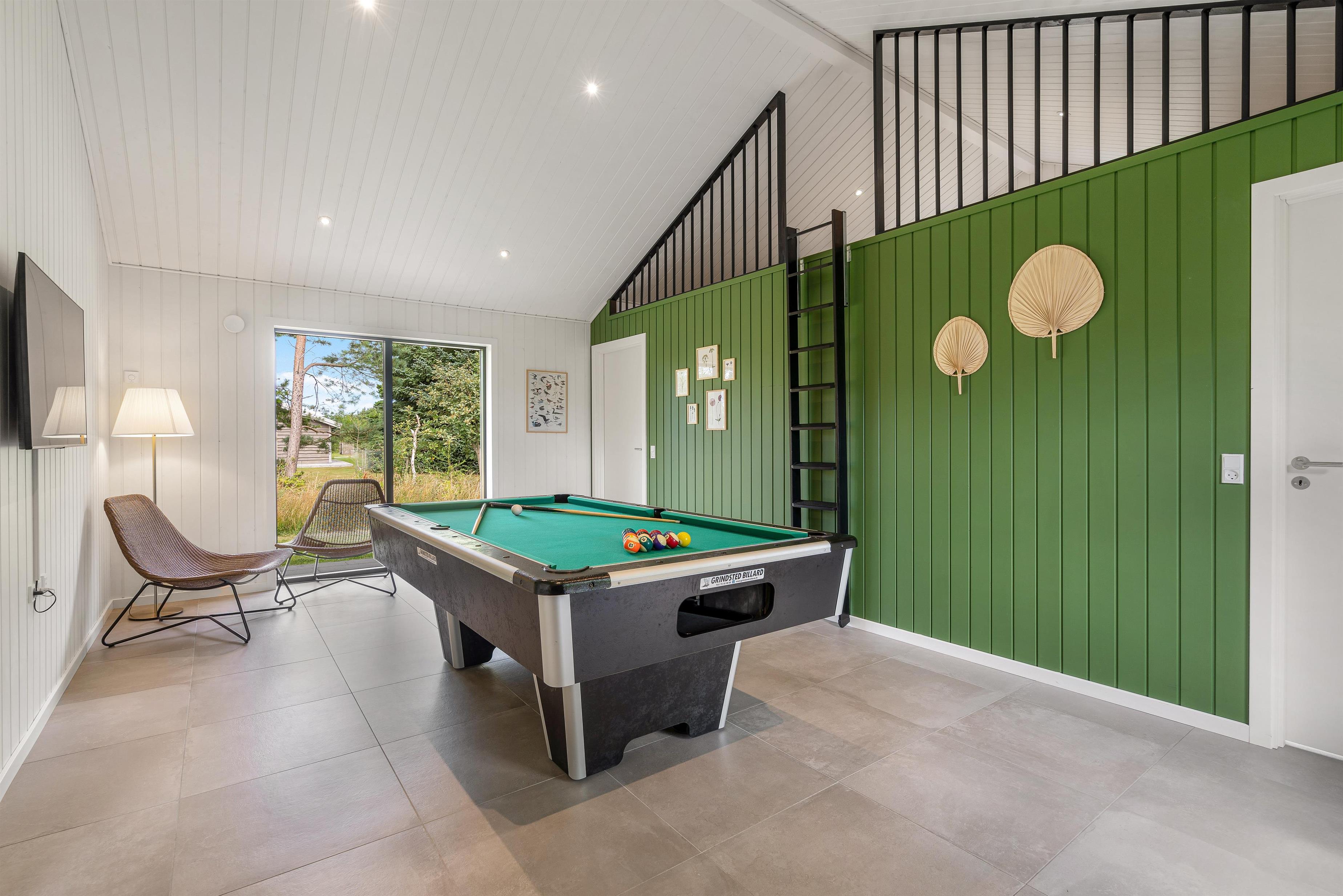 De aktive og konkurrenceglade feriegæster kan i stedet glæde sig over, at sommerhuset er indrettet med et separat aktivitetsrum, hvor der kan konkurreres i både billard og bordtennis. Her kan de med sikkerhed få mange timer til at gå på ferien.