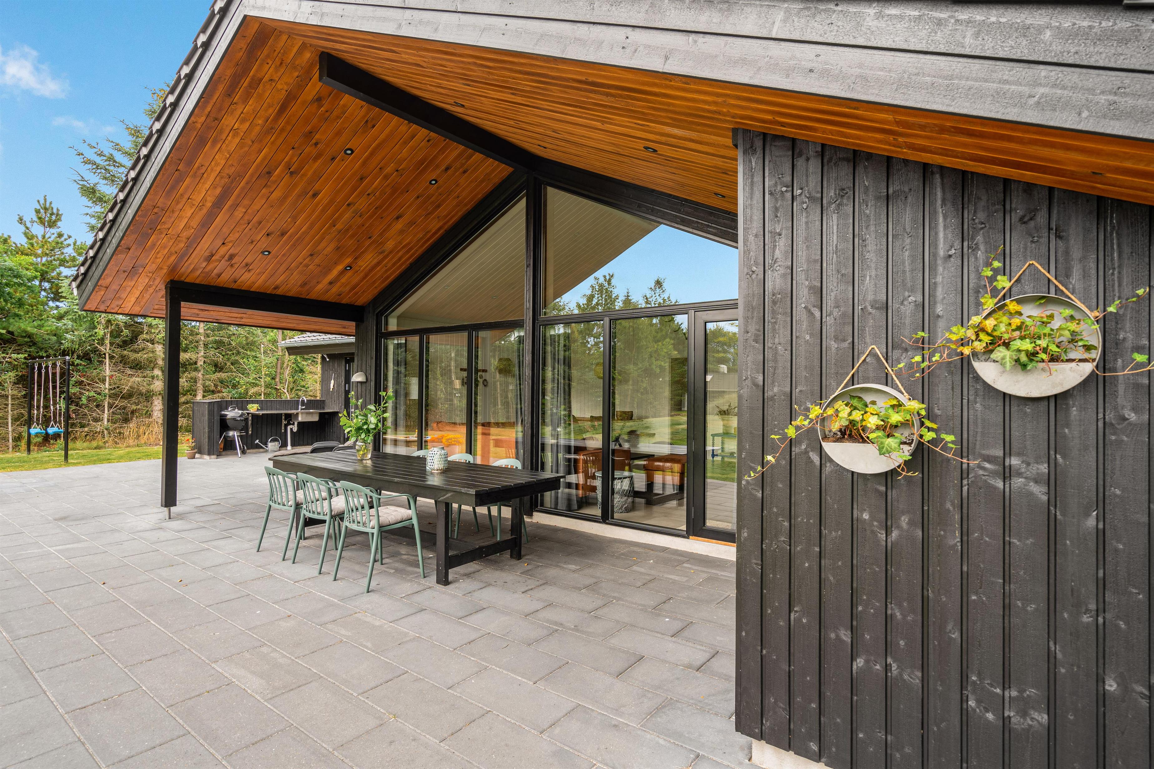 Det 163 kvadratmeter store luksushus er opført i 2020 i lækre kvalitetsmaterialer og rummer en moderne og stilfuld indretning, hvor I med det samme vil falde til. Store vinduer i opholdsrummet og aktivitetsrummet sørger for et skønt lysindfald og skaber en ekstra rummelig fornemmelse samtidig med, at I får udsyn til de grønne omgivelser omkring jer.