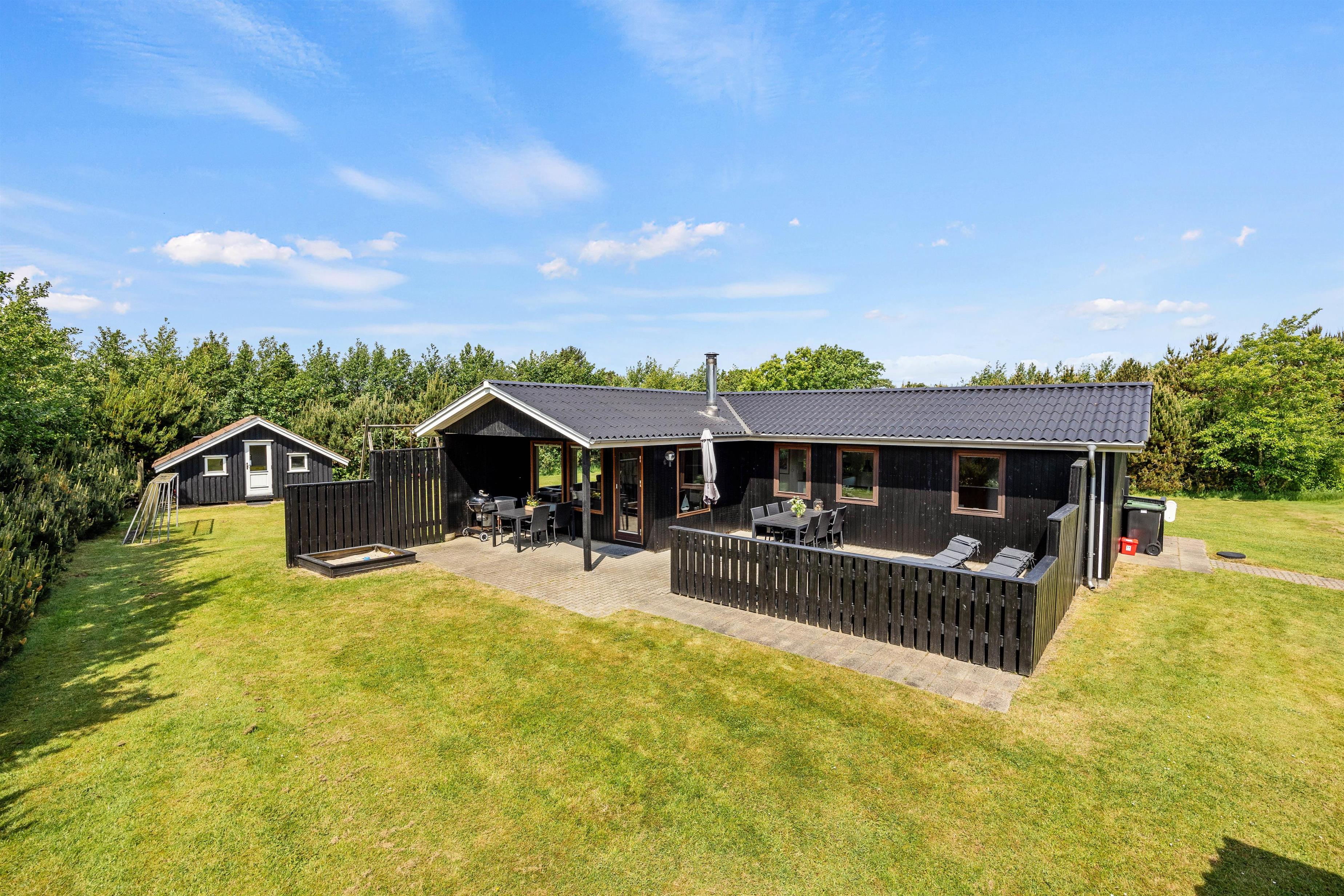 I kan også læse en god bog i skygge for solen på den overdækkede terrasse, mens børnene leger på den 1845 m² store plænegrund med gynge og sandkasse. Nyd soltimerne på terrasse og græsplæne og slut dagen af under stjernerne over Blåvands smukke landskab.