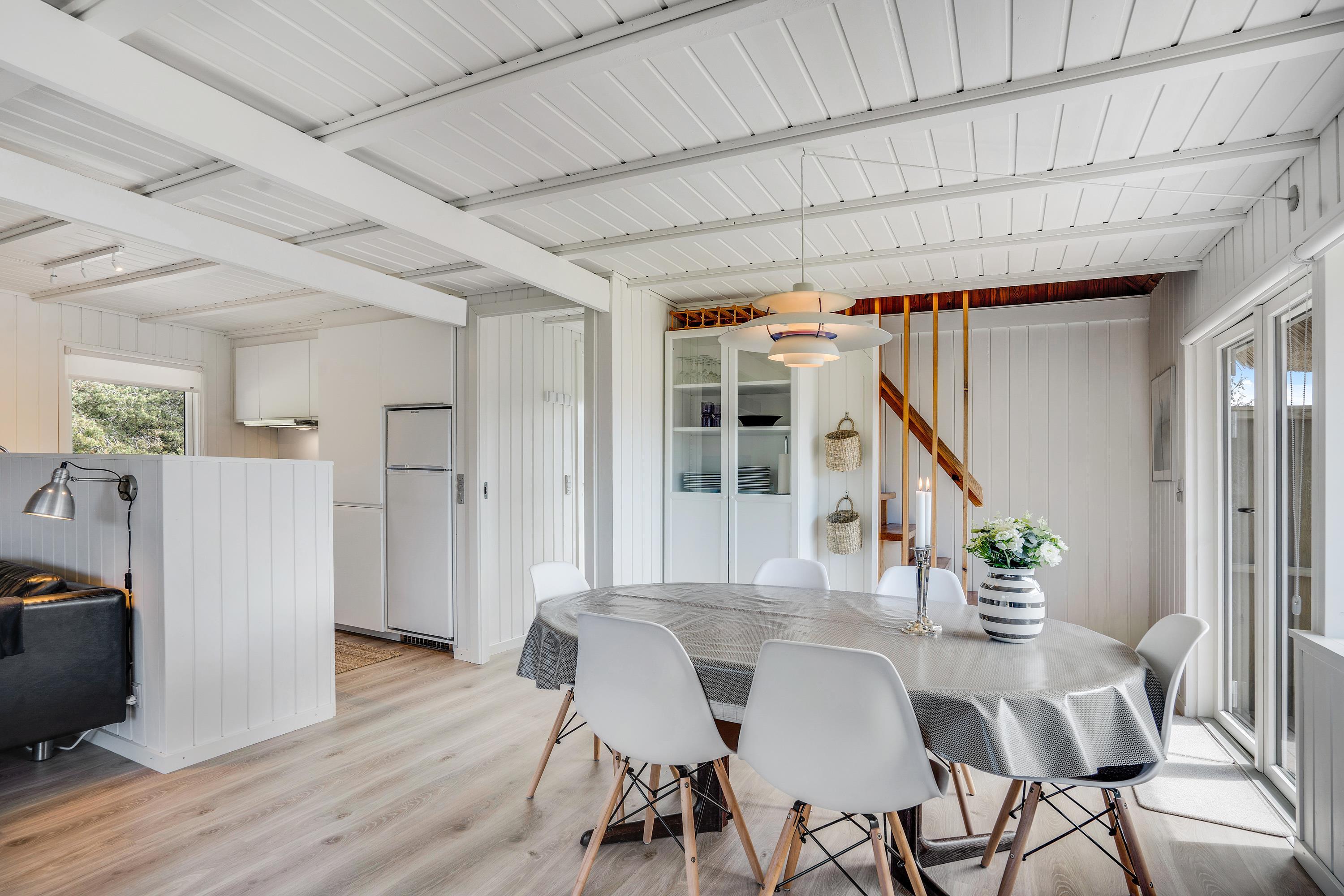 Sommerhuset på Sandtoftevej 44 har i 2020 gennemgået en renovering, og resultatet heraf indebærer både et flot, nyt stråtag og en velafstemt indretning, der både er moderne og hyggelig.