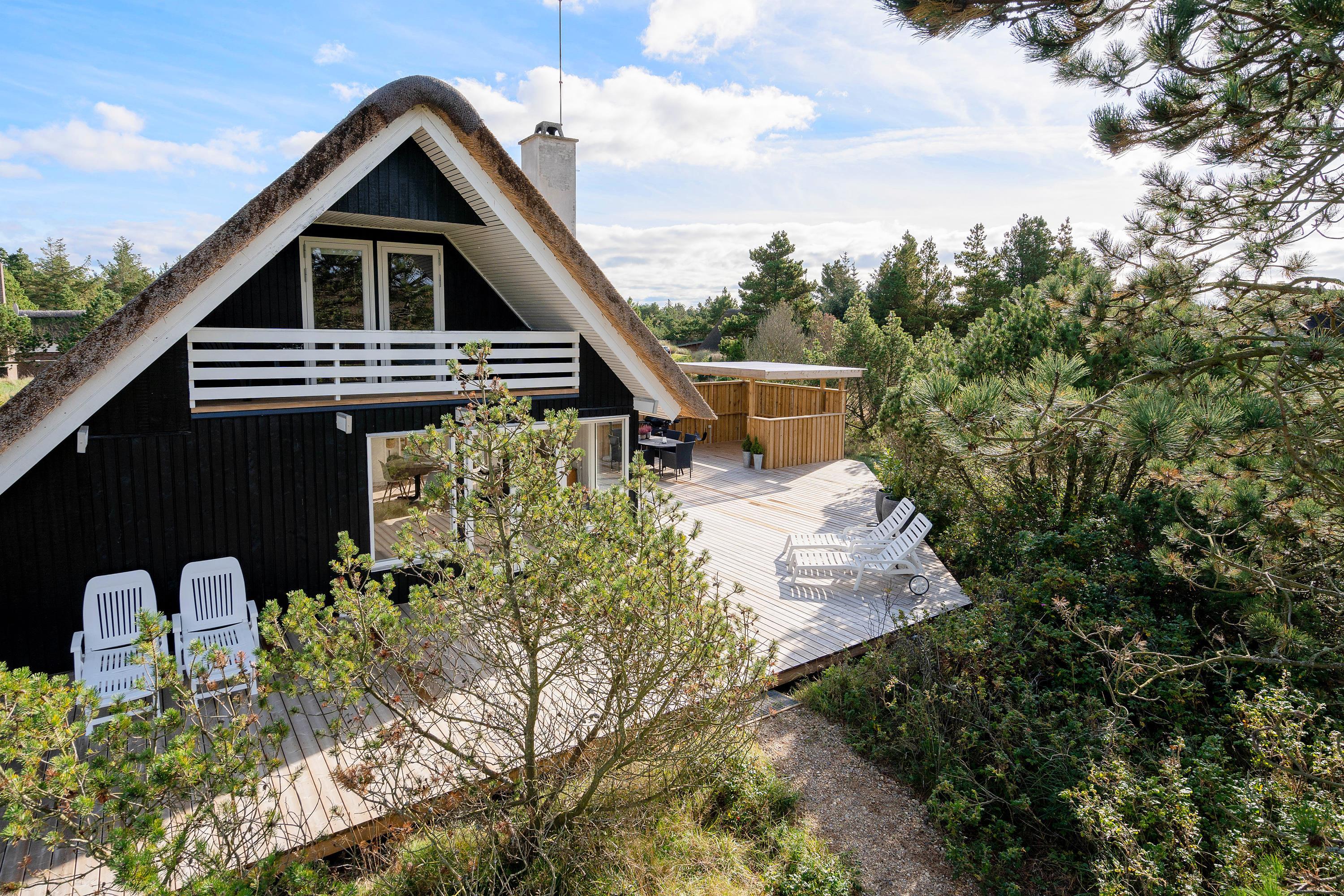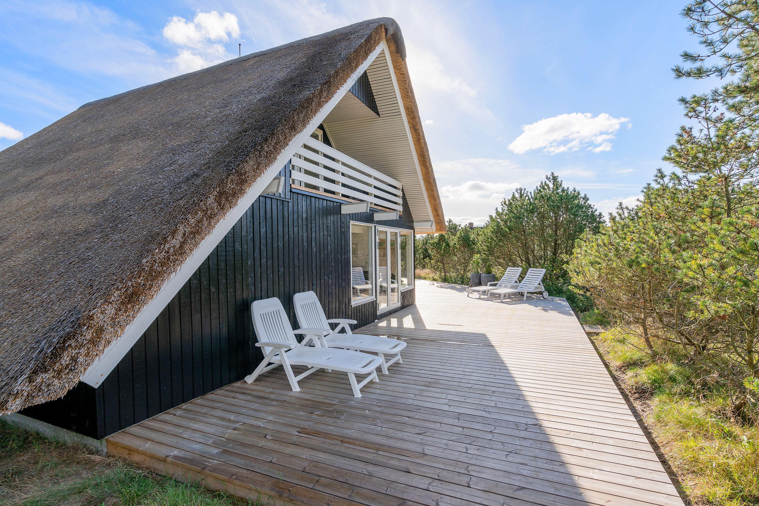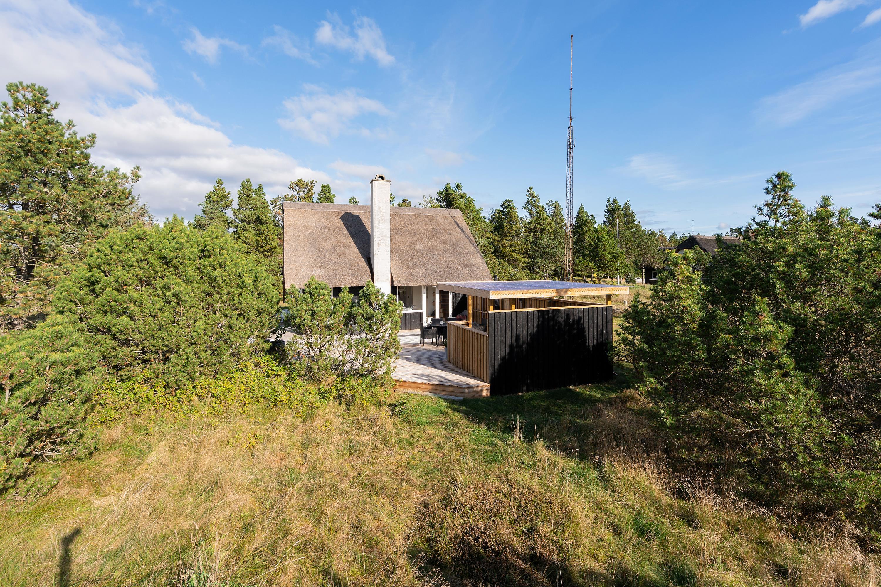 Dette hyggelige stråtækte sommerhus ligger på en rolig og naturskøn plet i den sydøstlige del af Blåvand. Huset er renoveret i år 2020 og med plads til 5 personer og 1 hund er rammerne sat for en dejlig ferie med familien eller vennerne i flotte, vestjyske omgivelser – kort vej fra Blåvand Zoo og få minutters kørsel fra både centrum og stranden.