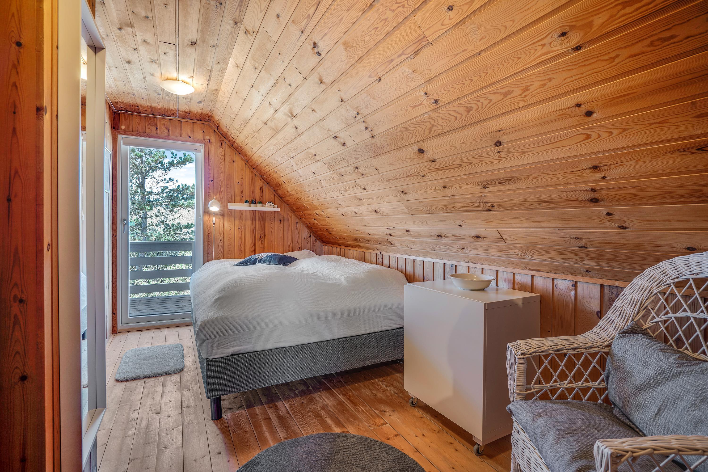 Den 81 kvadratmeter store feriebolig er opdelt på to etager. På førstesalen finder I tre gode soverum, to med udgang til en lille balkon med udsigt over ferielandskabet. På stueetagen ligger det åbne opholdsrum med stue, køkken og spiseafdeling samt et badeværelse.