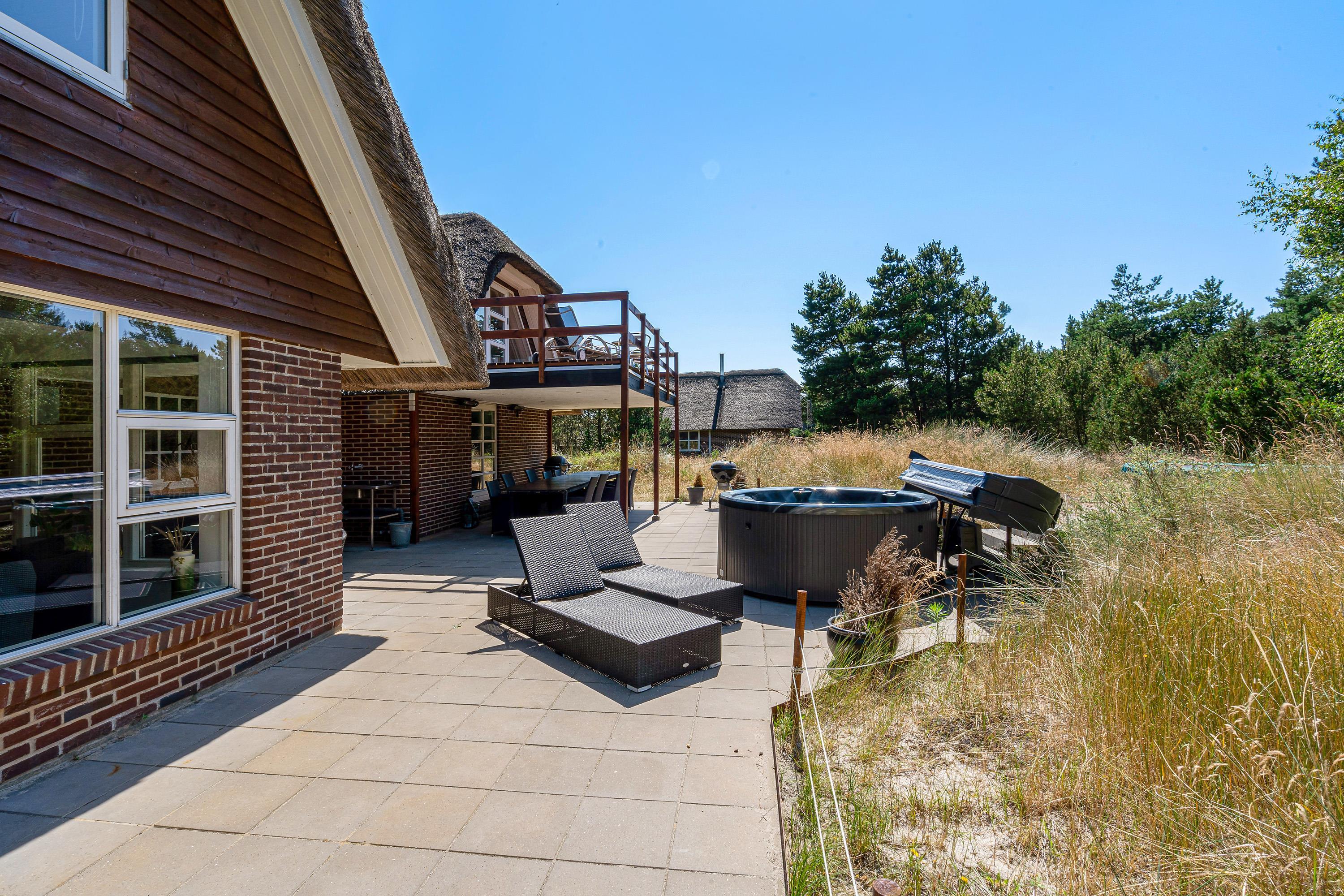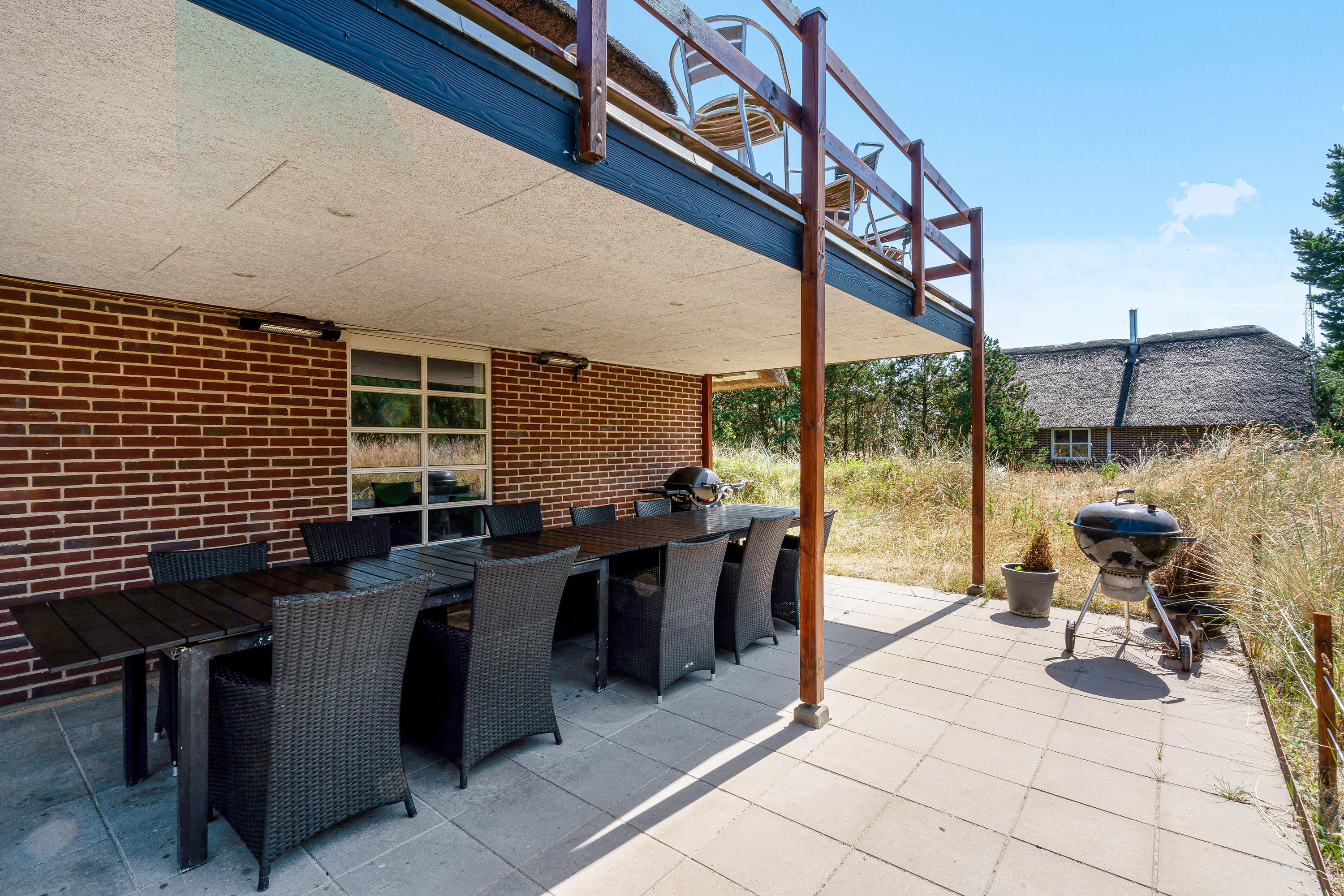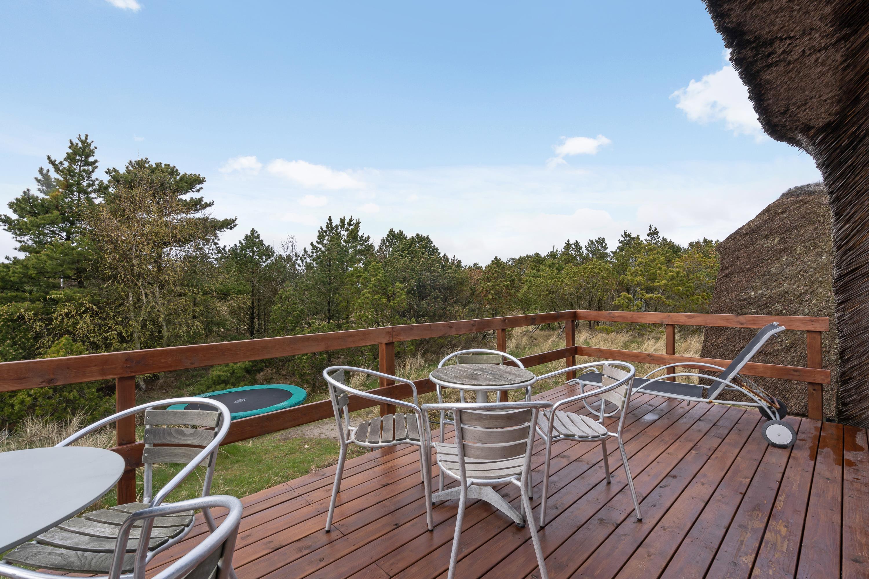 Fra førstesalen kan I træde ud på altanen, hvor I kan læne jer tilbage i havemøbler og slappe af i solens stråler og nyde udsigten til den vestjyske natur. Ellers kan I også tilbringe de solrige feriedage på terrassen, hvor I både har havemøbler, liggestole og gasgrill til rådighed.