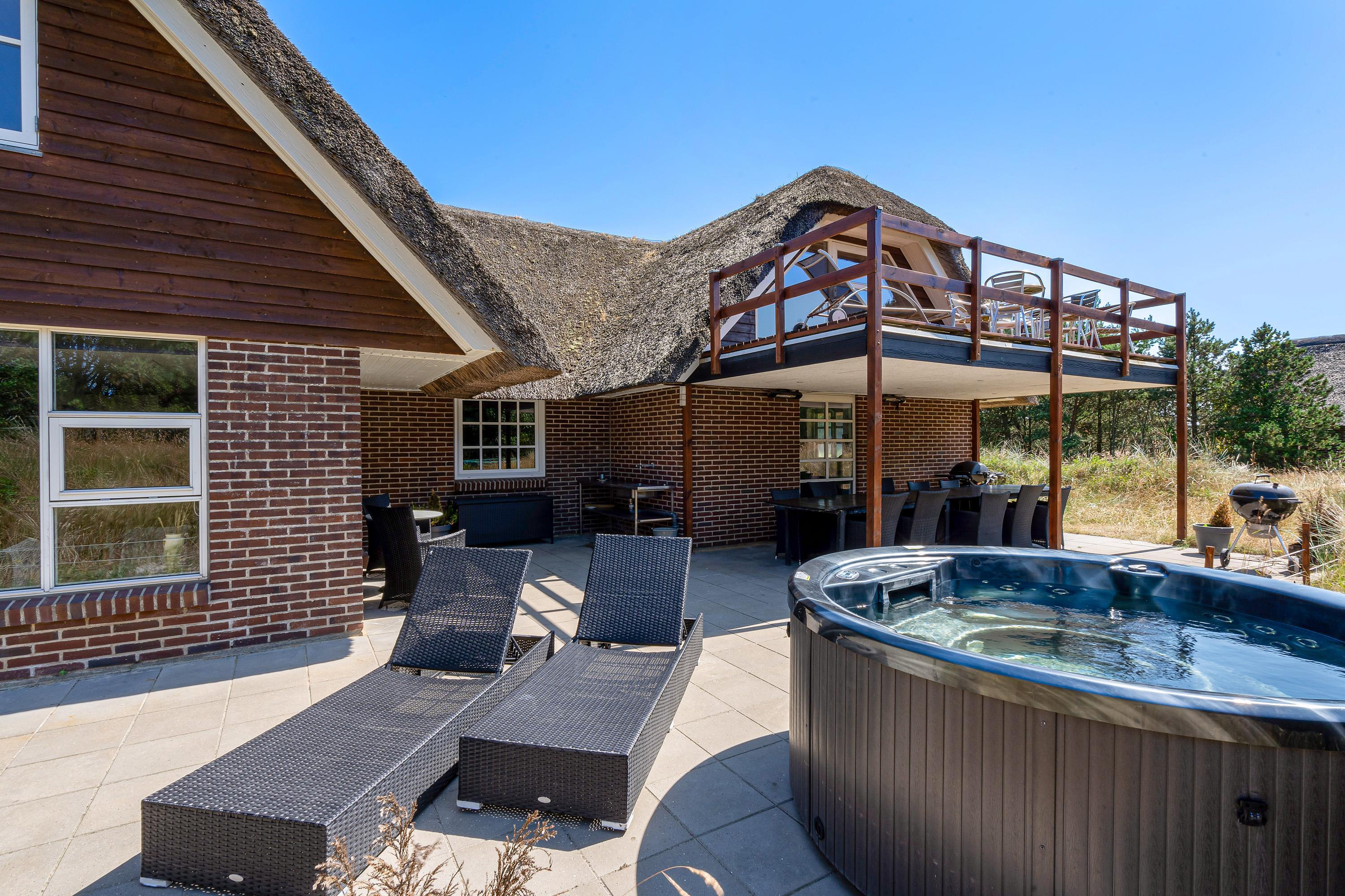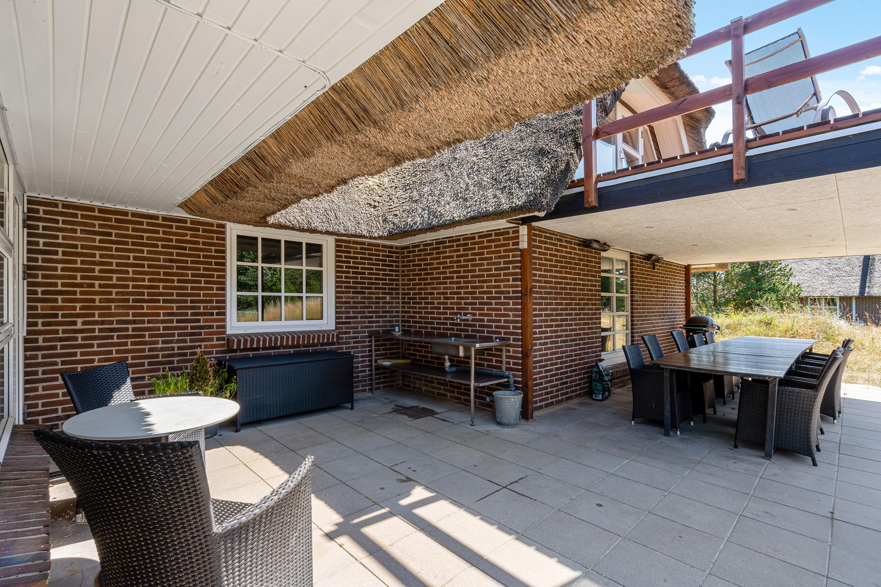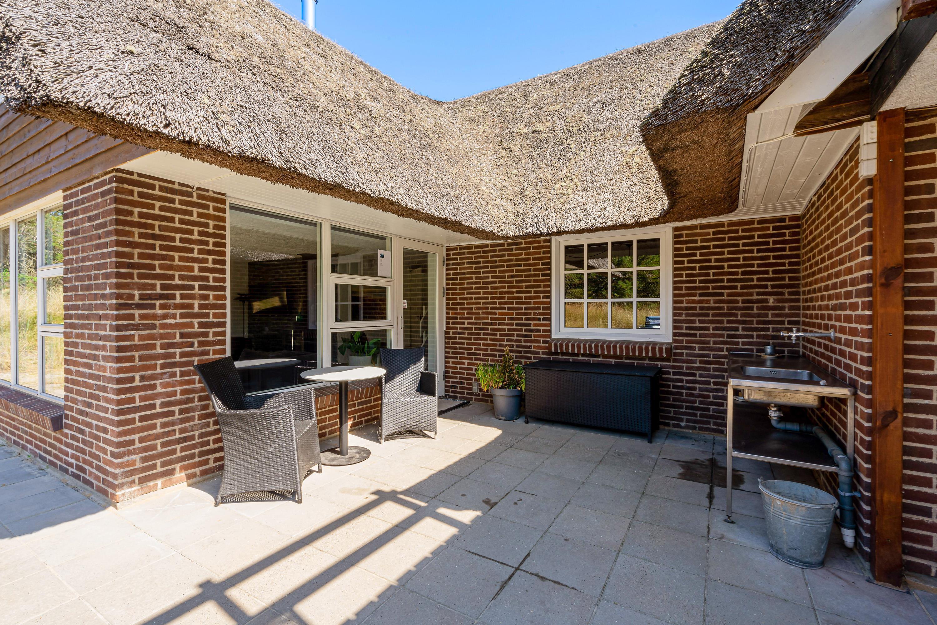 Fra førstesalen kan I træde ud på altanen, hvor I kan læne jer tilbage i havemøbler og slappe af i solens stråler og nyde udsigten til den vestjyske natur. Ellers kan I også tilbringe de solrige feriedage på terrassen, hvor I både har havemøbler, liggestole og gasgrill til rådighed.