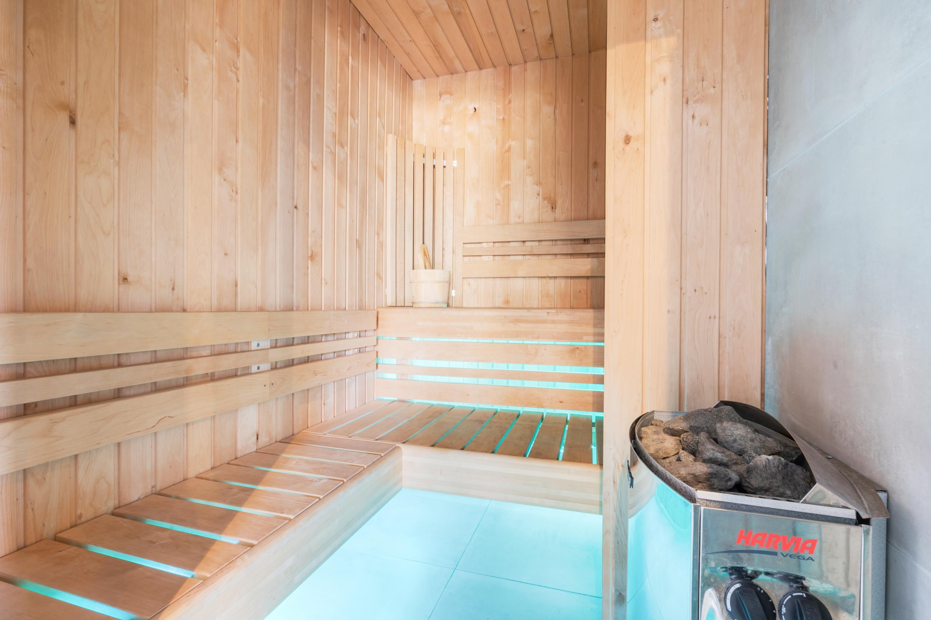 Når I har været i vandet så længe, at jeres fingre og tæer er helt rynkede, kan I skifte poolen ud med saunaen. Sæt jer til rette i varmen og kom helt ned i gear efter nogle sjove og underholdende timer i poolen.