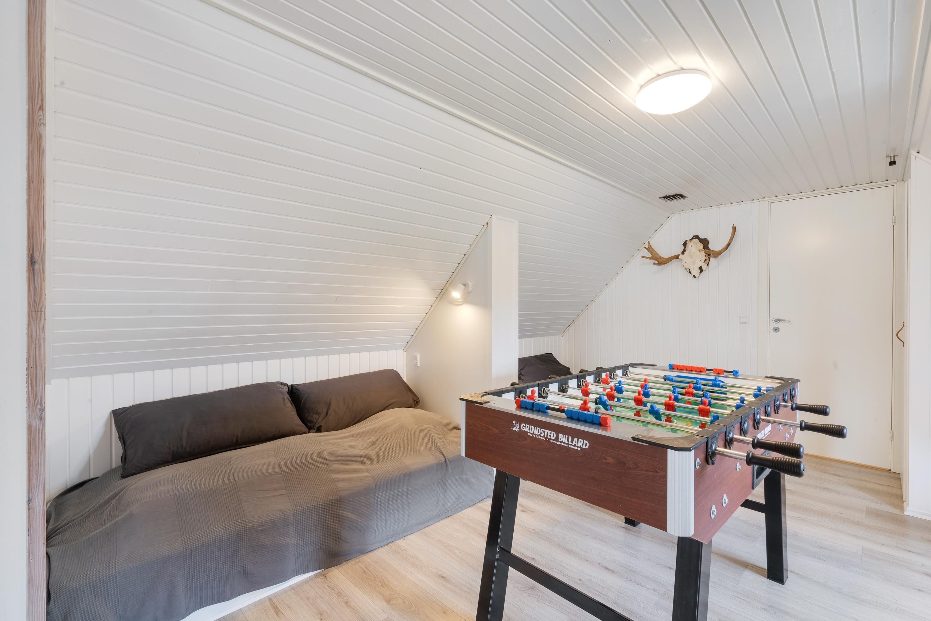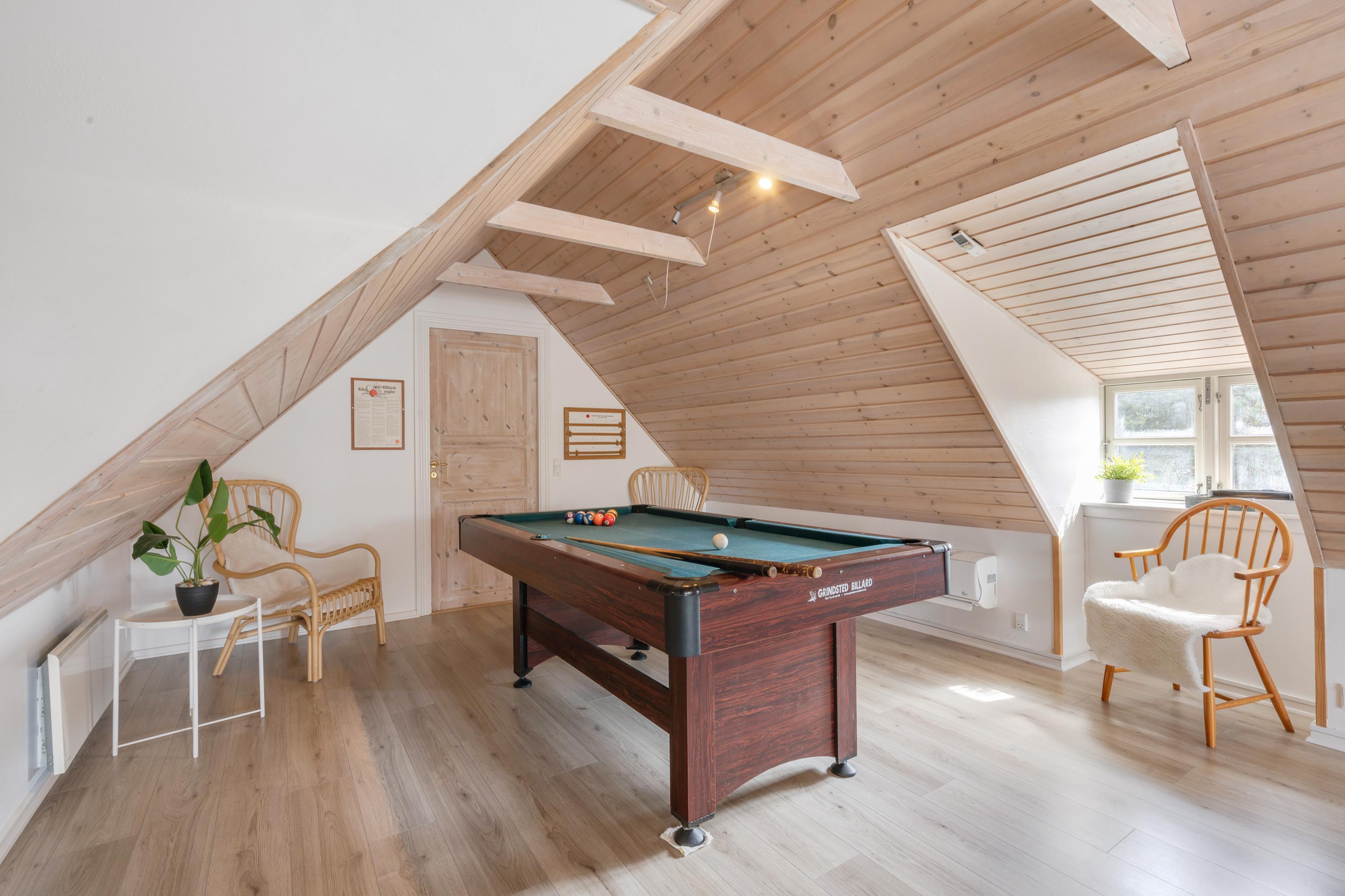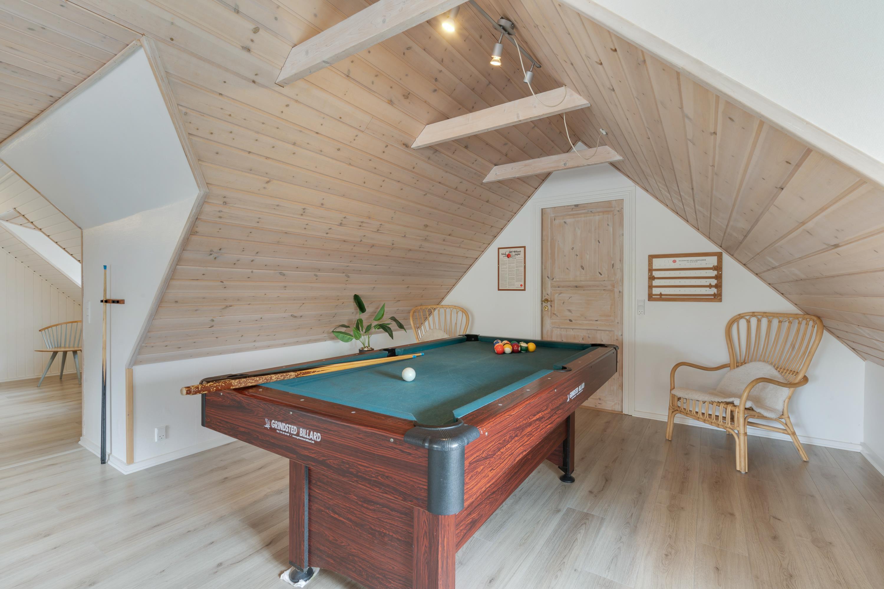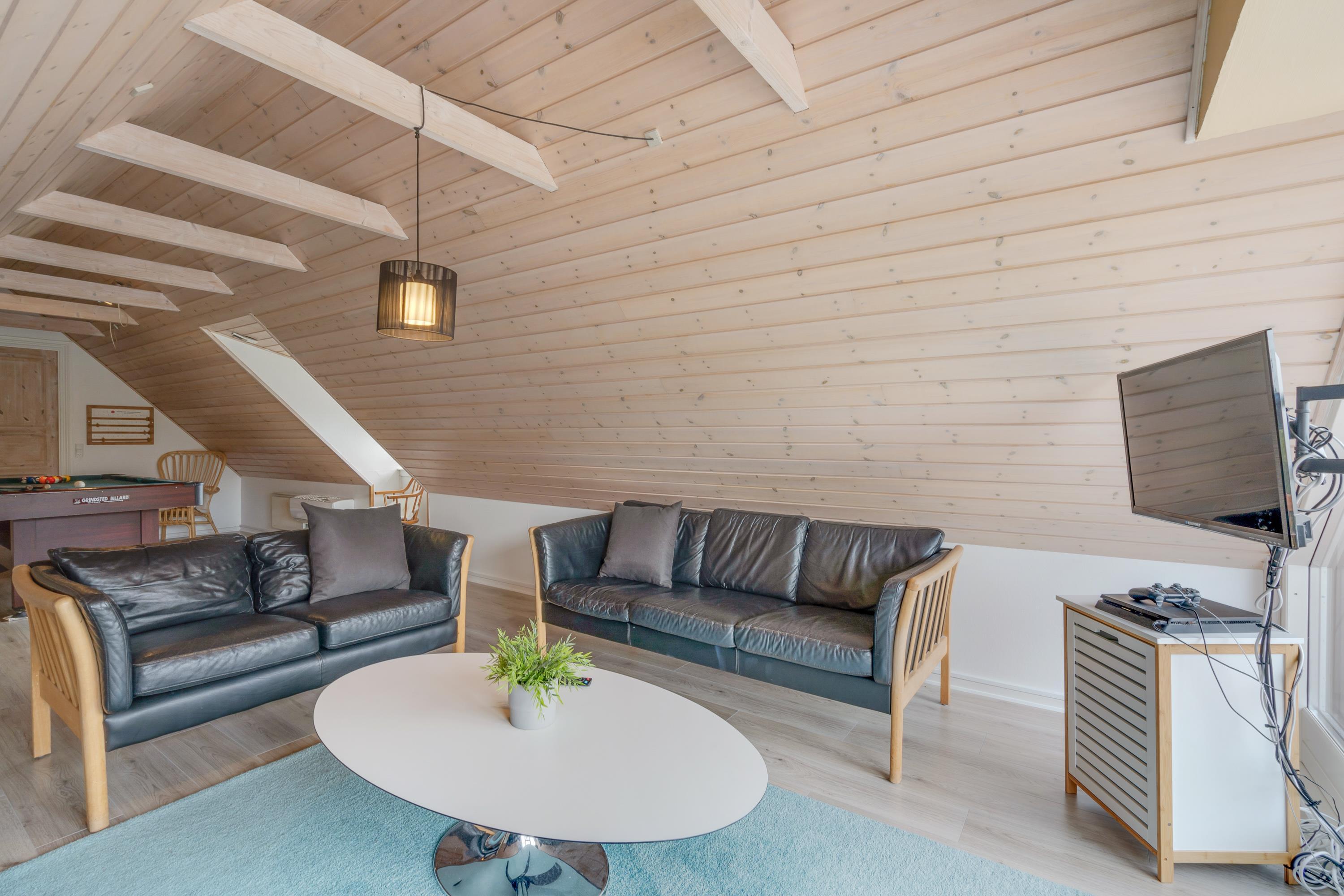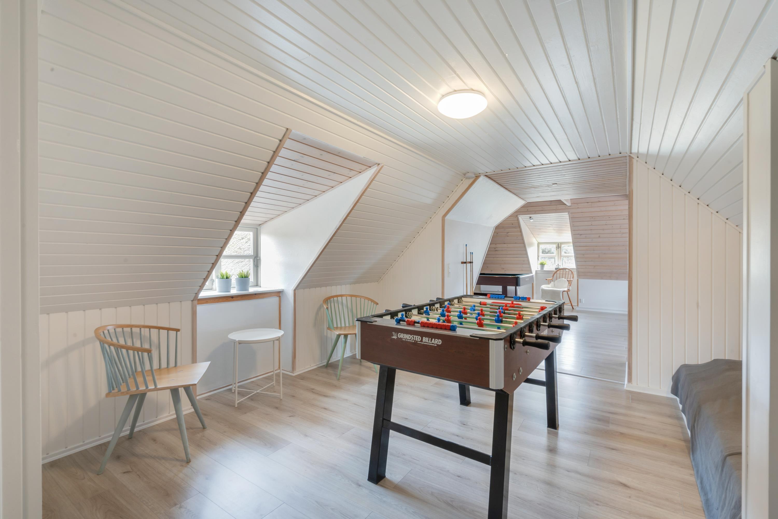 Sommerhusets alrum er det store samlingssted på ferien. Her kan I samles til gode måltider ved spisebordet eller sætte jer til rette i den store sofa og se en god film. Ellers kan I også spille Playstation eller samles omkring billard- eller bordfodboldbordet til en sjov spilaften.