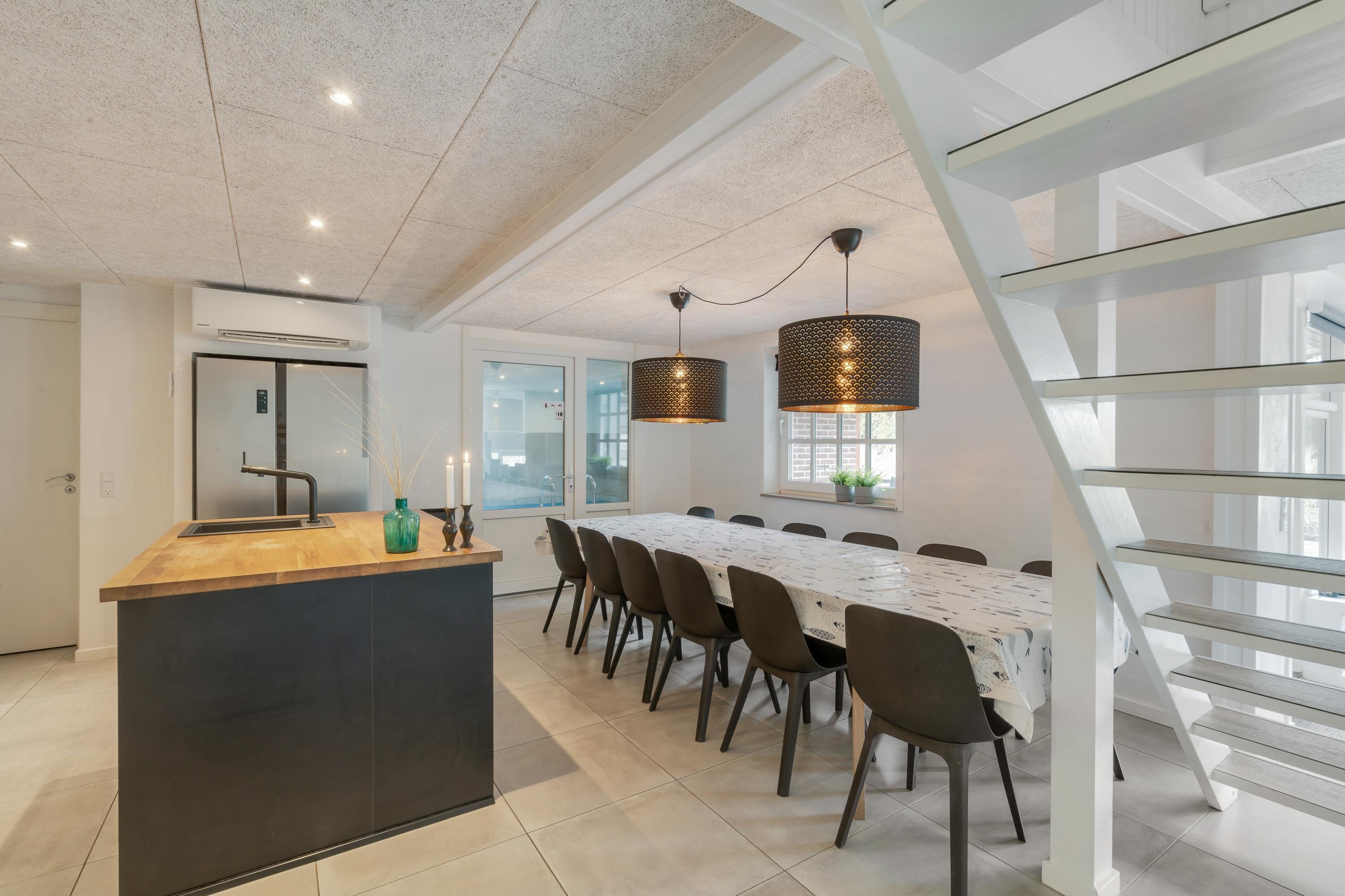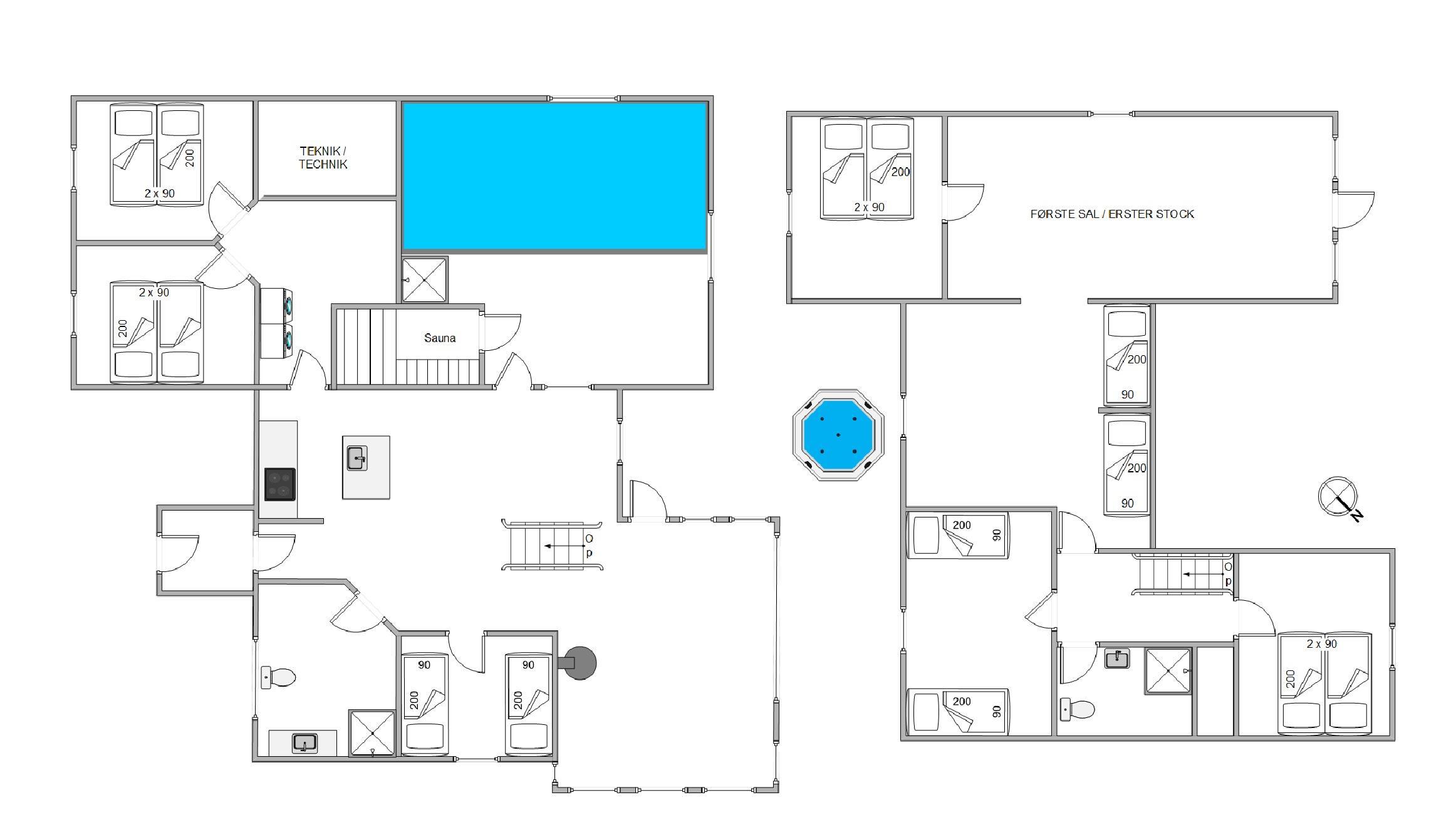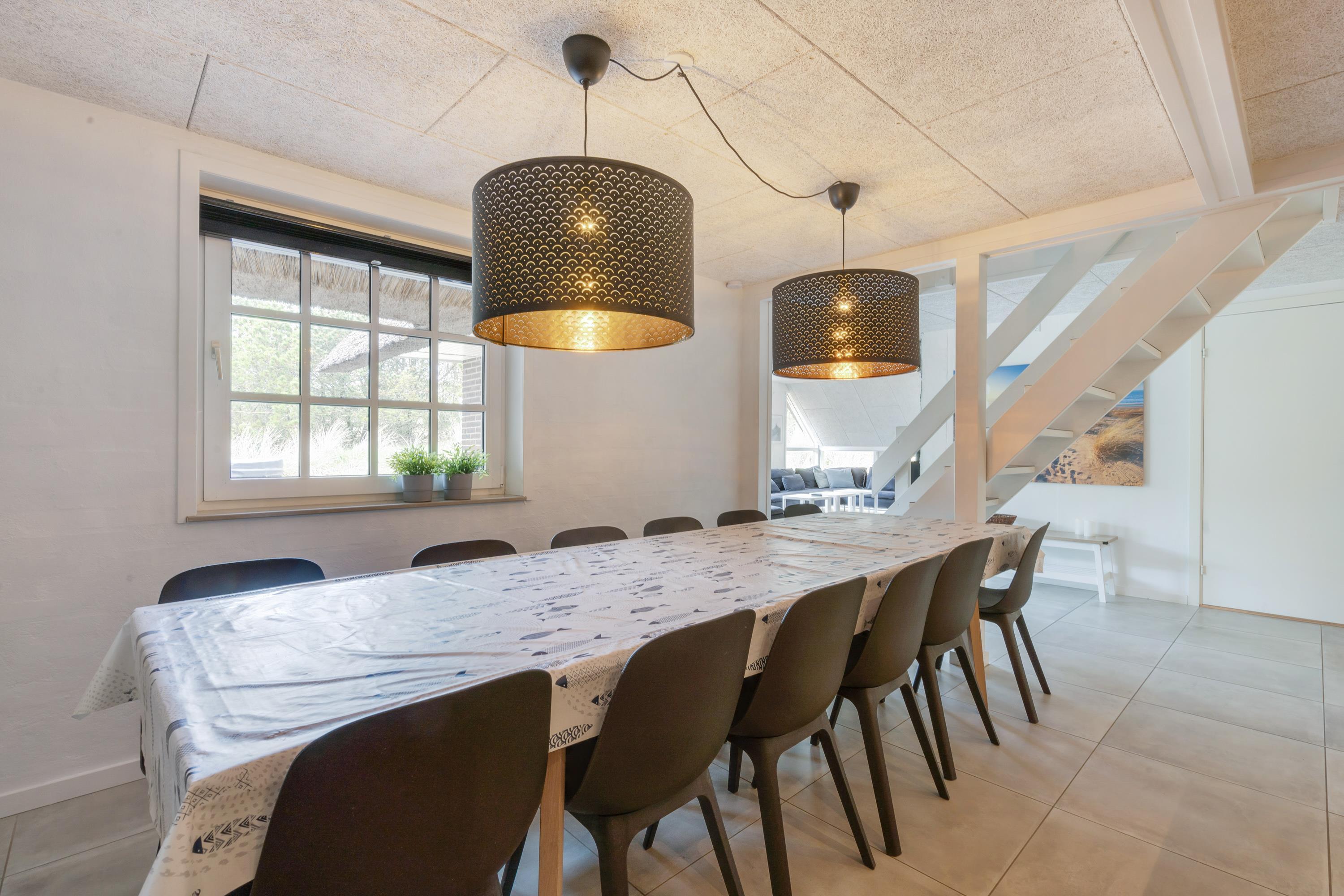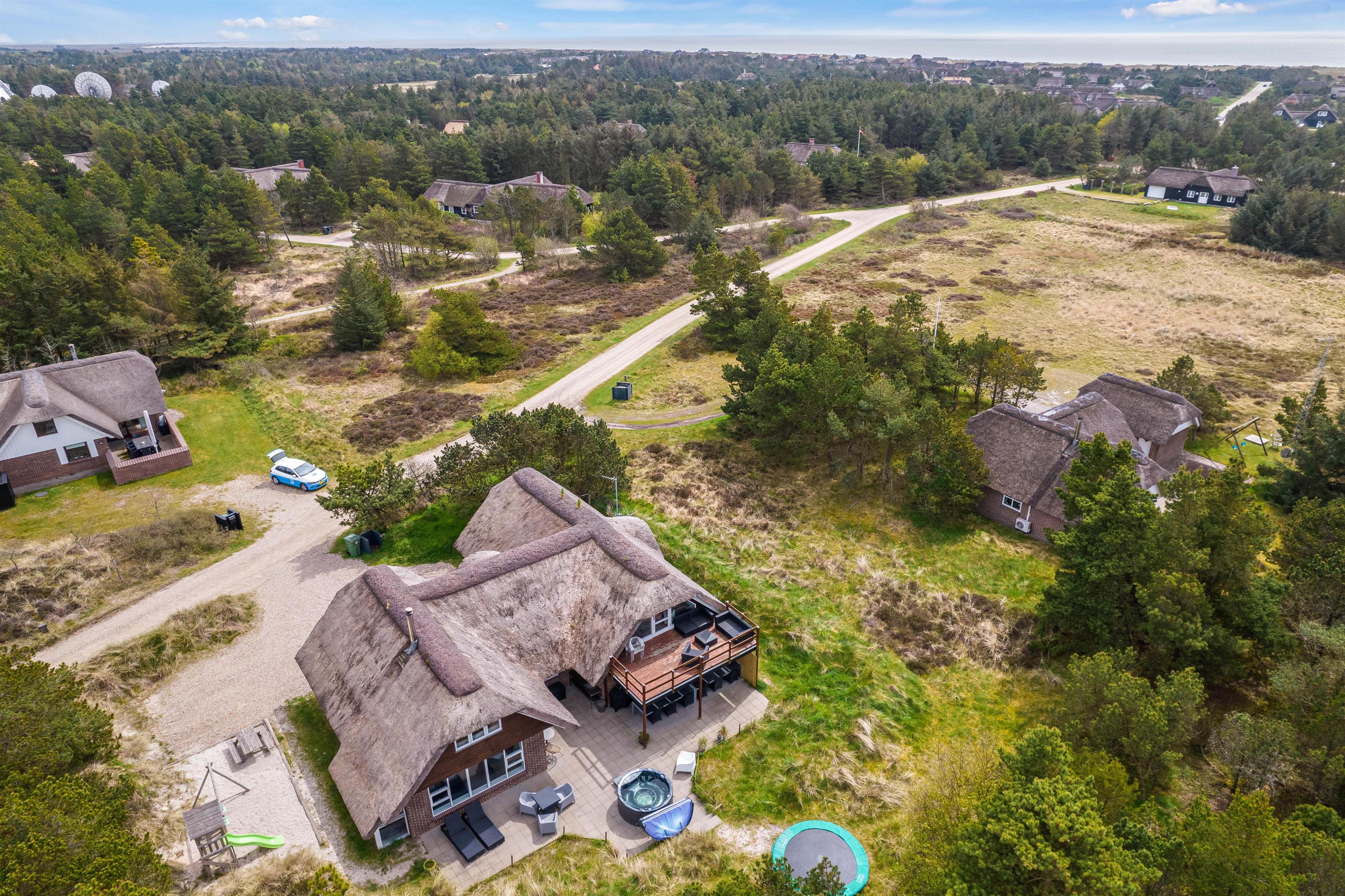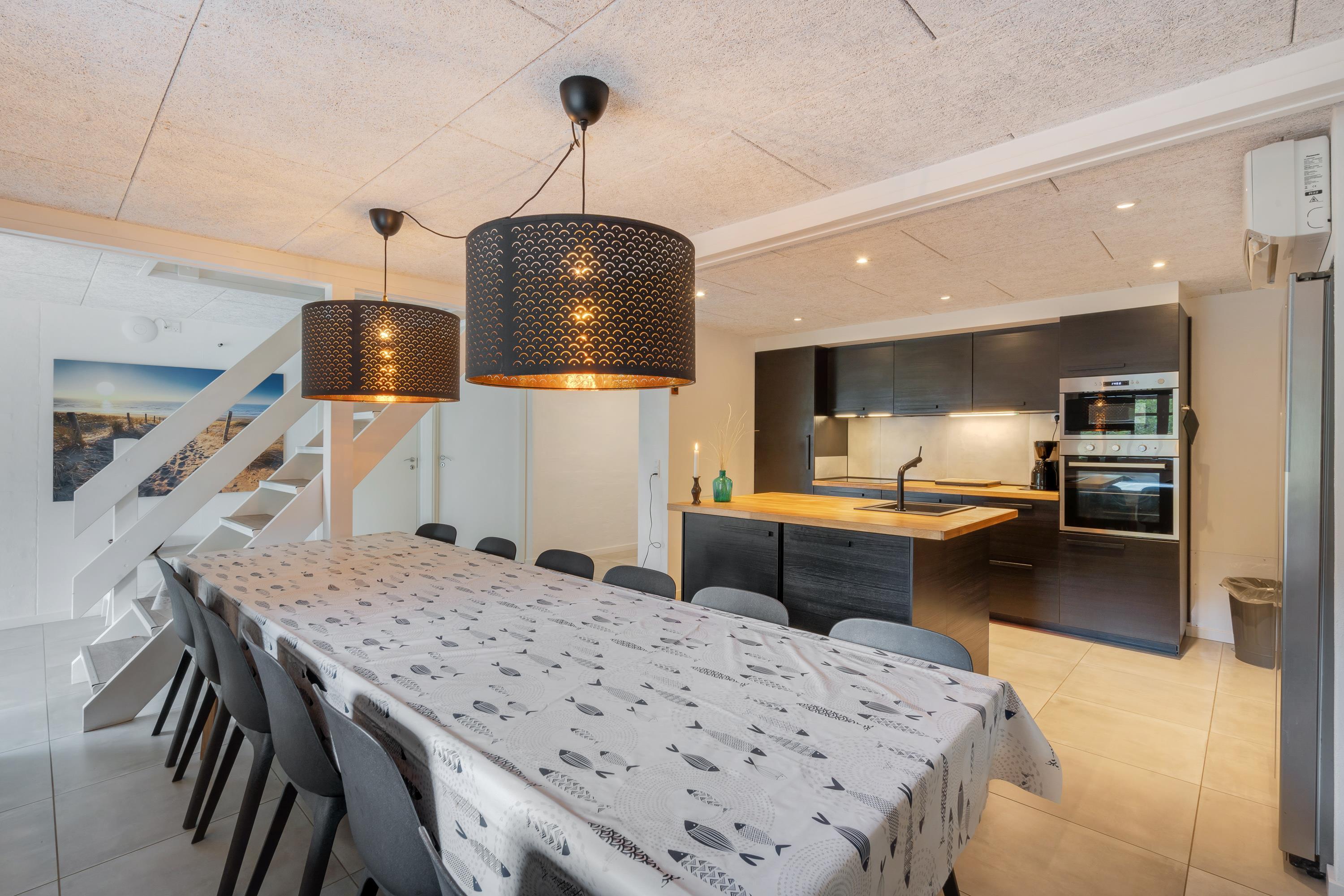 Det 270 kvadratmeter store sommerhus er velindrettet med god plads til alle 12 feriegæster. Feriehuset har 6 soveværelser, hvor I kan få jeres skønhedssøvn. I feriehuset er der desuden 2 badeværelser med gulvvarme. I stueetagen og på førstesalen er der luft-til-luft varmepumpe.