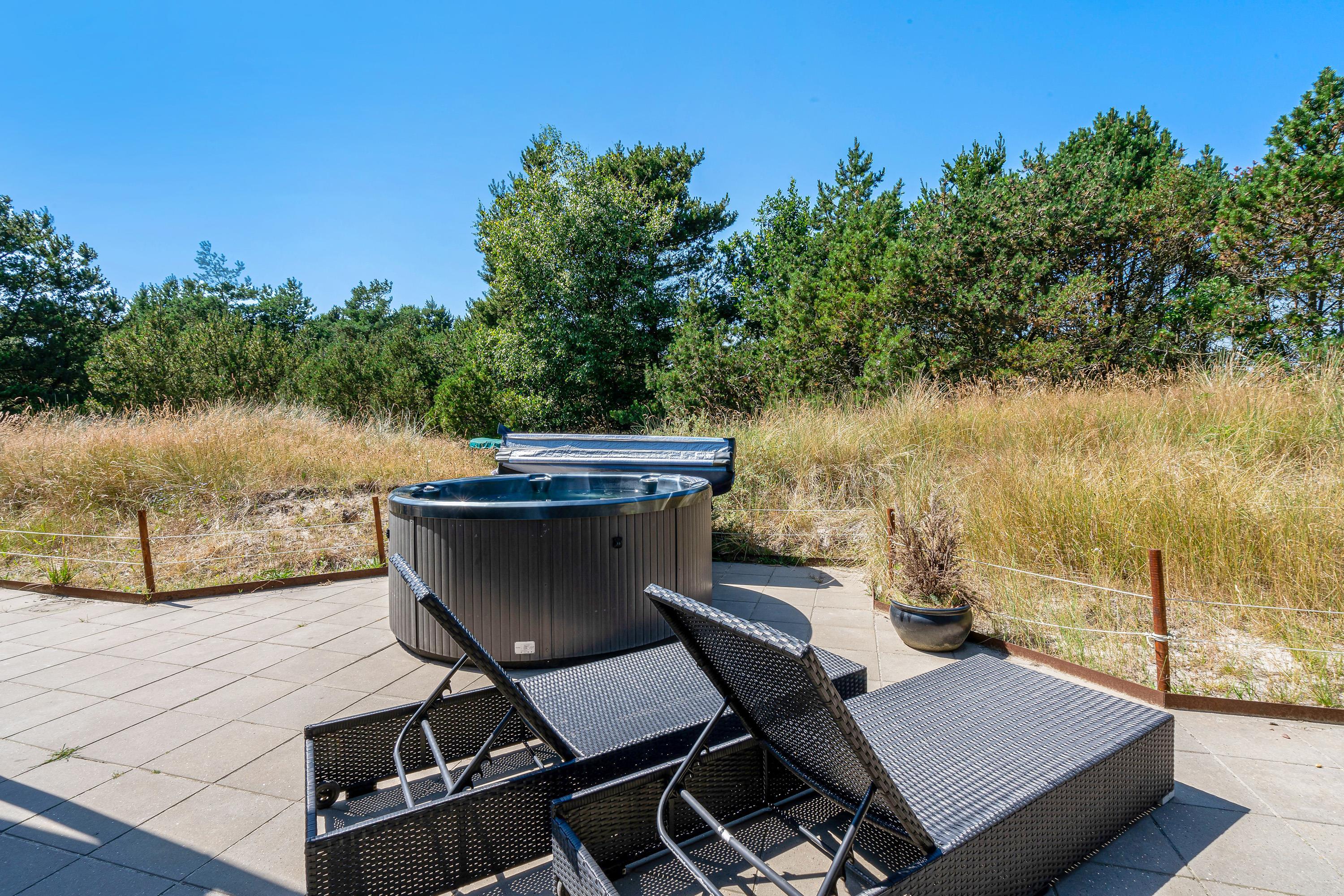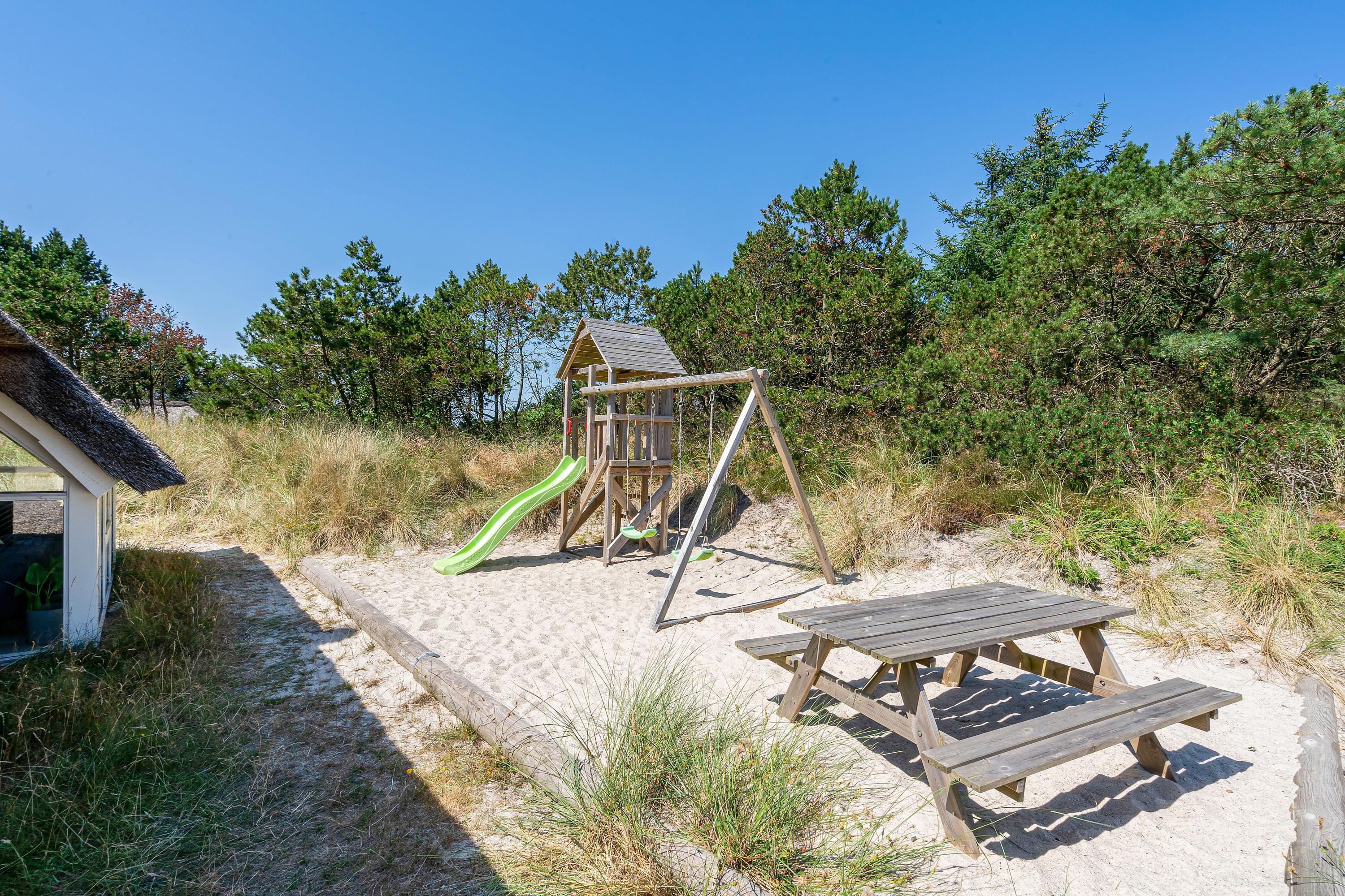På terrassen står også en lækker udespa klar til jer. Sæt jer i det varme boblende vand og slap fuldstændig af under åben himmel. Imens kan børnene lege i sandkassen, gynge på gyngerne eller hoppe på trampolinen.