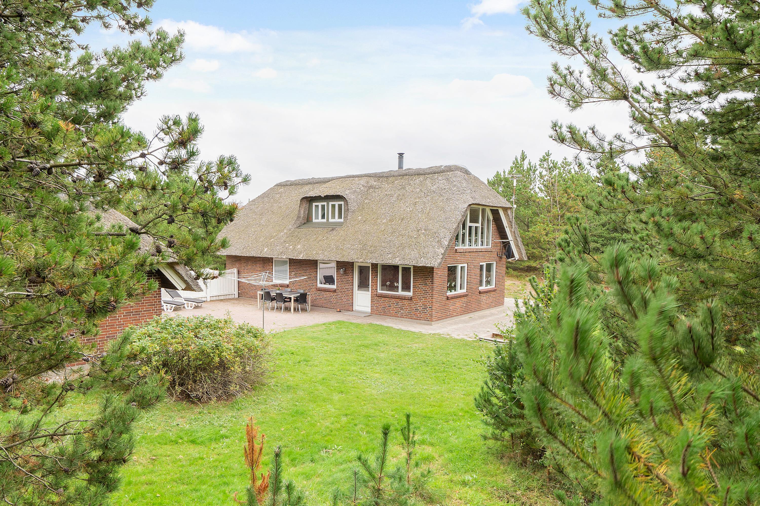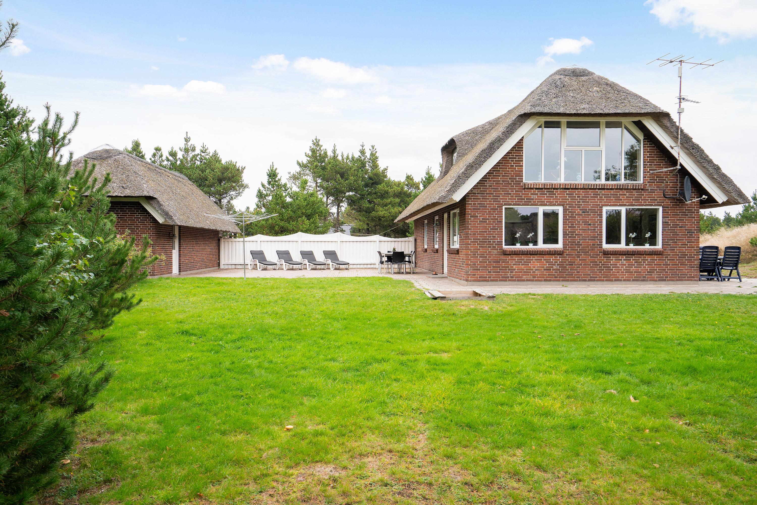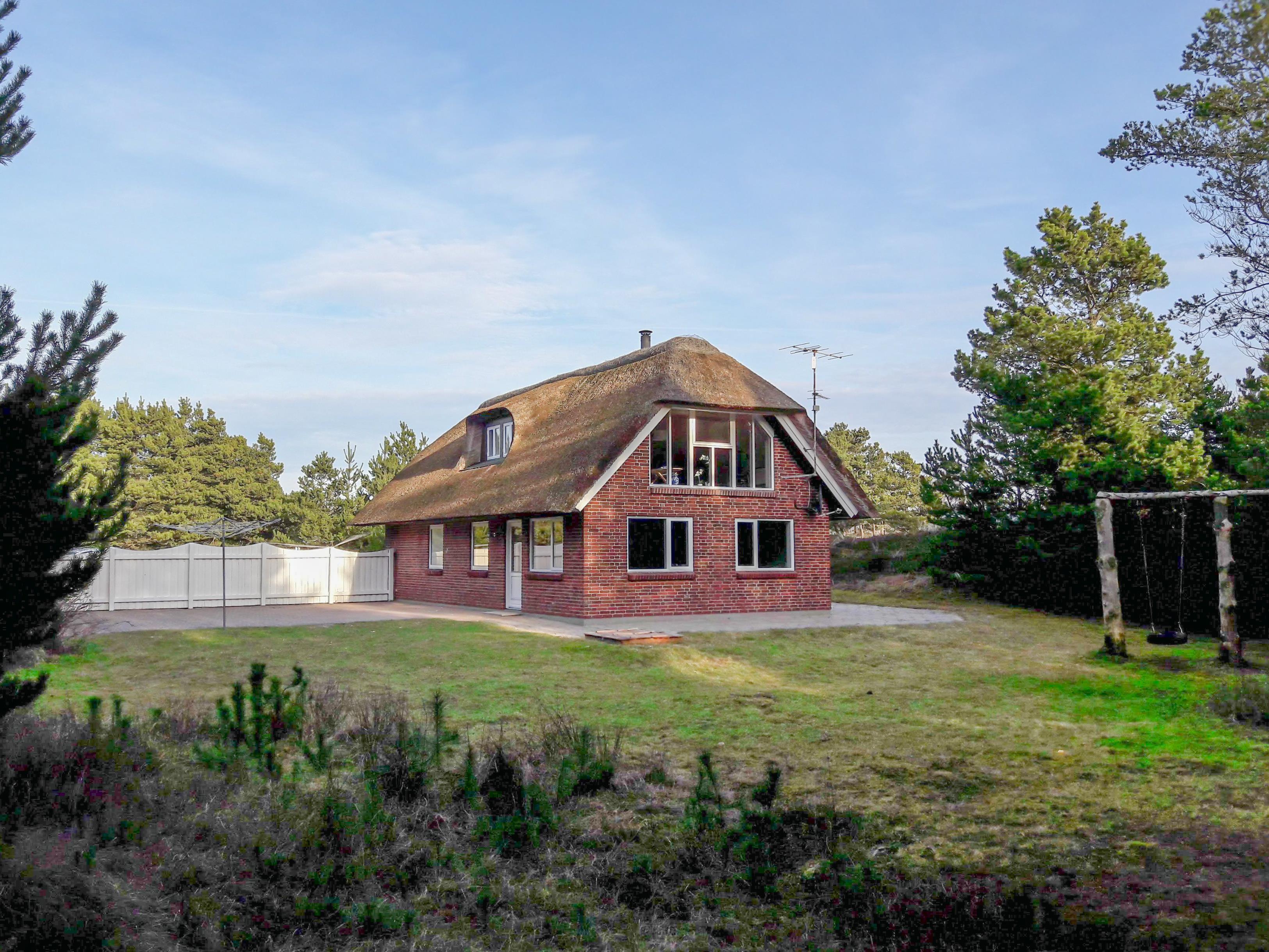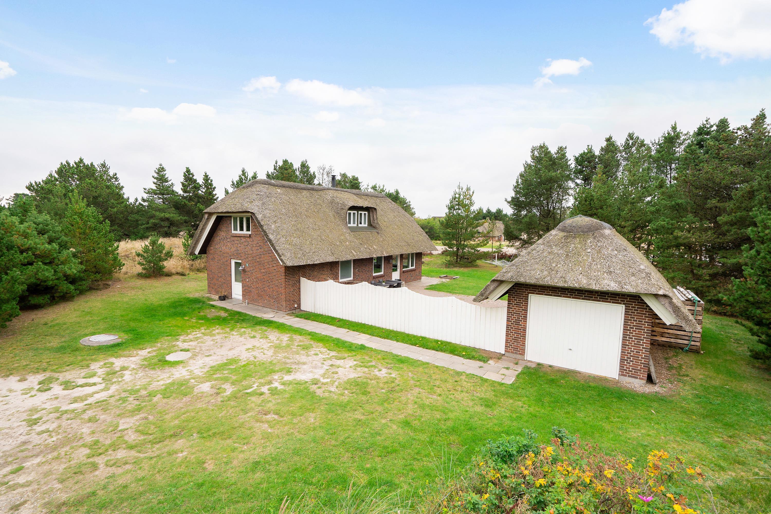 På en stor naturgrund i lukket vænge finder du Karl Postvej 7 omgivet af høje træer. Ferieboligen er den perfekt ramme om en dejlig familieferie, men også hvis man ønsker at rejse to familier sammen, er her både en soveafdeling på 1. sal og i stueplan. Med både bad og gæste-wc, praktiske detaljer som vaskemaskine, tørretumbler og hyggeelementer som sauna, spa og brændeovn er sommerhuset i Blåvand perfekt til ferien med op til 8 personer.