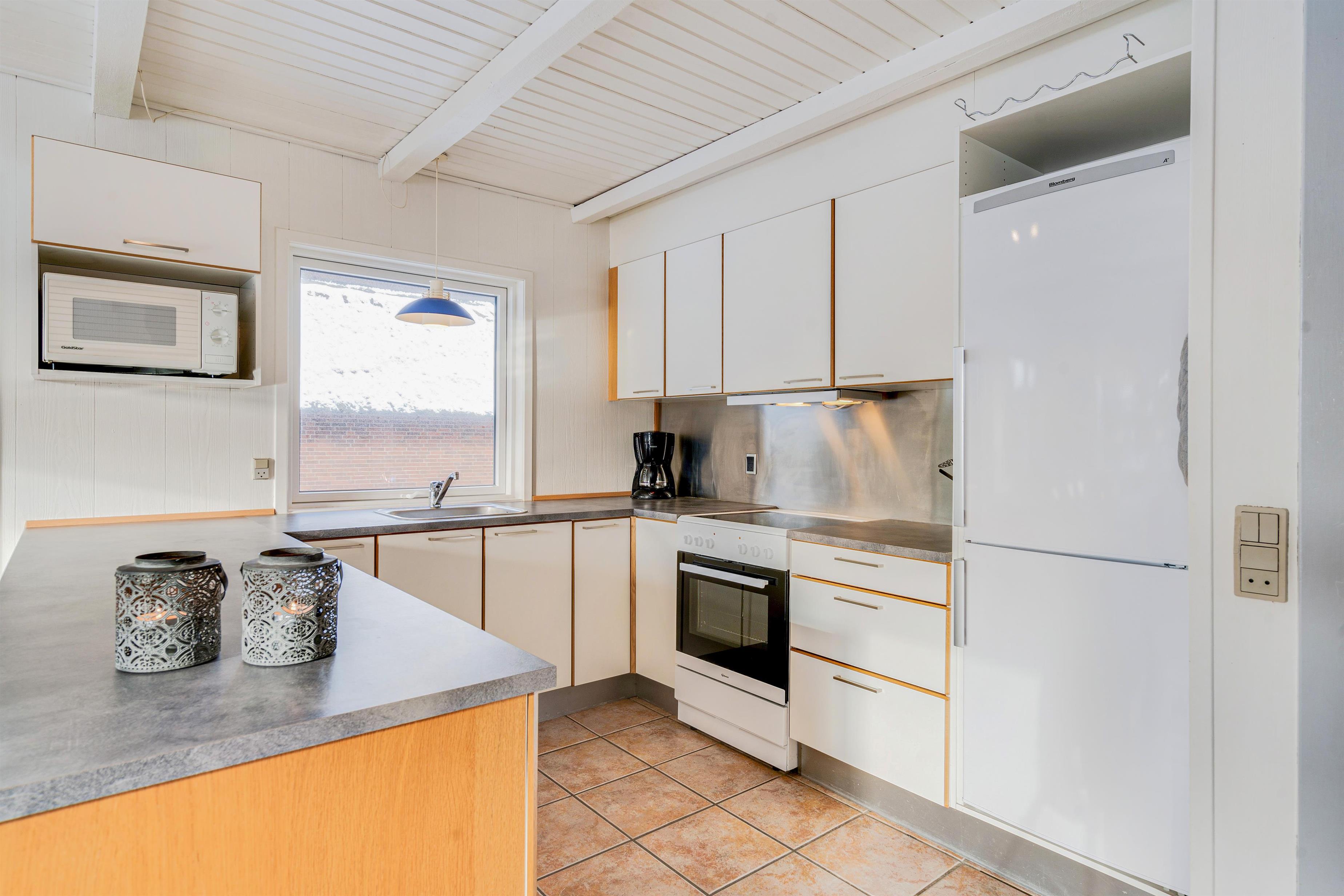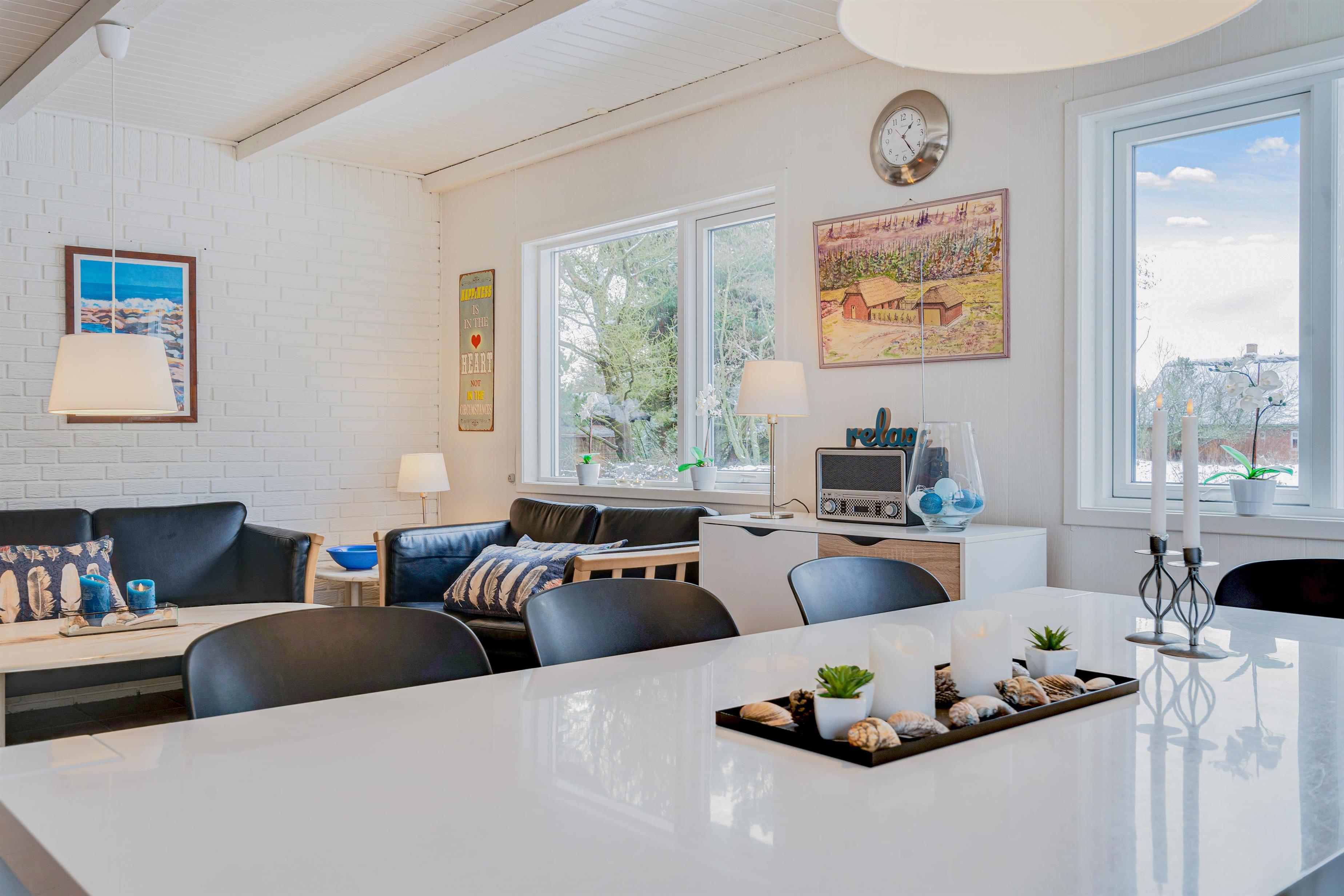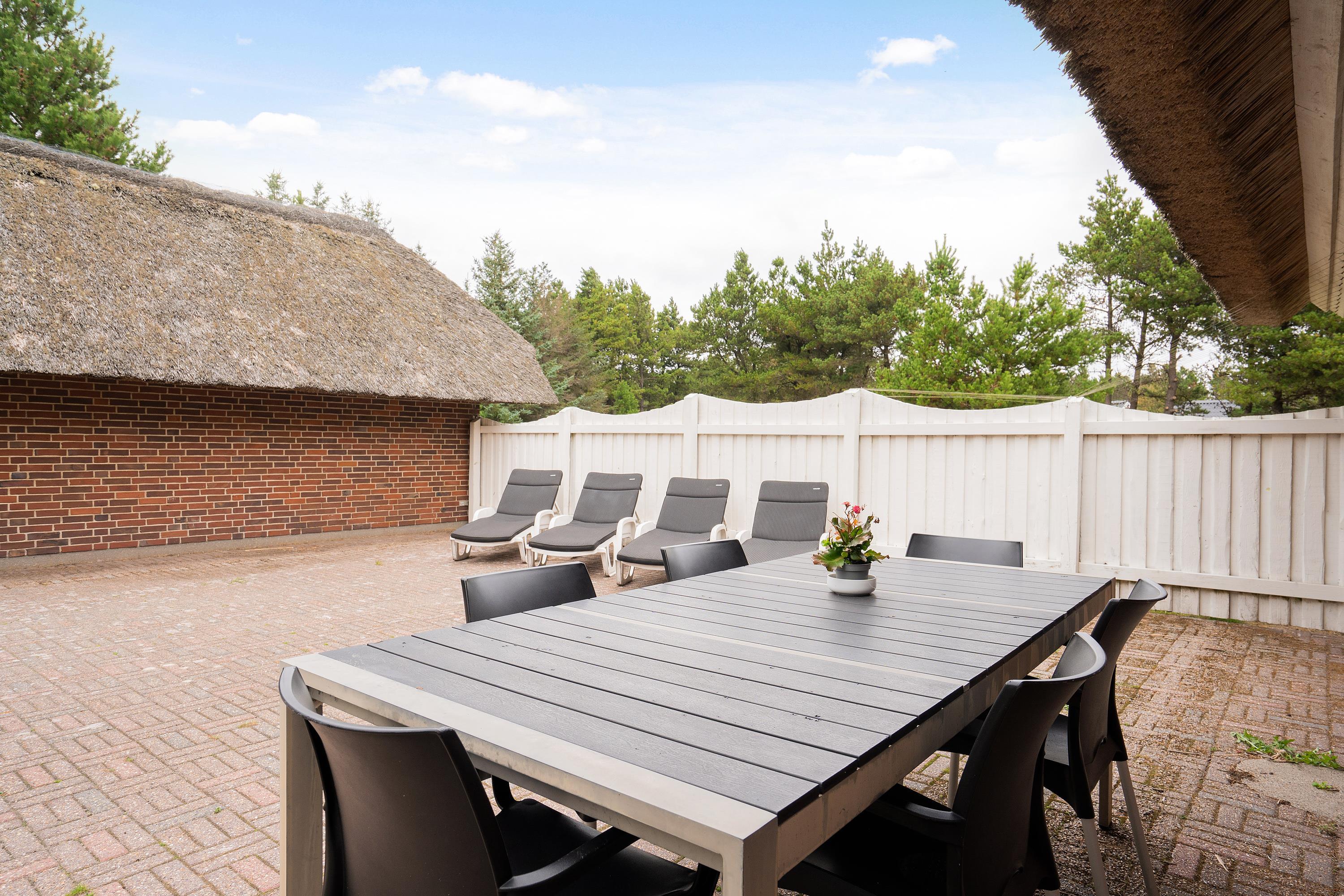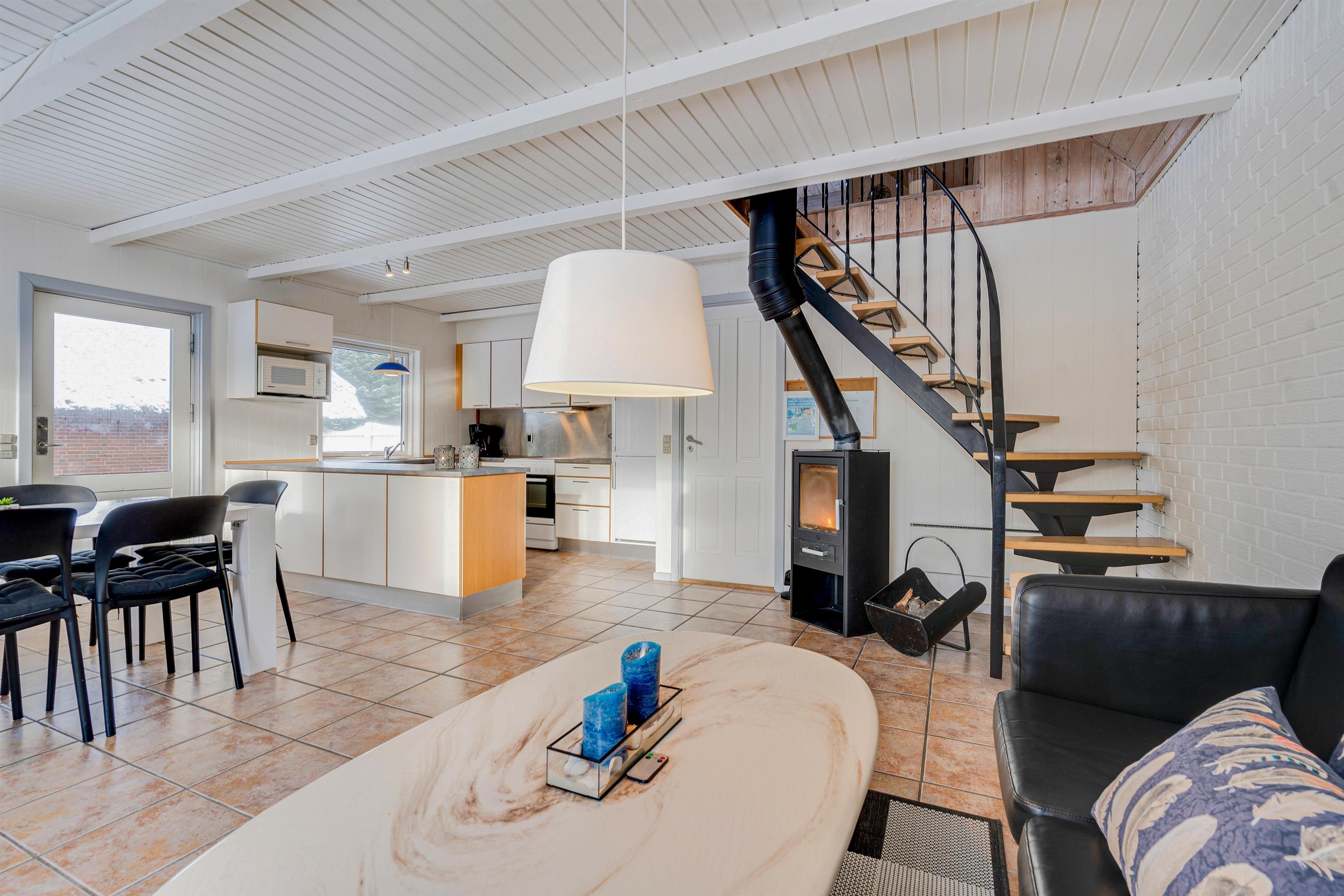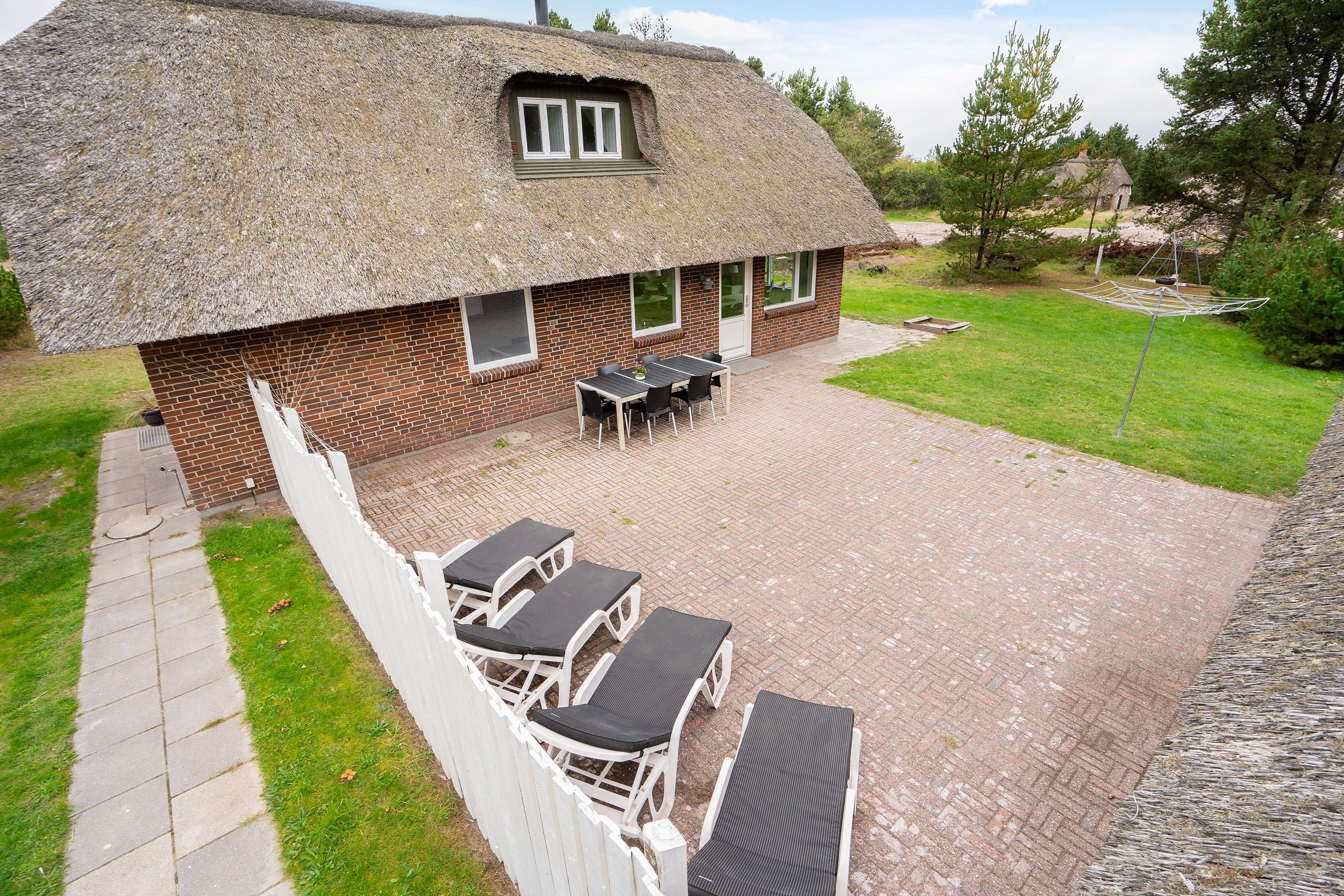 Det veludstyrede køkken er i åben forbindelse til spisestuen, hvor der også er en dør direkte ud til den store sydvendte terrasse. Her er rig mulighed for at alle kan hjælpe til med dages måltider, om det er på grill eller komfur de tilberedes. Sandkasse og gynger står klar på den store grund, som ligger rundt om sommerhuset. Her er der god mulighed for leg både for børn, voksne og hund, - der er nemlig op til 2 hunde tilladt i huset.
