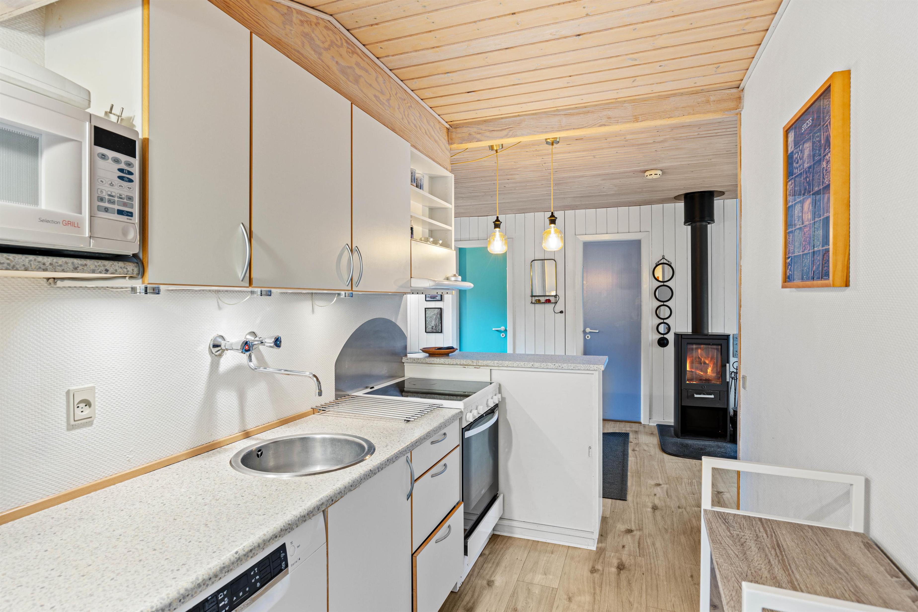 I feriehuset i Blåvand er der tænkt på alt. Tilbring hyggelige aftener ved brændeovnen, som sammen med gulvvarmen på badeværelset og el radiatorerne sikrer en behagelig varme. Moderne bekvemmeligheder som vaskemaskine og opvaskemaskine giver dig mere tid til at nyde ferien og slippe for hverdagens trummerum. Dette 3-stjernede sommerhus er således en traditionel og charmerende ramme for din ferie ved Vesterhavet.