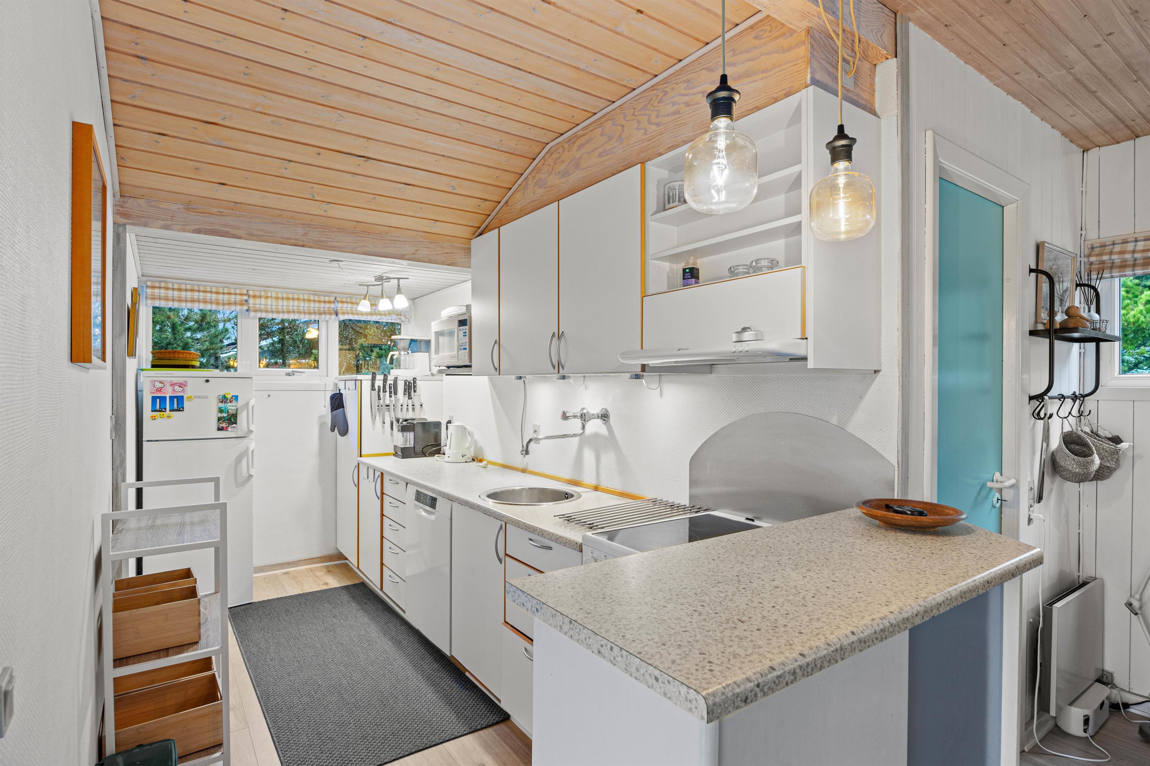Det 1610m2 store naturgrundstykke omkring feriehuset indbyder til at nyde den friske luft og den rolige natur. Kun 750 meter fra huset ligger stranden - ideel til lange gåture eller en forfriskende dukkert. Med indkøbsmuligheder kun 800 meter væk, behøver I ikke at bekymre jer om indkøb. Gør brug af grillen og nyd lækre måltider i det fri under åben himmel.