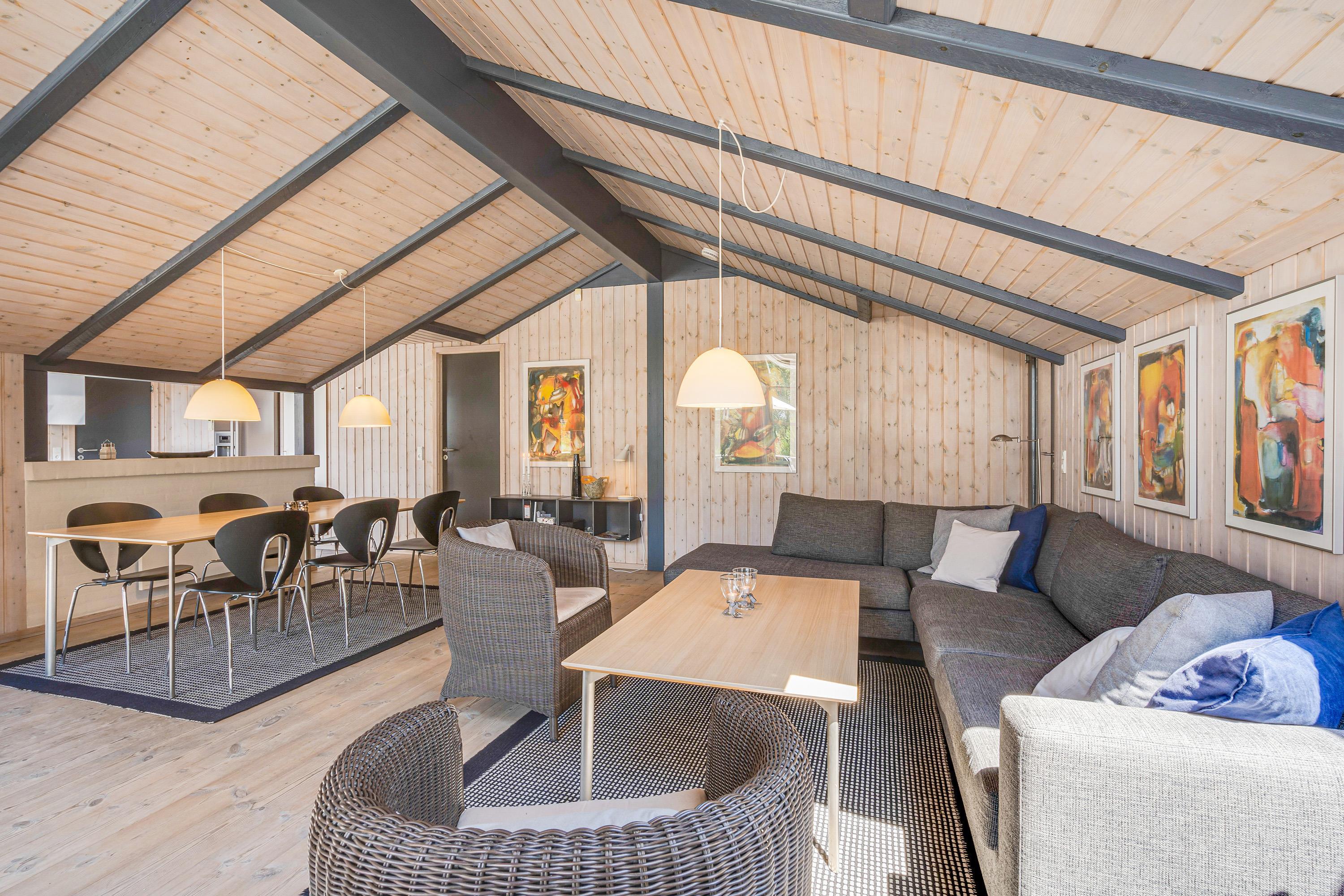 I alrummet, der forener køkken, stue og spisestue, kommer I uden tvivl også til at tilbringe mange hyggelige feriestunder med madlavning, spil og film. Skal der skrues ekstra op for den hyggelige feriestemning, kan I tænde op i brændeovnen, der også sørger for god varme – og ellers sørger varmepumpen for et godt indeklima i feriehuset.