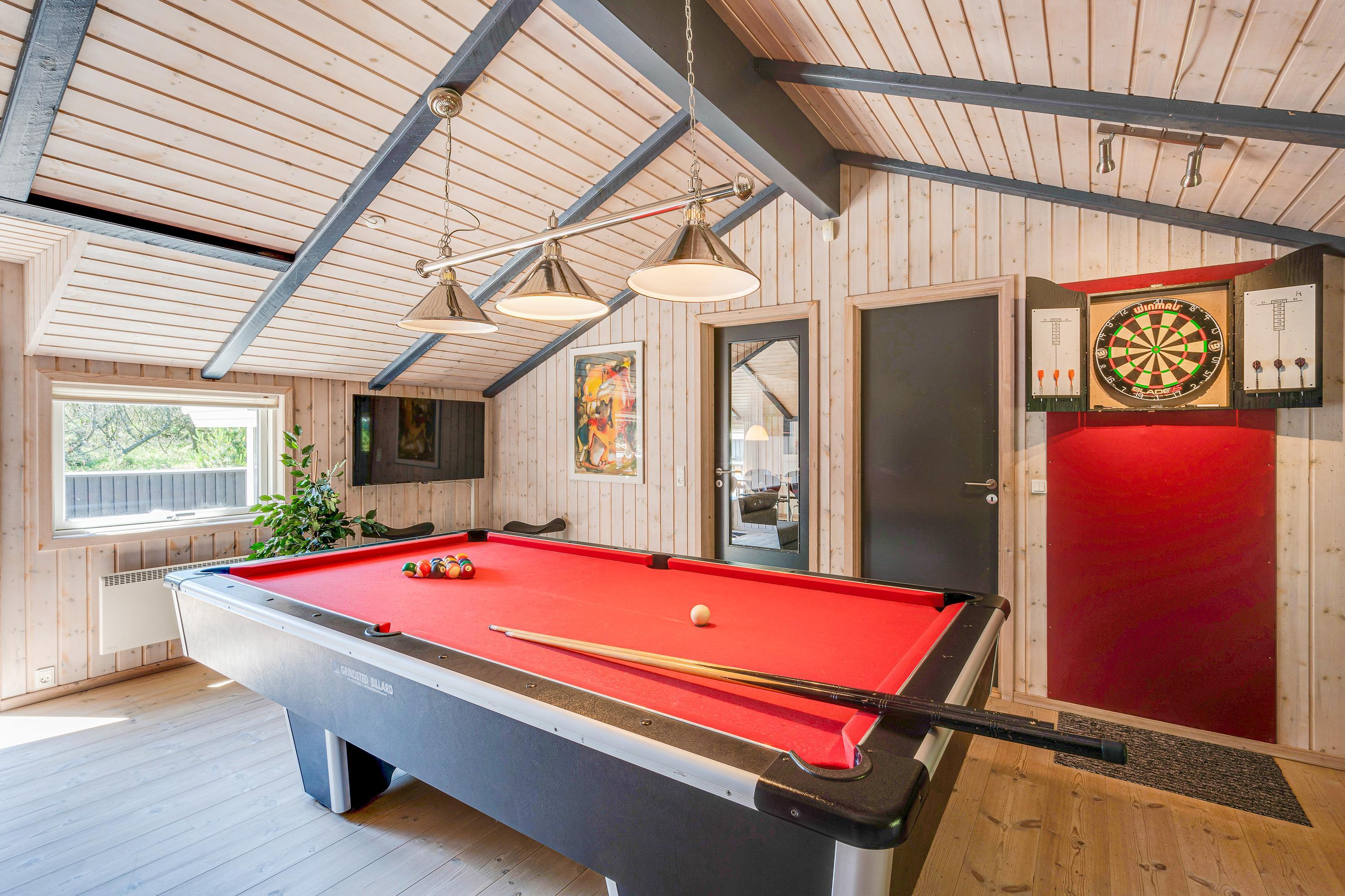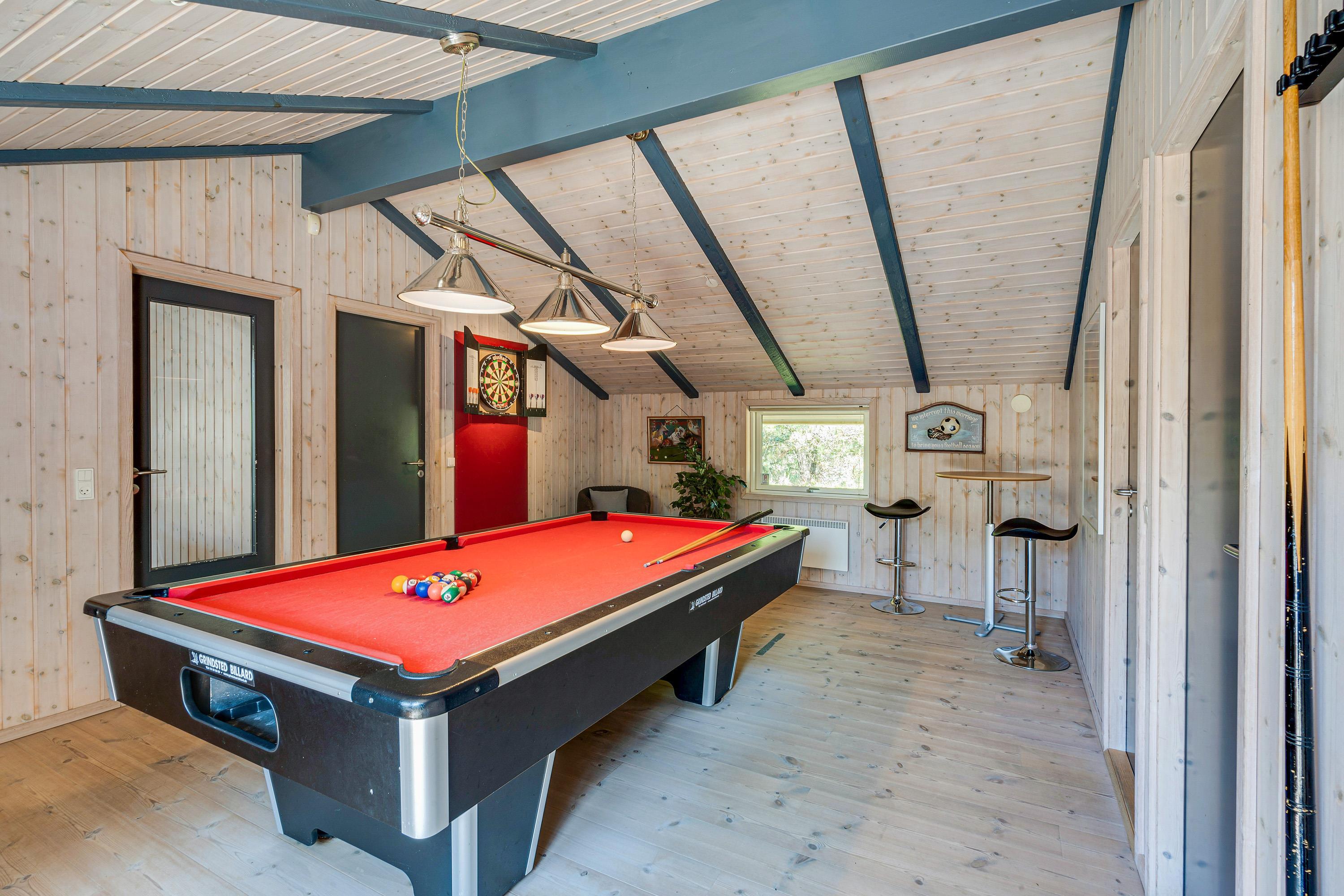 Feriehuset har et aktivitetsrum, hvor I helt sikkert kommer til at tilbringe mange timer sammen på ferien. Her kan I give jer i kast med både billard og dart – og hvorfor ikke arrangere en spilaften med turnering, snacks og kolde drikkevarer?
