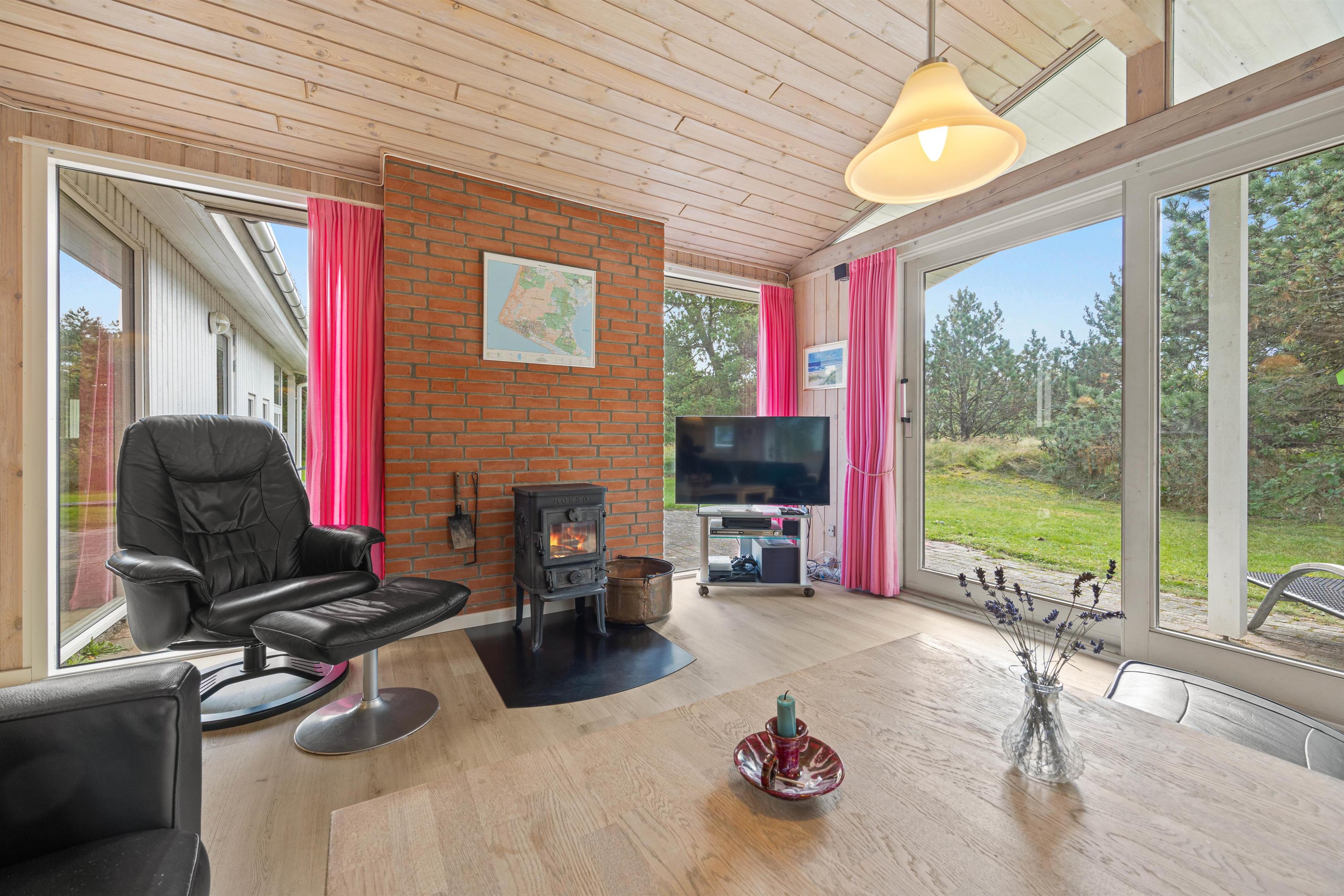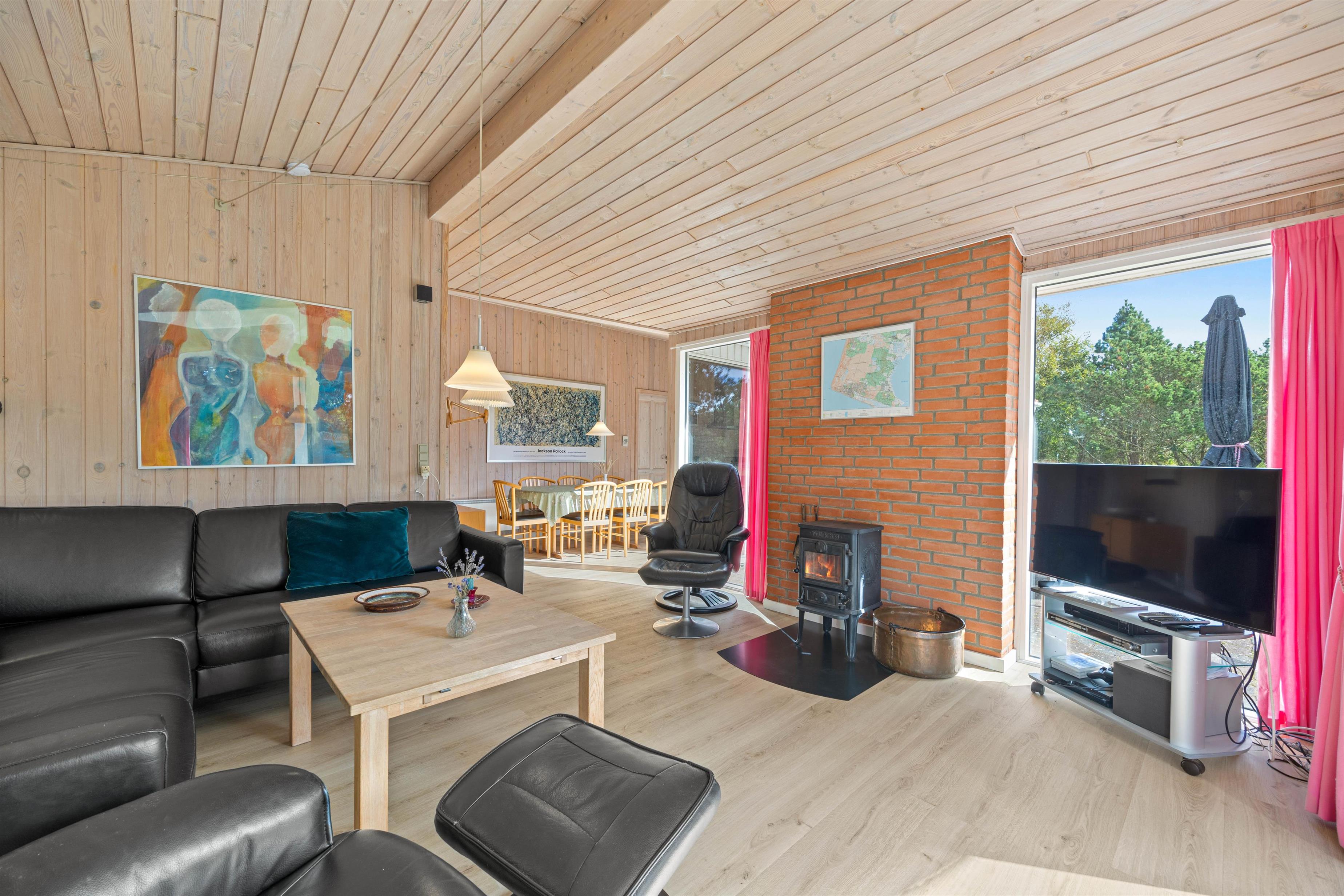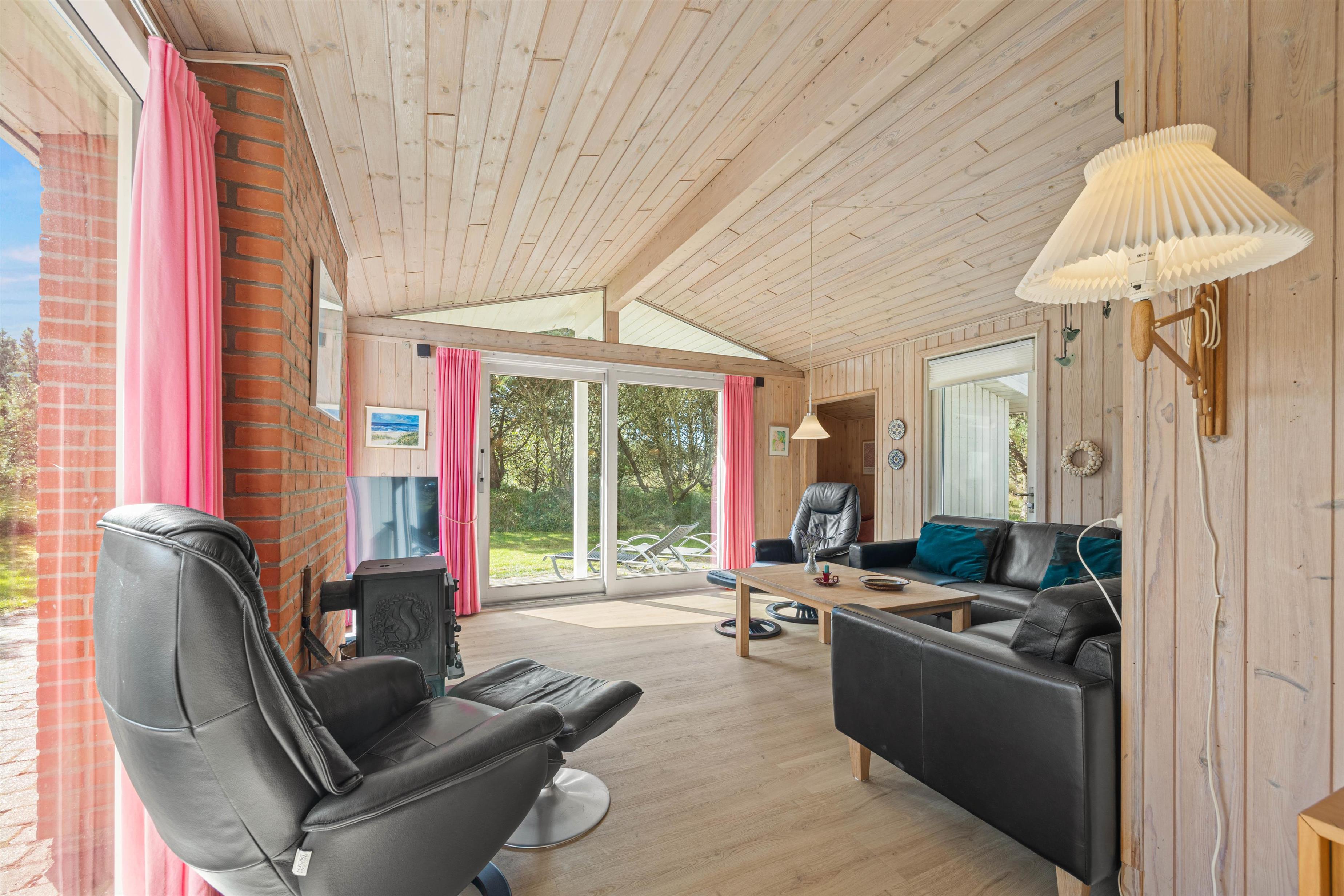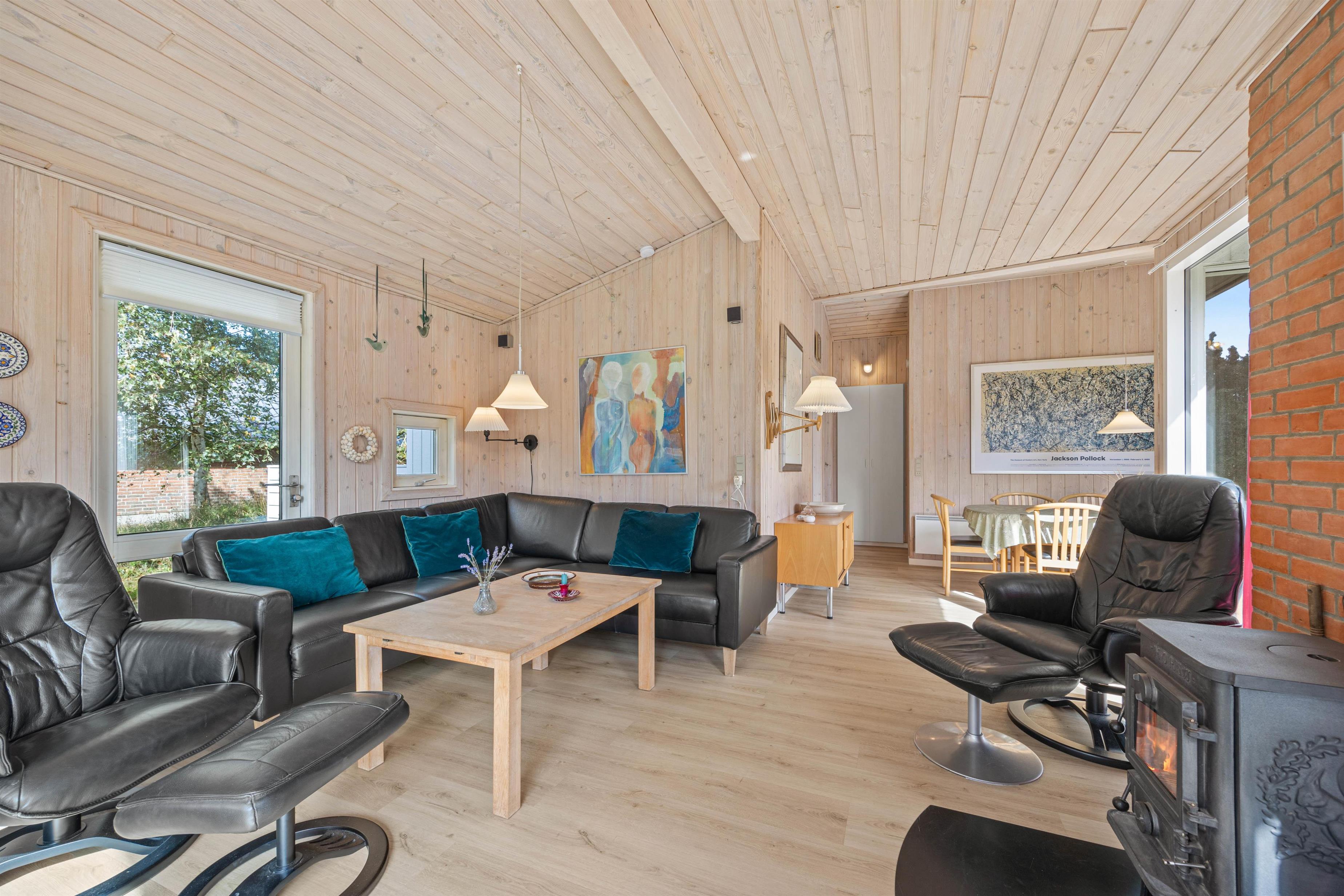 Feriehuset på Hedetoftvej 146 har et boligareal på 105 m2 og hermed god plads til op til 6 gæster. Hjerterummet er det lyse åbne alrum, som binder stue og køkken sammen. Den dejlige køkkenafdeling er renoveret i 2024, og her kan I lave lækker mad eller bage en hurtig kage til eftermiddagskaffen. Køkken har en 70L fryser, induktionskomfur og selvfølgelig opvaskemaskine, der klarer det kedelige arbejde. Imens kan I sætte jer til rette i sofaarrangementet. Her kan I spille brætspil, holde filmaften, sidde med strikketøjet eller læse en god bog i den fine alkove. Tænd op i brændeovnen for at gøre det ekstra hyggeligt!