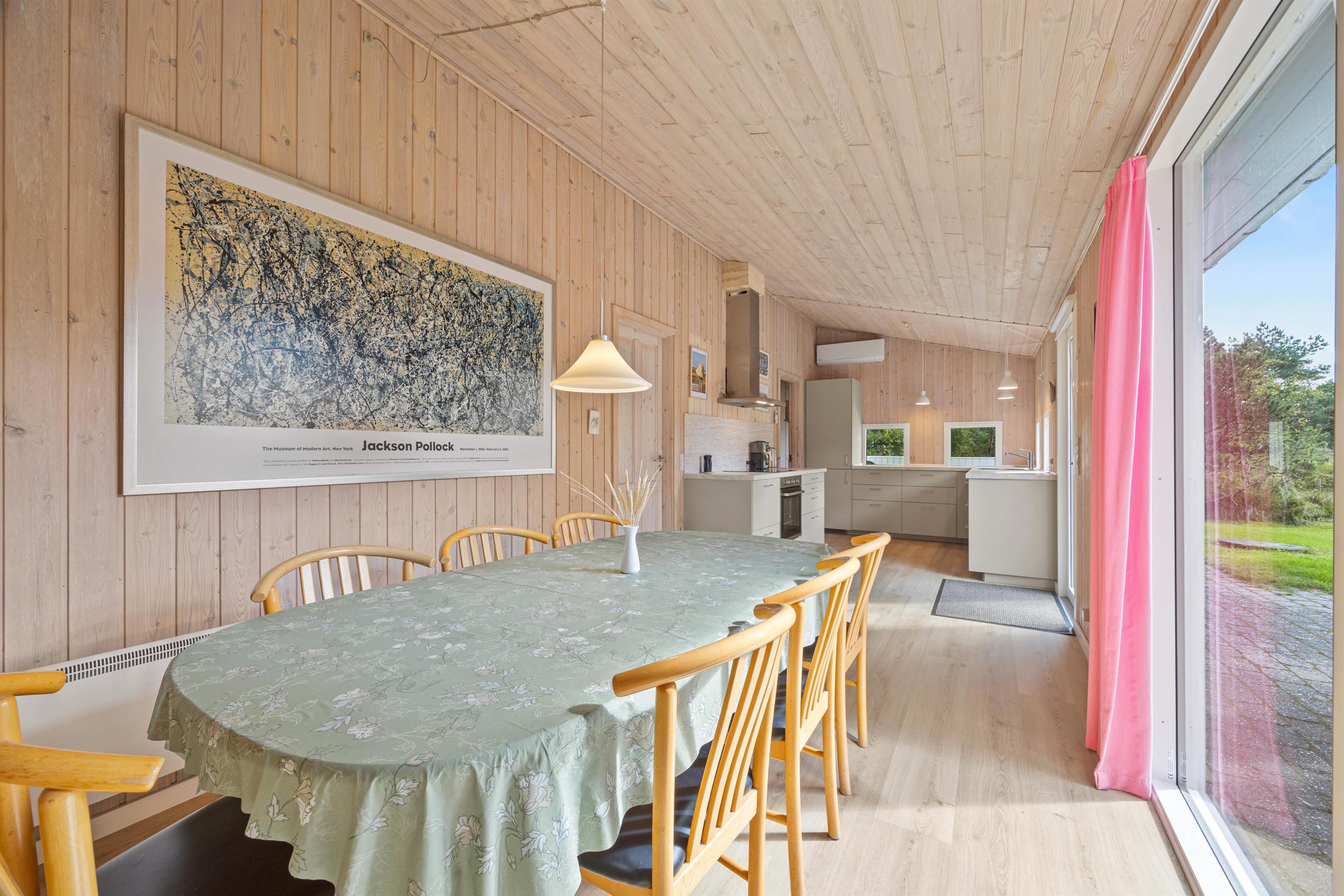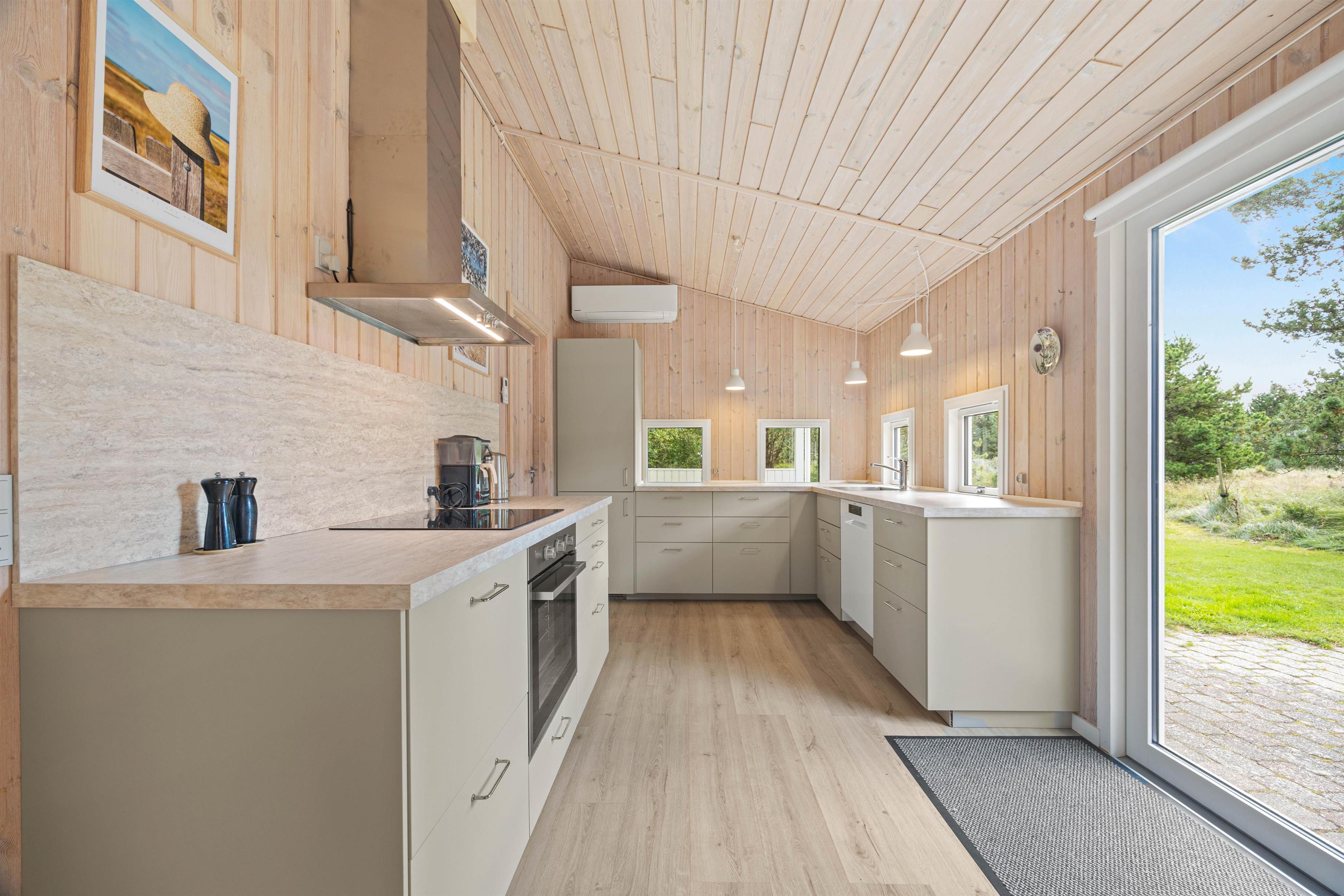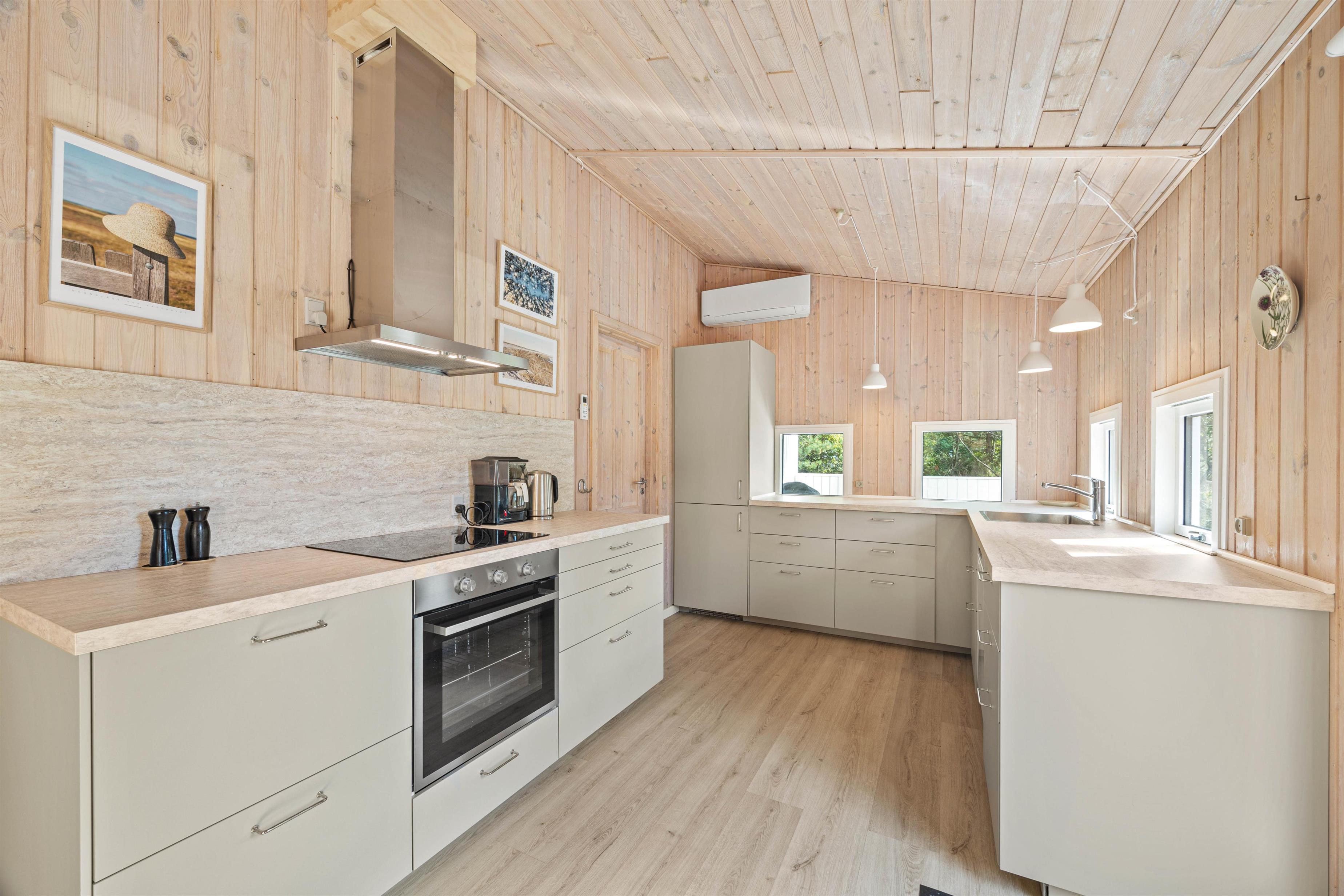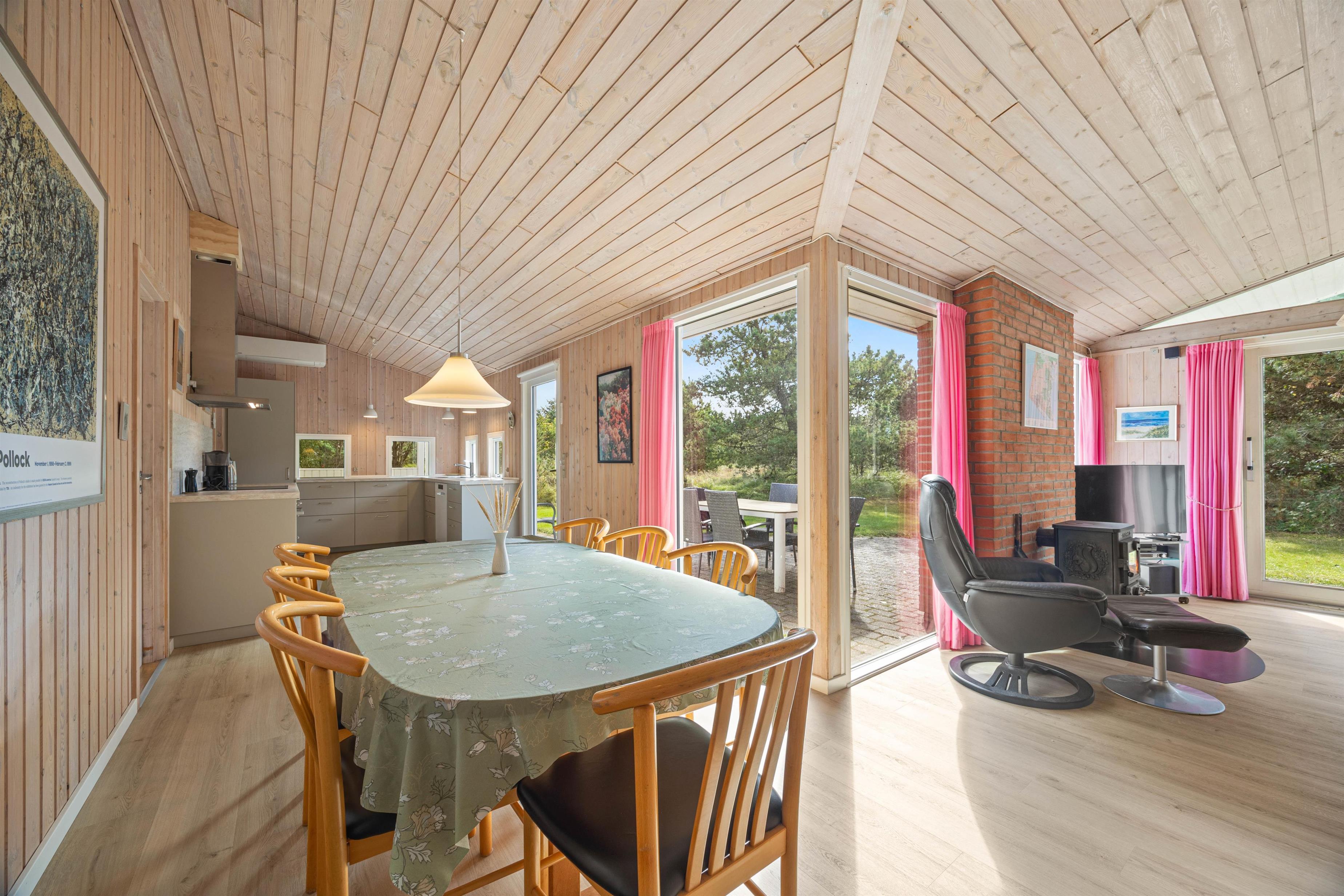 Feriehuset på Hedetoftvej 146 har et boligareal på 105 m2 og hermed god plads til op til 6 gæster. Hjerterummet er det lyse åbne alrum, som binder stue og køkken sammen. Den dejlige køkkenafdeling er renoveret i 2024, og her kan I lave lækker mad eller bage en hurtig kage til eftermiddagskaffen. Køkken har en 70L fryser, induktionskomfur og selvfølgelig opvaskemaskine, der klarer det kedelige arbejde. Imens kan I sætte jer til rette i sofaarrangementet. Her kan I spille brætspil, holde filmaften, sidde med strikketøjet eller læse en god bog i den fine alkove. Tænd op i brændeovnen for at gøre det ekstra hyggeligt!