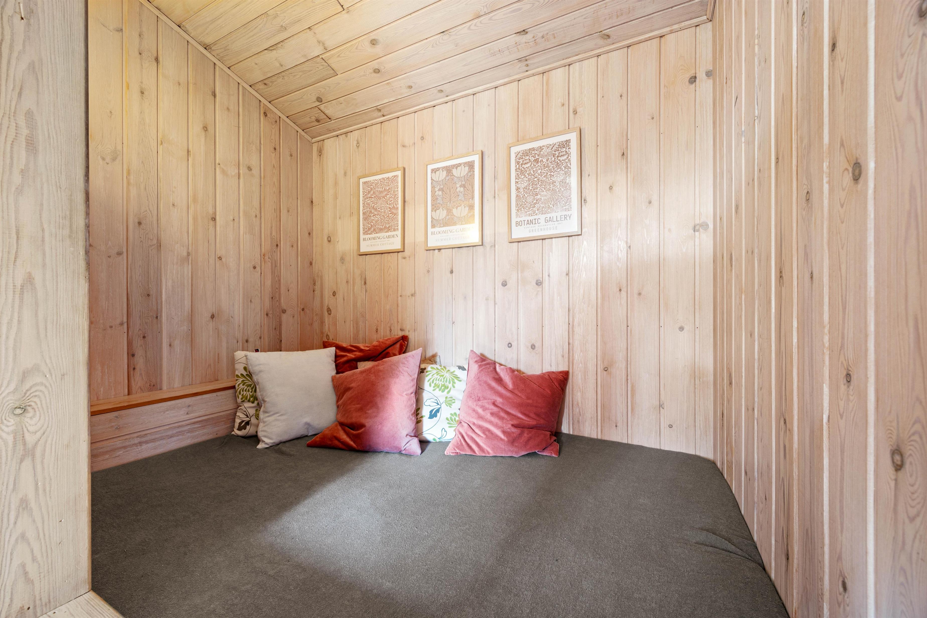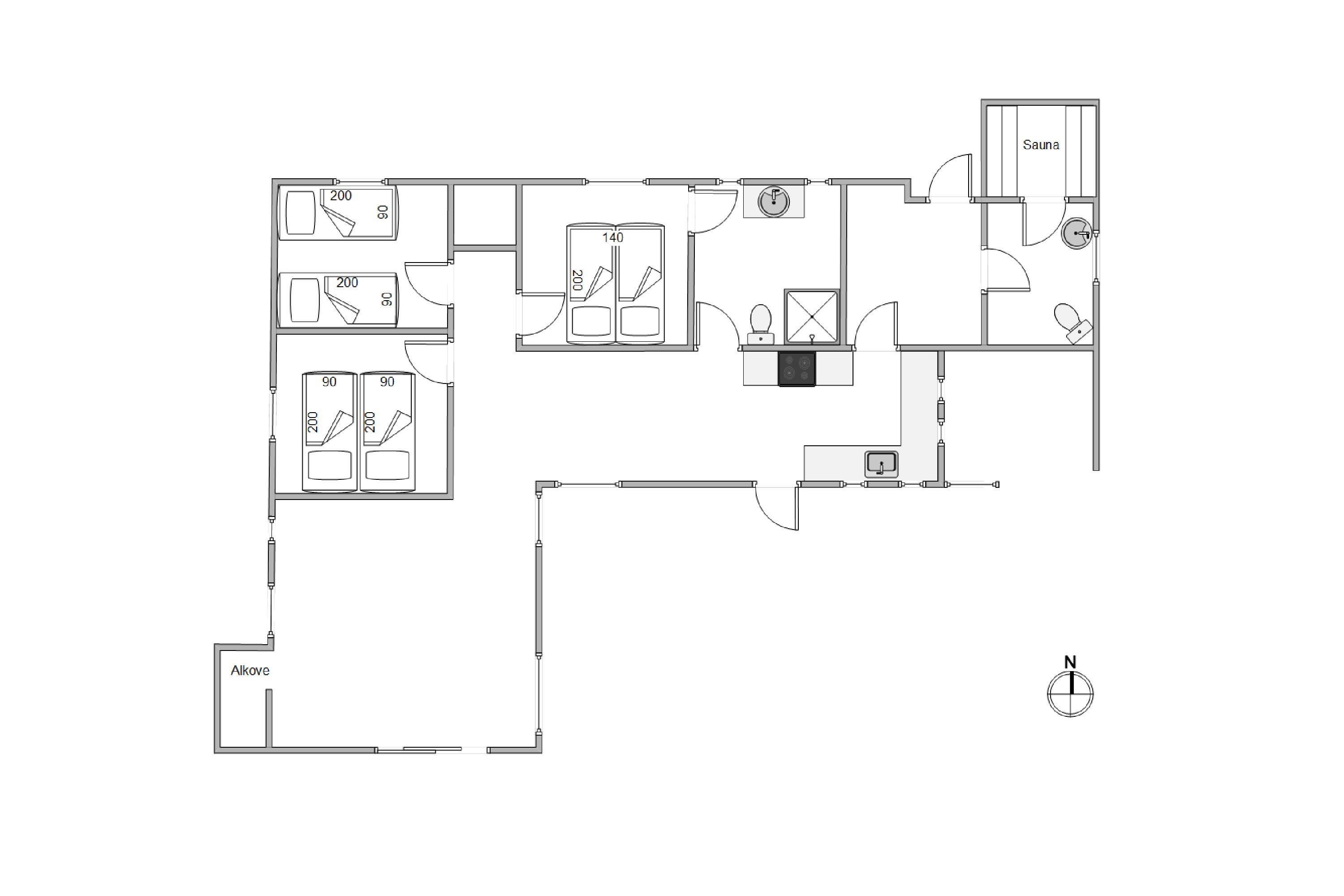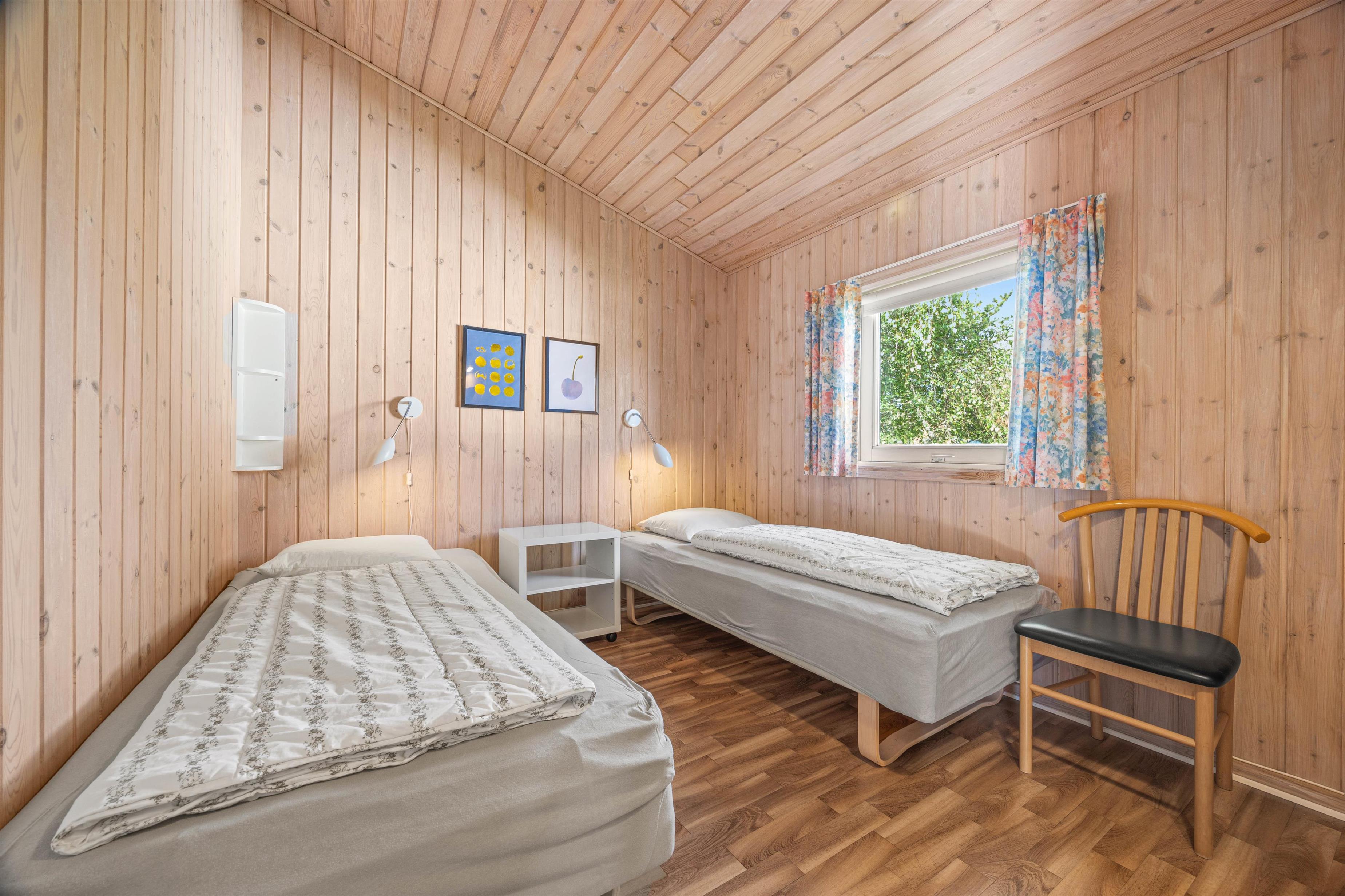 Skal I koble helt af, finder I på det ene badeværelse feriehusets sauna. Bliv varmet godt igennem – helt perfekt efter en lang gåtur langs vandet. Når timerne bliver sene, kan I fordele jer rundt på de 3 soveværelser. 2 værelser er indrettet med dobbeltsenge, mens det sidste har en seng, 140x190.
