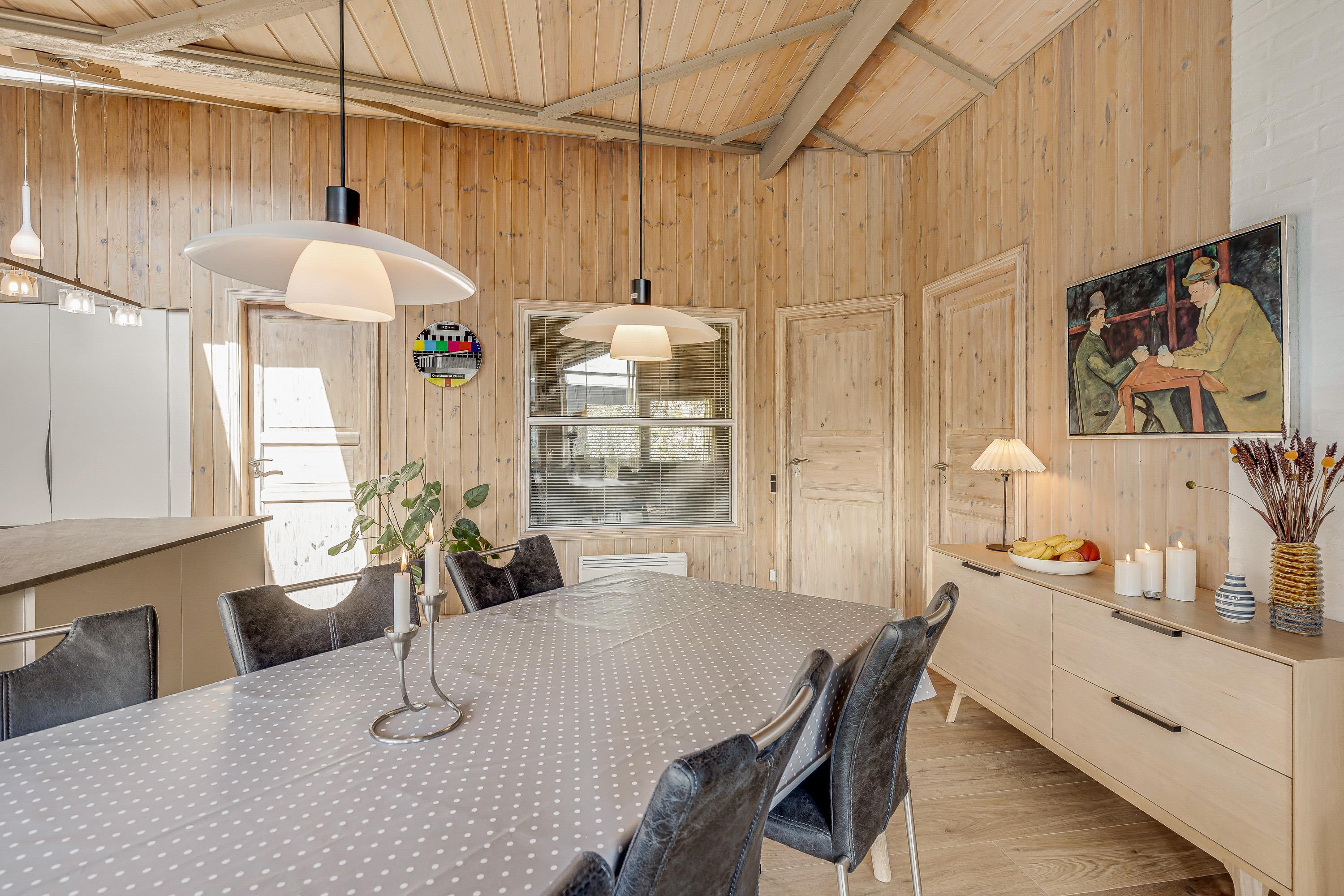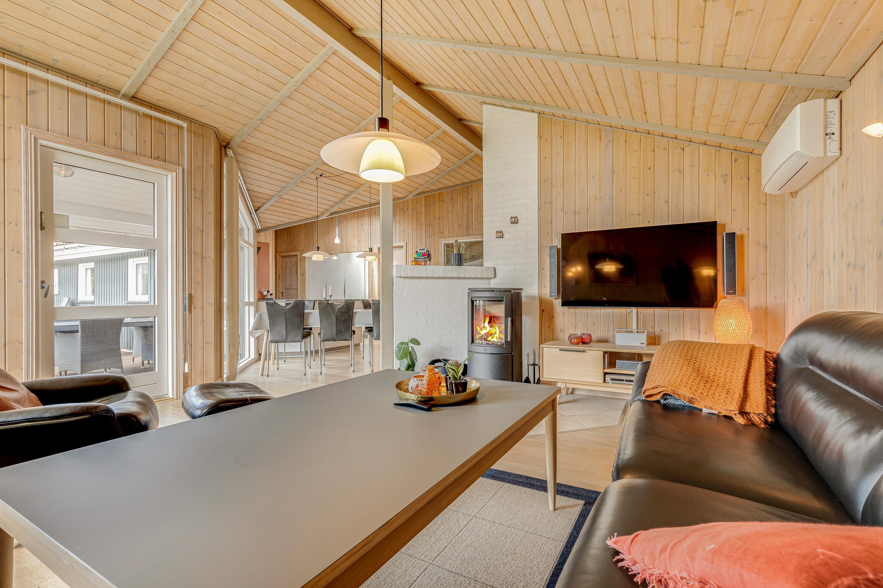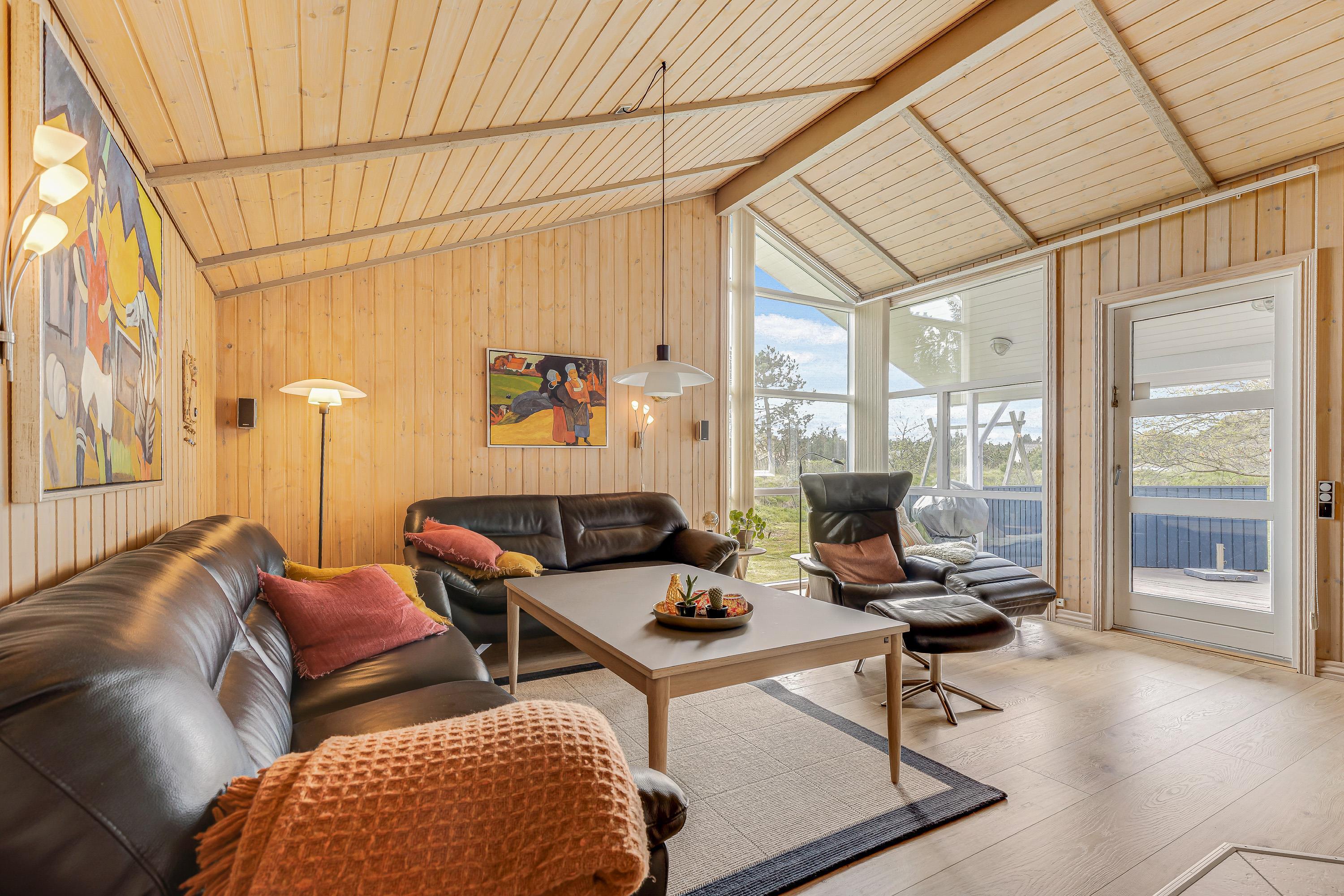Det 125 kvadratmeter store sommerhus er et oplagt valg til den næste familieferie. Varme træfarver og nøje udvalgte dekorationer vil byde jer velkommen, og omgivelserne er åbne og lyse med store vinduer, der inviterer solen og den grønne natur indenfor.