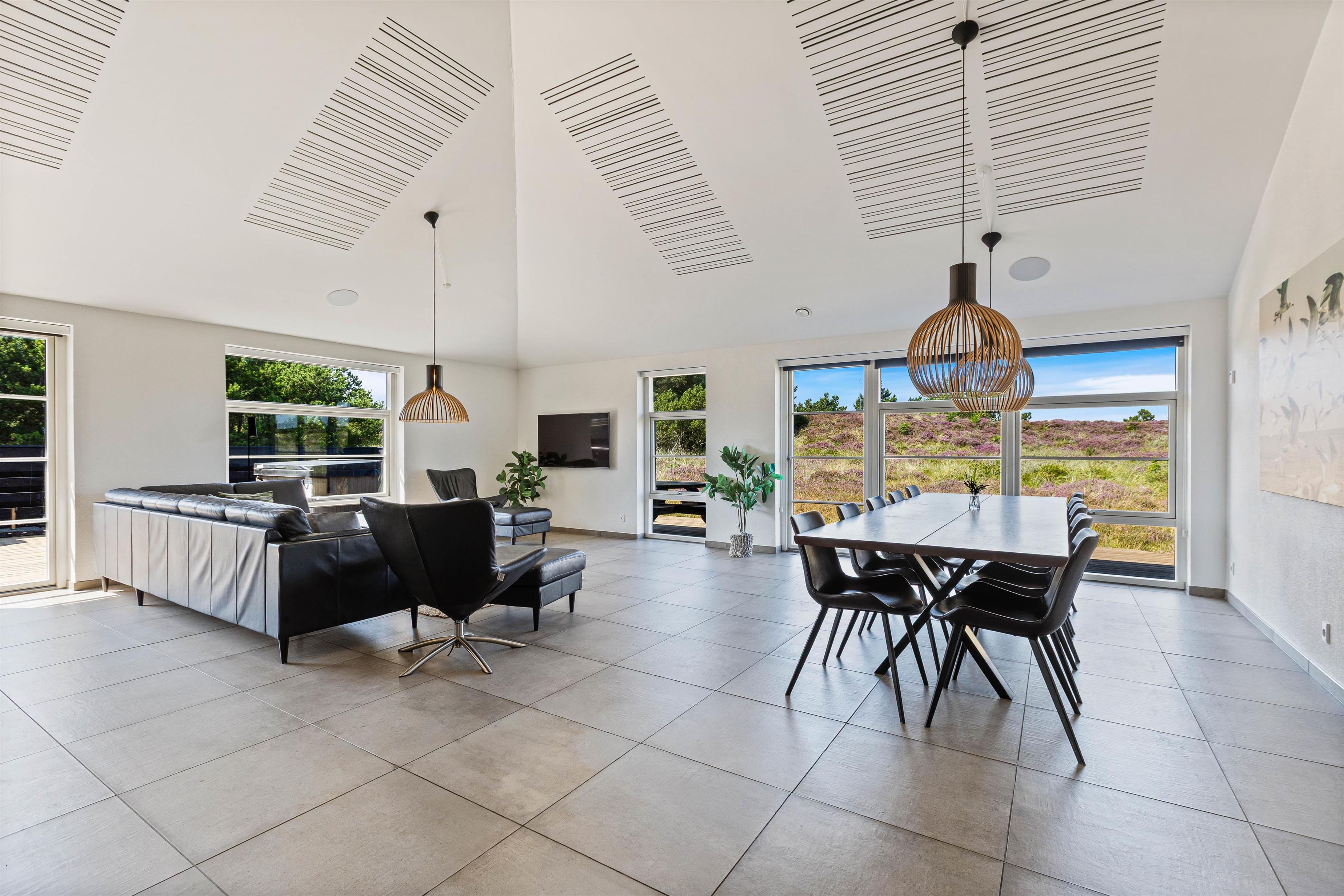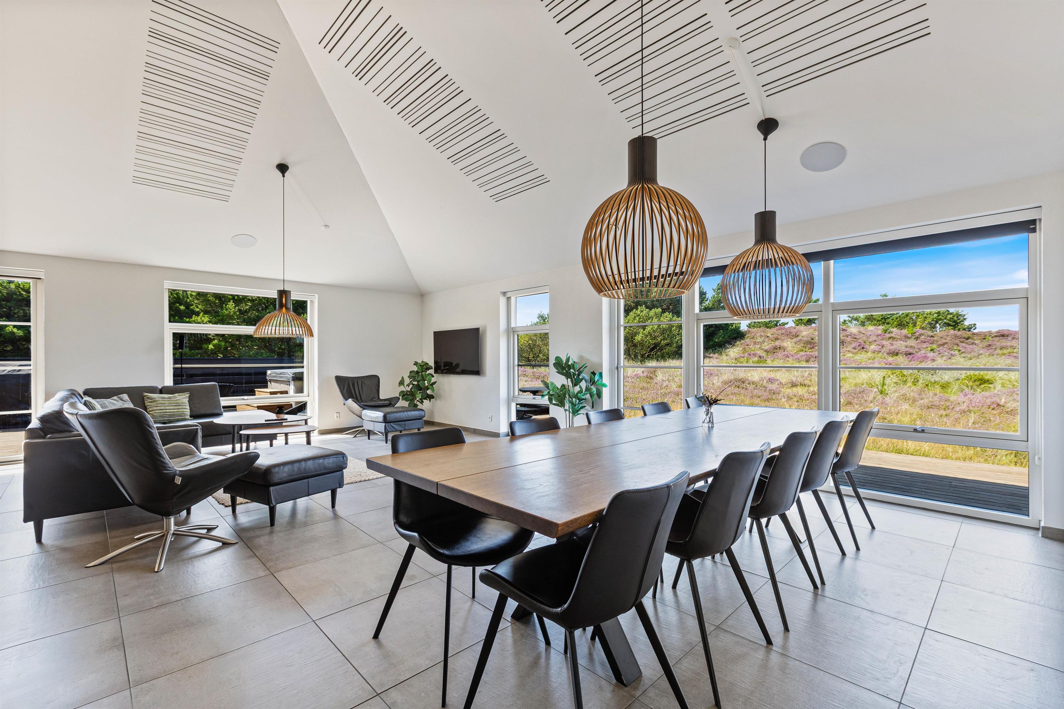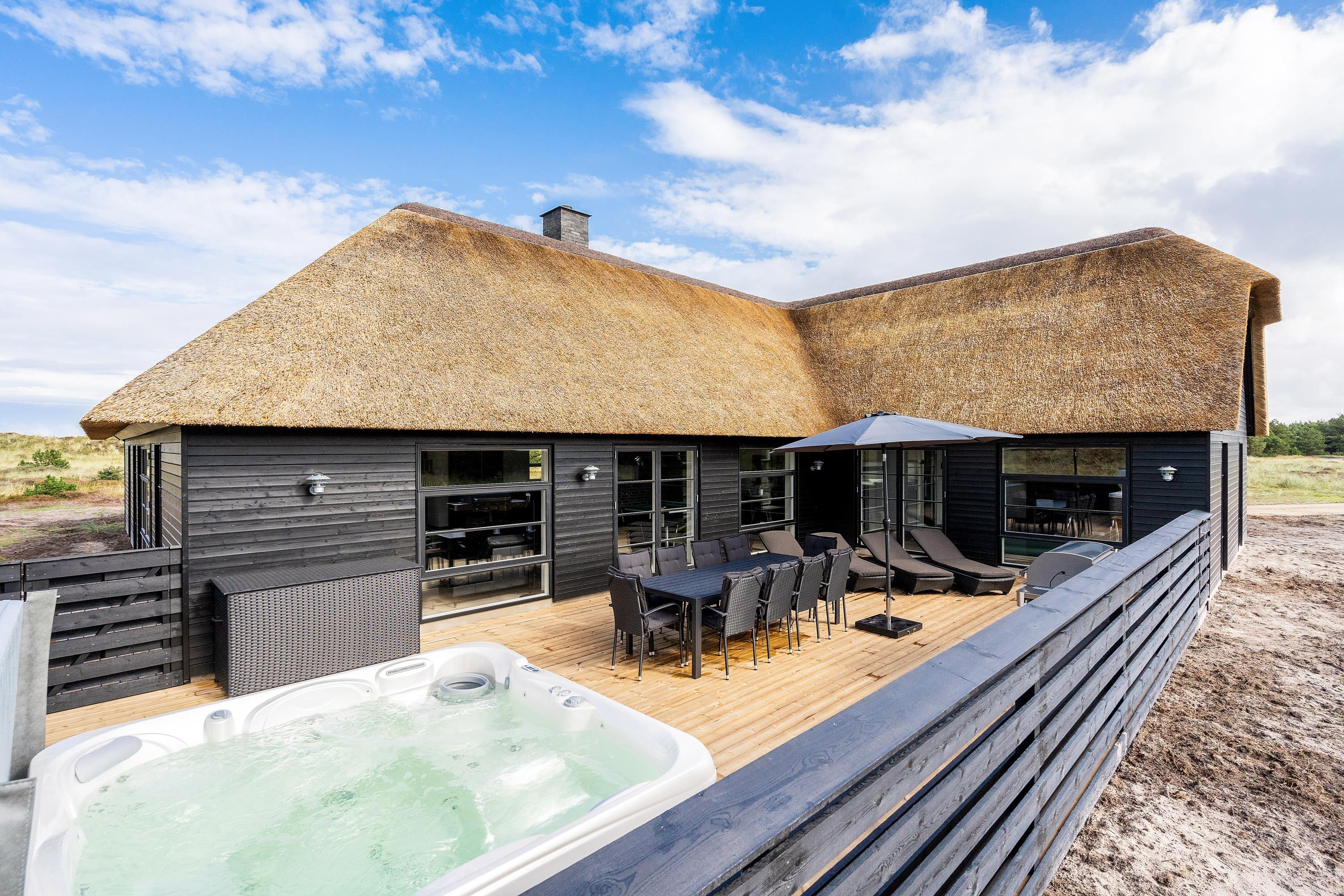 På Vestslugen 8 finder I alt, hvad feriehjertet begærer. Sommerhuset har ikke kun god plads til 10 personer og 1 hund, men er også udstyret med swimmingpool og wellness - og så er der kun 500 meter til stranden. Dette nybyggede (2019) luksushus er et sandt ferieparadis, som ligger frit på et stort fredet lyngareal med langt til naboerne og stadig tæt på by og strand.