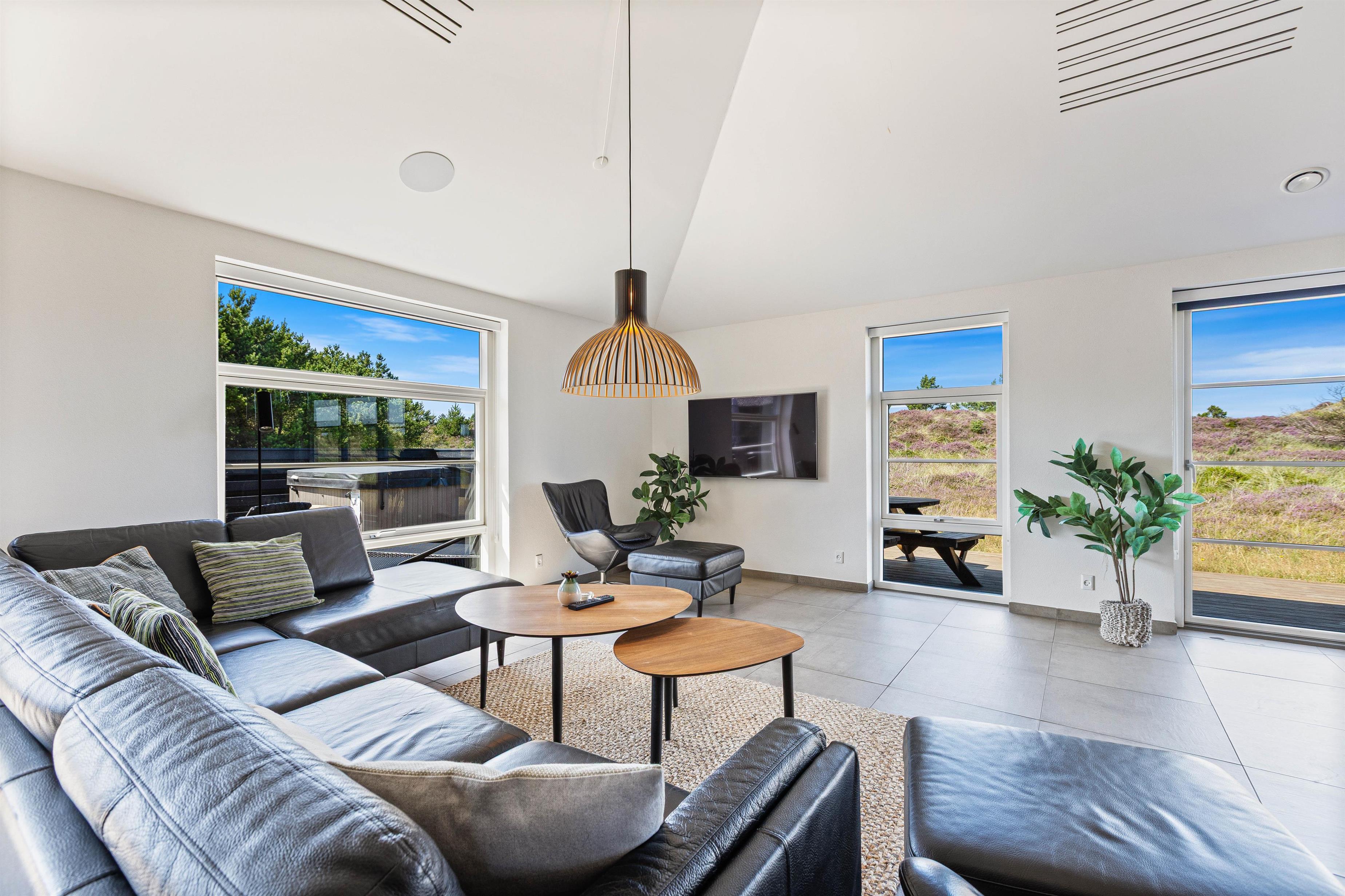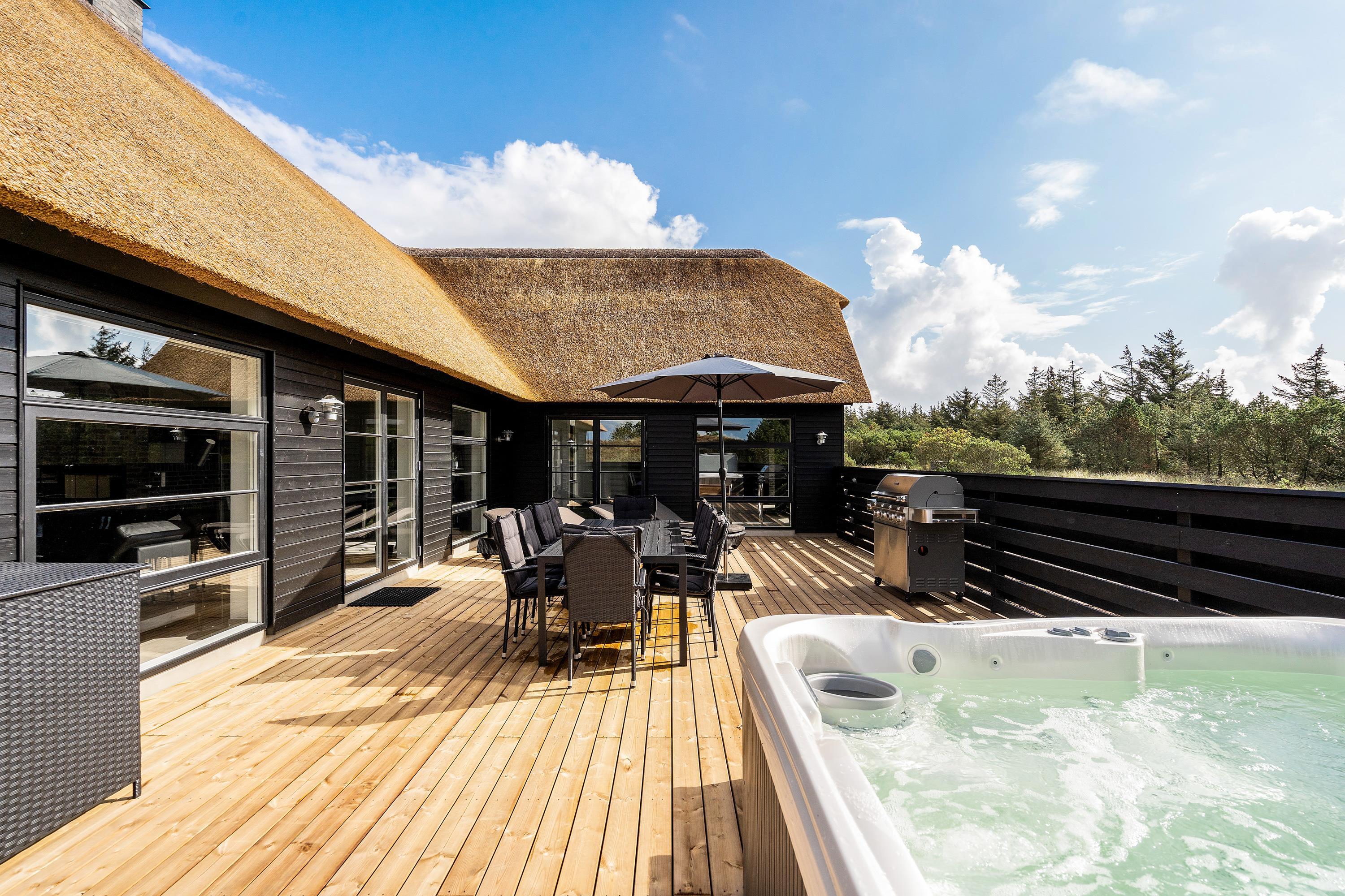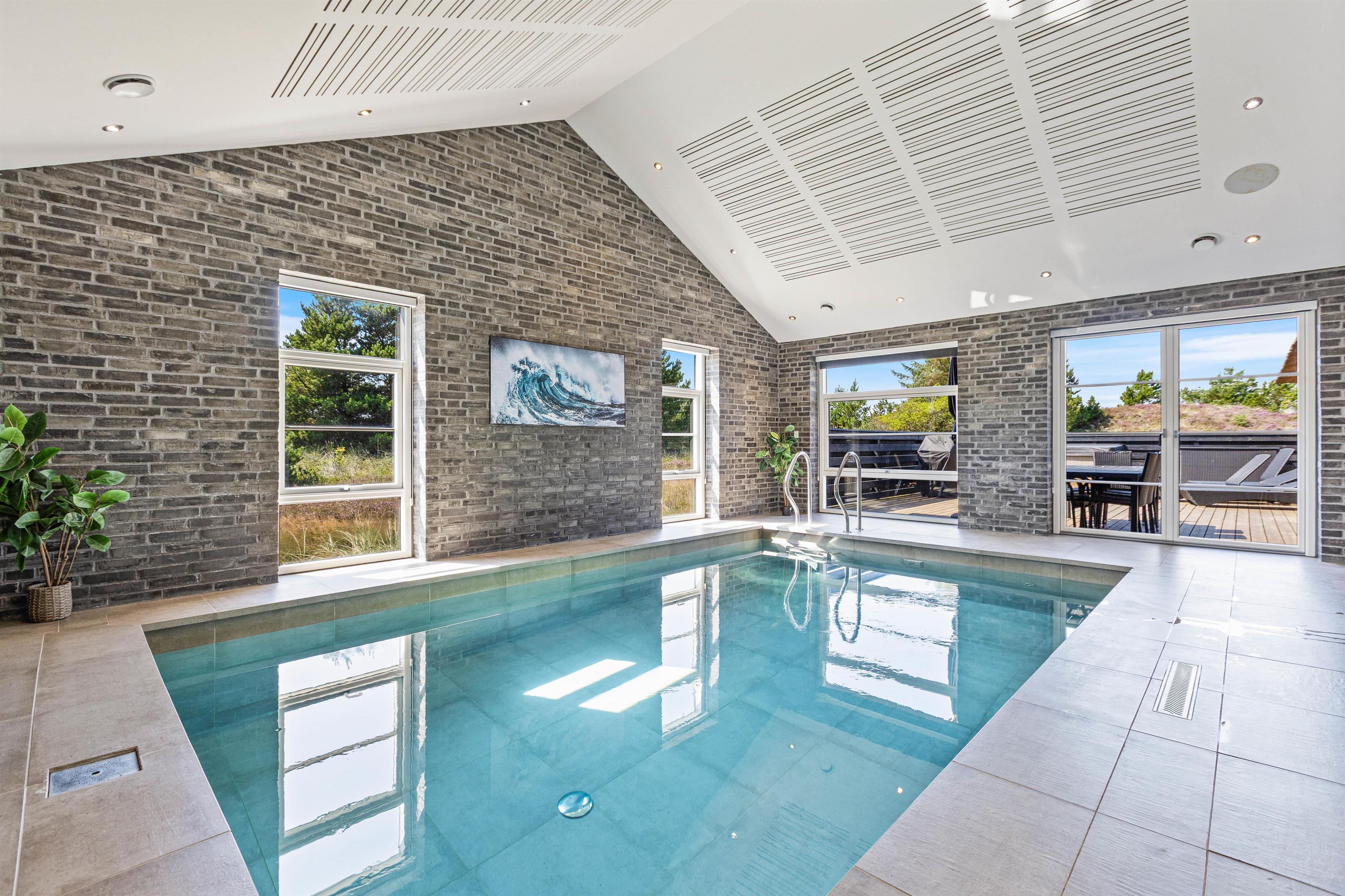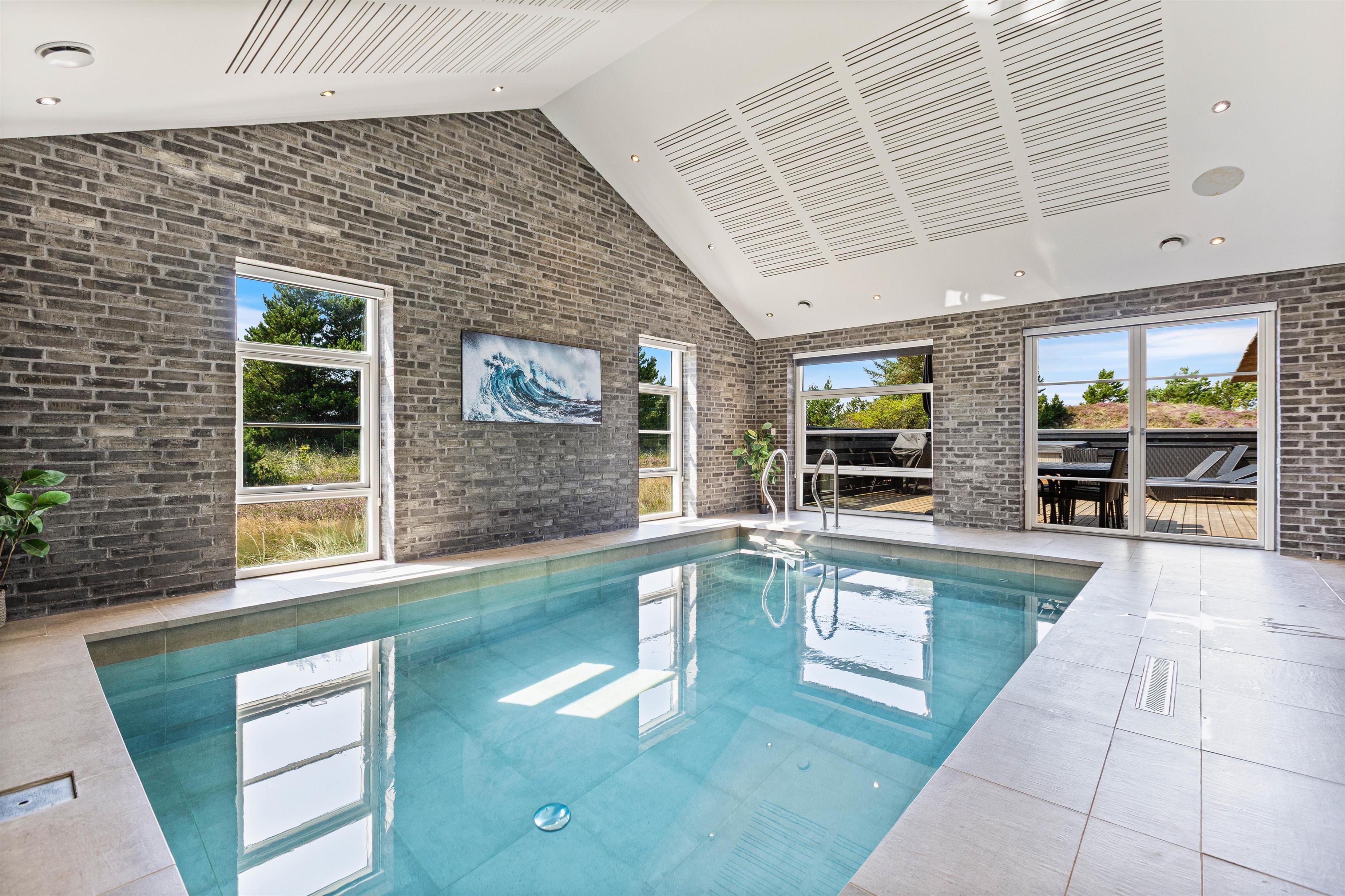 På Vestslugen 8 finder I alt, hvad feriehjertet begærer. Sommerhuset har ikke kun god plads til 10 personer og 1 hund, men er også udstyret med swimmingpool og wellness - og så er der kun 500 meter til stranden. Dette nybyggede (2019) luksushus er et sandt ferieparadis, som ligger frit på et stort fredet lyngareal med langt til naboerne og stadig tæt på by og strand.