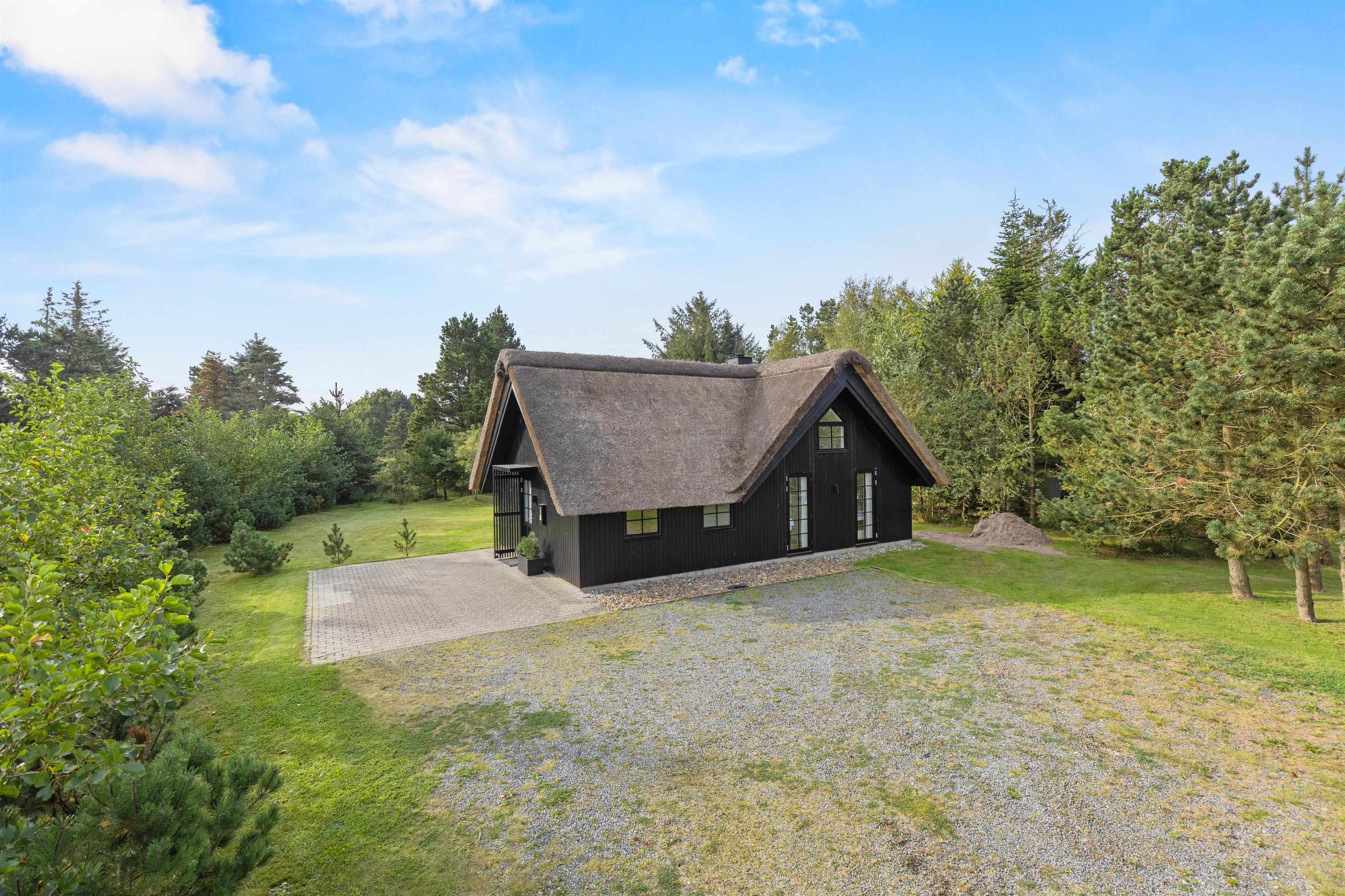 På Hestehaven 8 ligger dette skønne stråtækte feriehus på 81 m2 og venter på op til 6 personer, der ønsker at holde ferie i moderne omgivelser og med god plads.