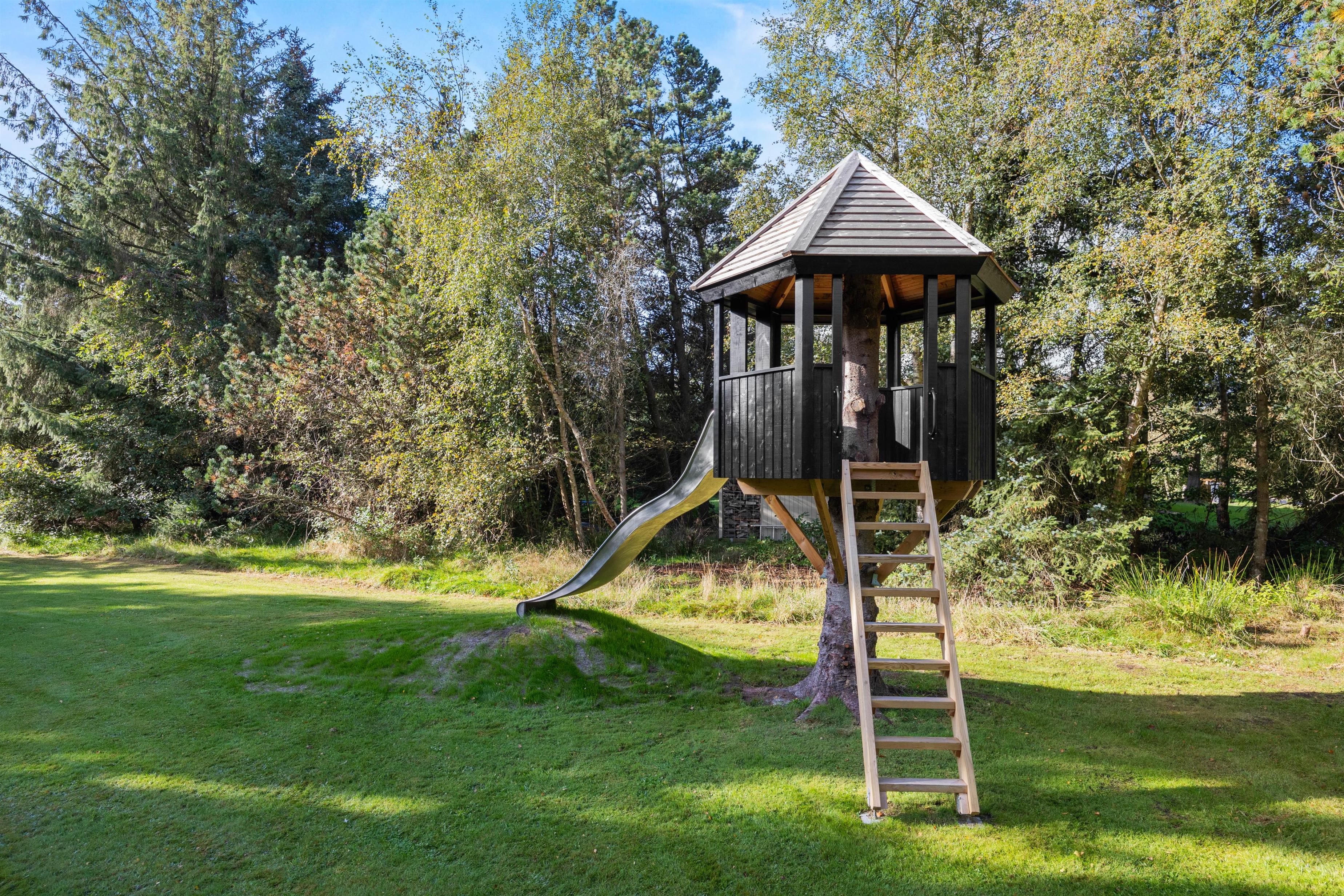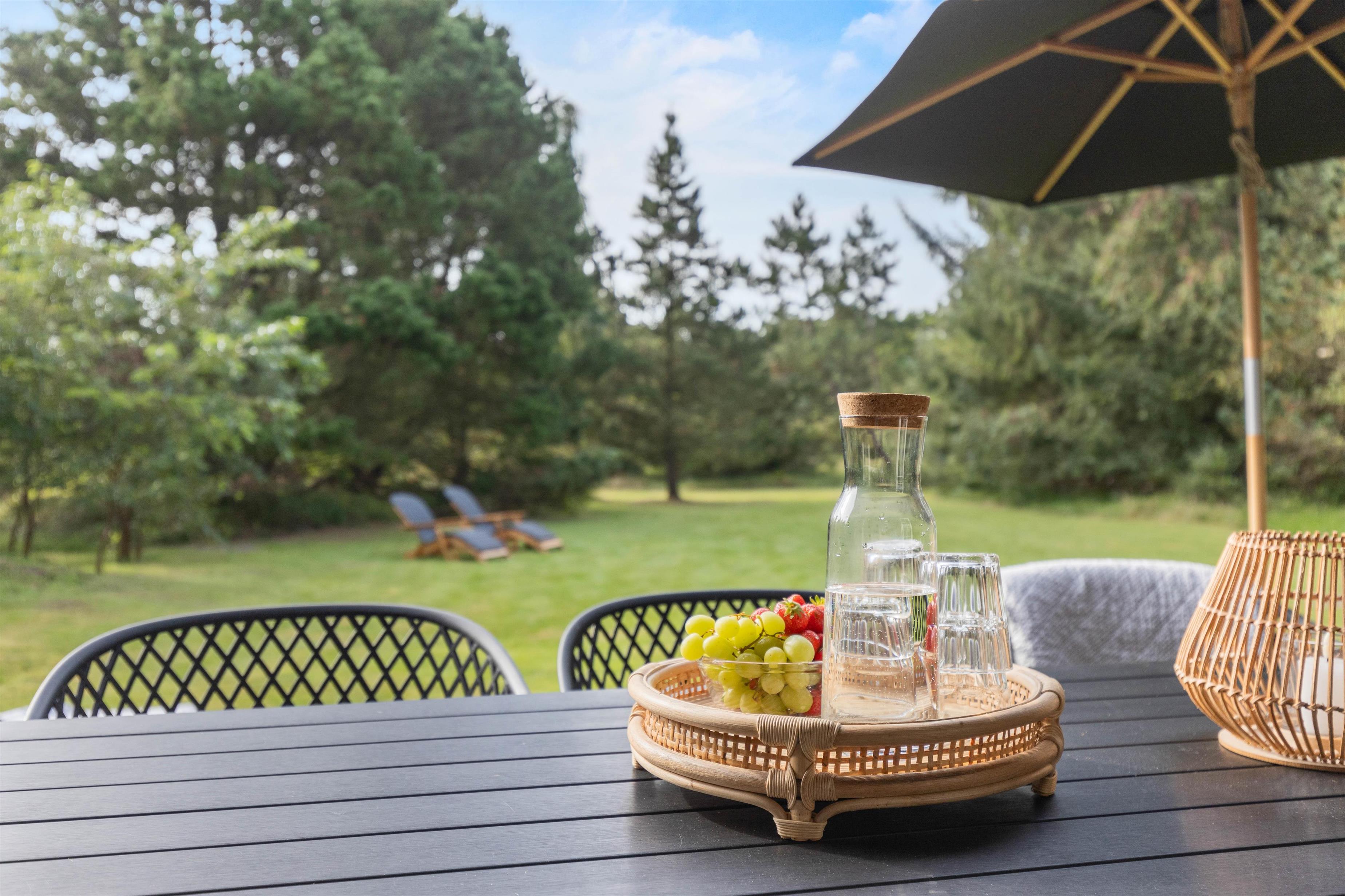 Den 2831 m2 store grund er udlagt både som naturgrund og græsplæne. Der er god plads til at børnene kan lege og gå på opdagelse, og fra terrassen kan I sidde ugenert og nyde ferien i de gode havemøbler. Terrassen er delvist overdækket, og der er god plads til at nyde et godt måltid fra gasgrillen og måske et glas vin, mens aftenen falder på.