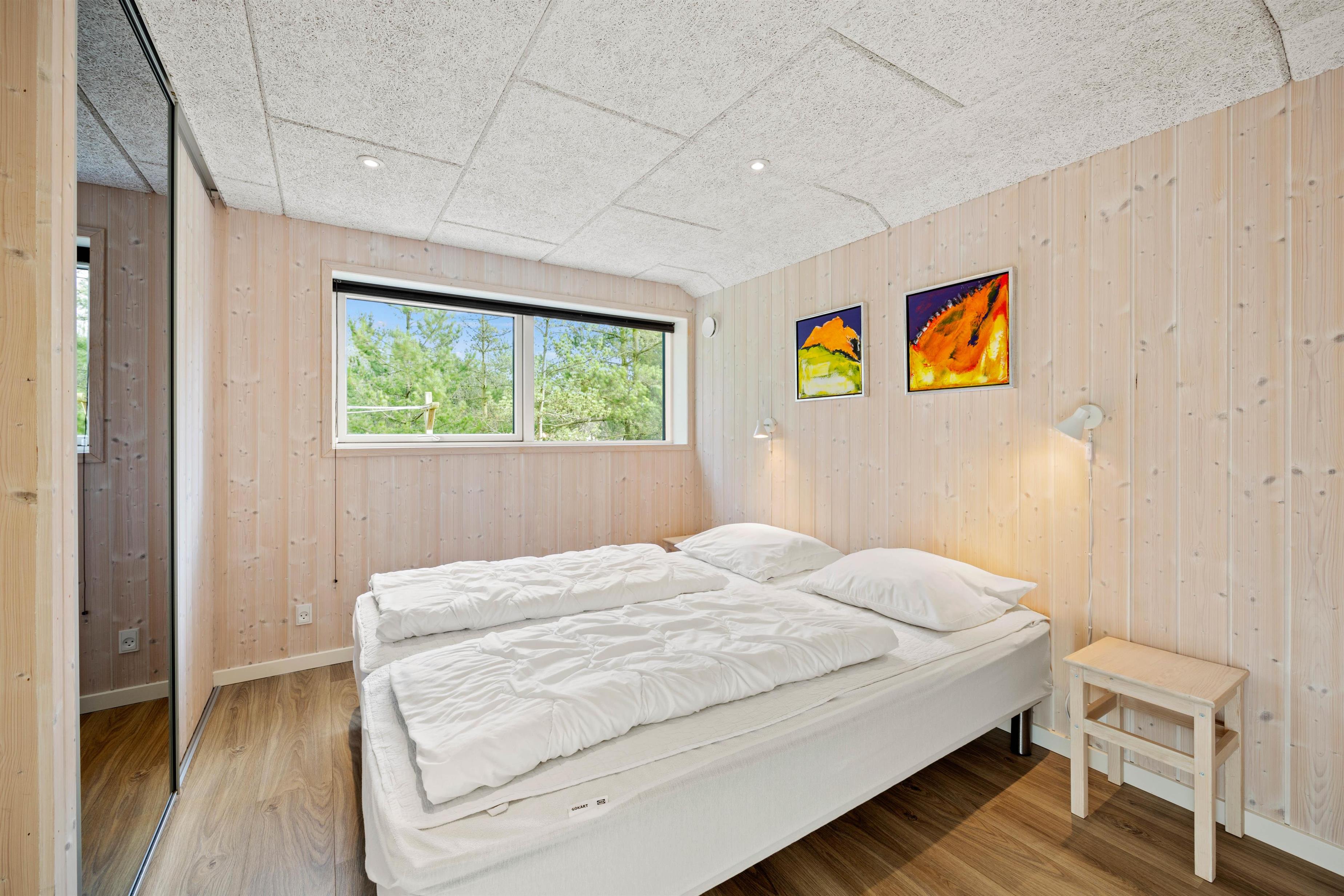 Efter en dejlig feriedag kan I søge mod feriehusets 5 soveværelser, hvor I kan få jer en god nats søvn. De resterende 2 sovepladser finder I på hemsen. Om morgenen skal I hverken fryse fødderne eller stå i kø, da der er hele 2 badeværelser med gulvvarme i sommerhuset. I kan desuden også få glæde af gulvvarme i alrummet.