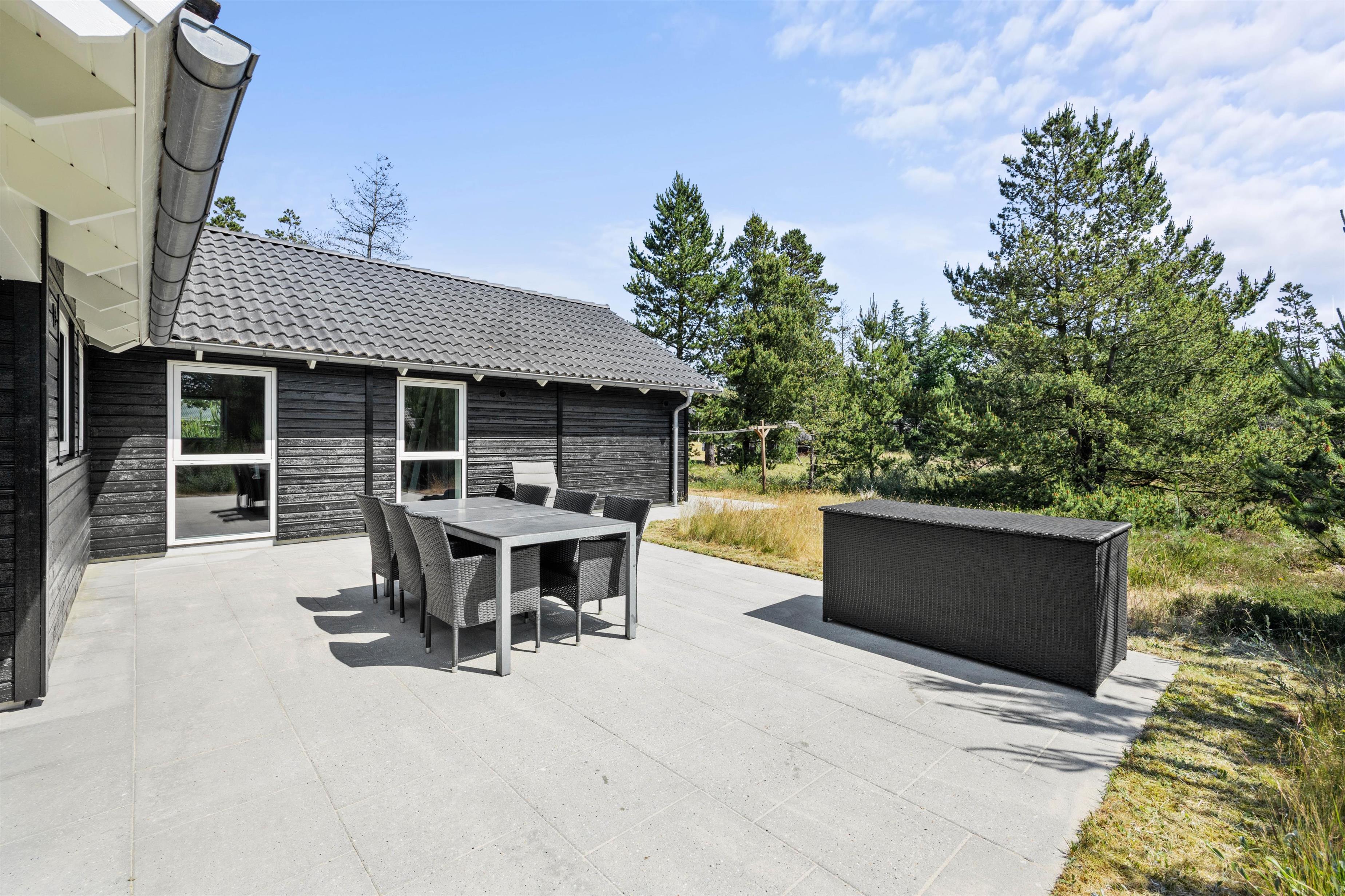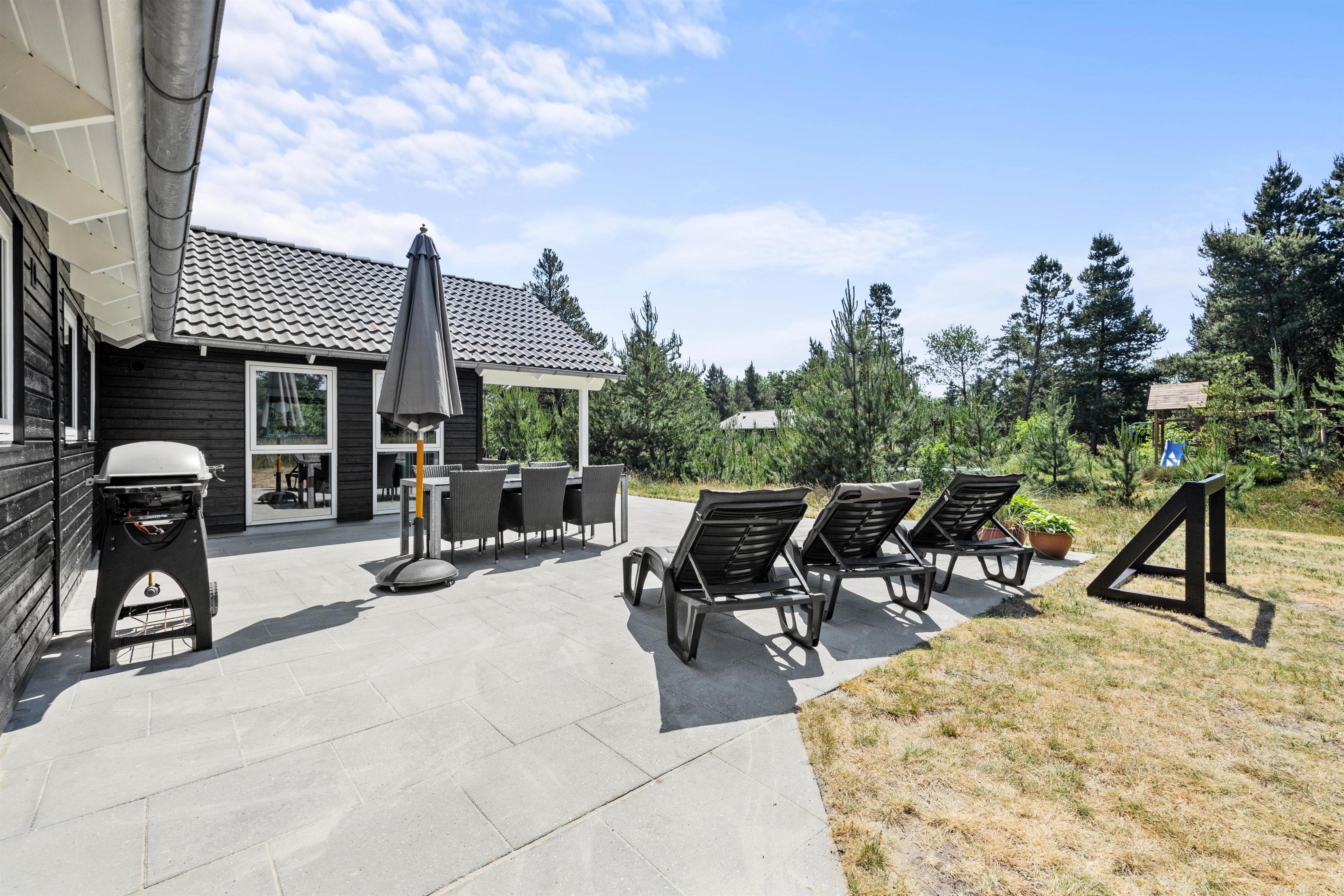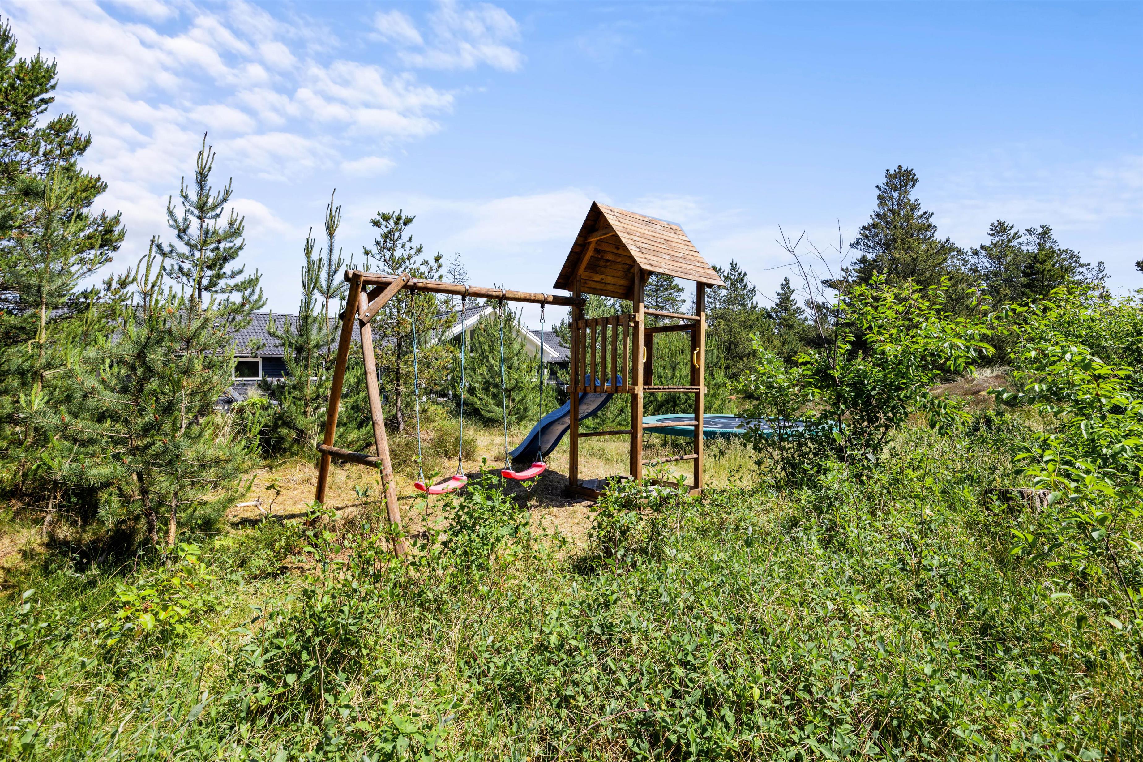 Feriens yngste gæster vil uden tvivl elske at lege i den store have, hvor der også er både en sandkasse og en gynge til dem. Mens de leger i haven, kan I andre finde jer en god plads på terrassen, hvor I kan læne jer tilbage i havemøbler og liggestole. Terrassen er delvist overdækket, og I har derfor både mulighed for at sidde i sol og skygge.