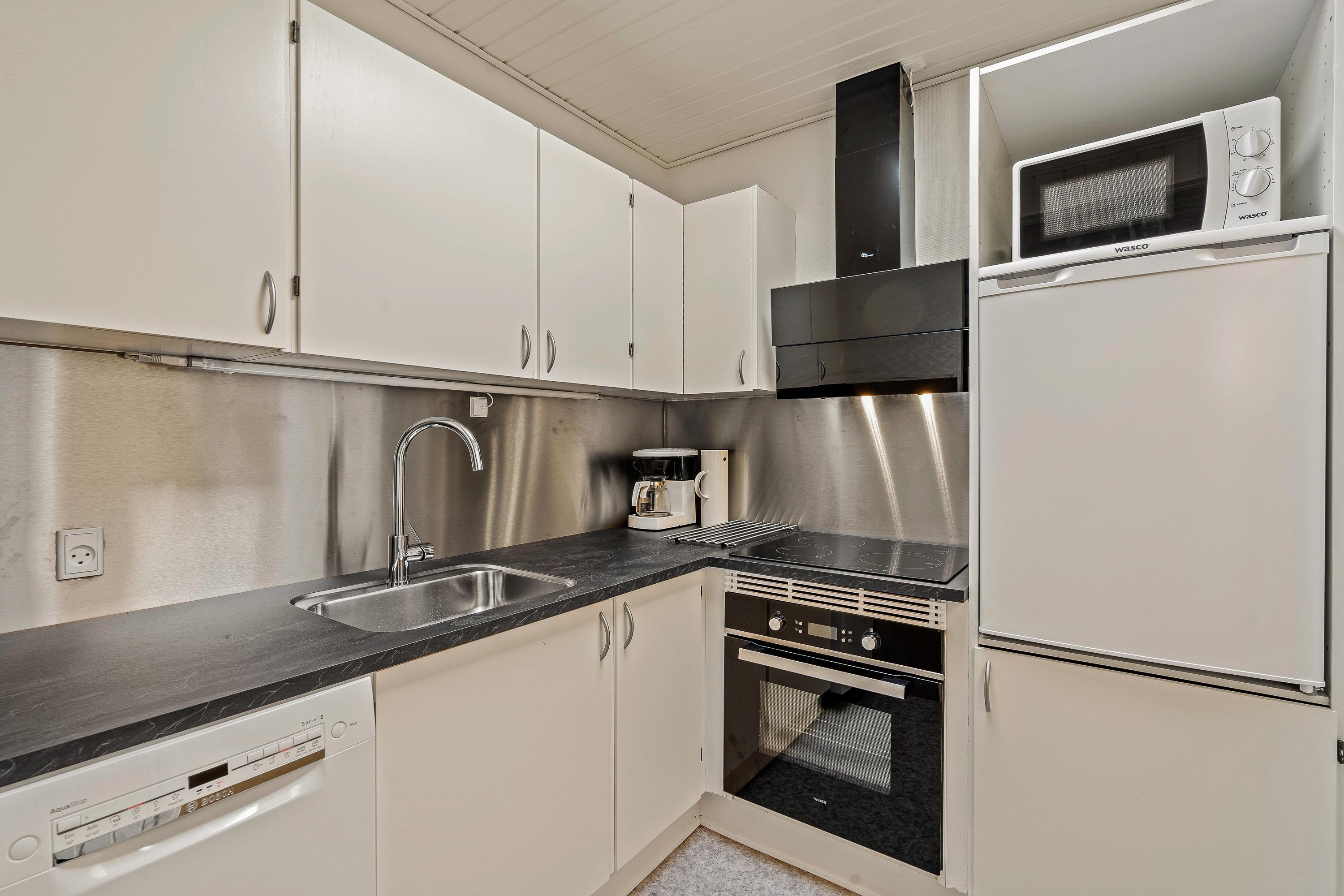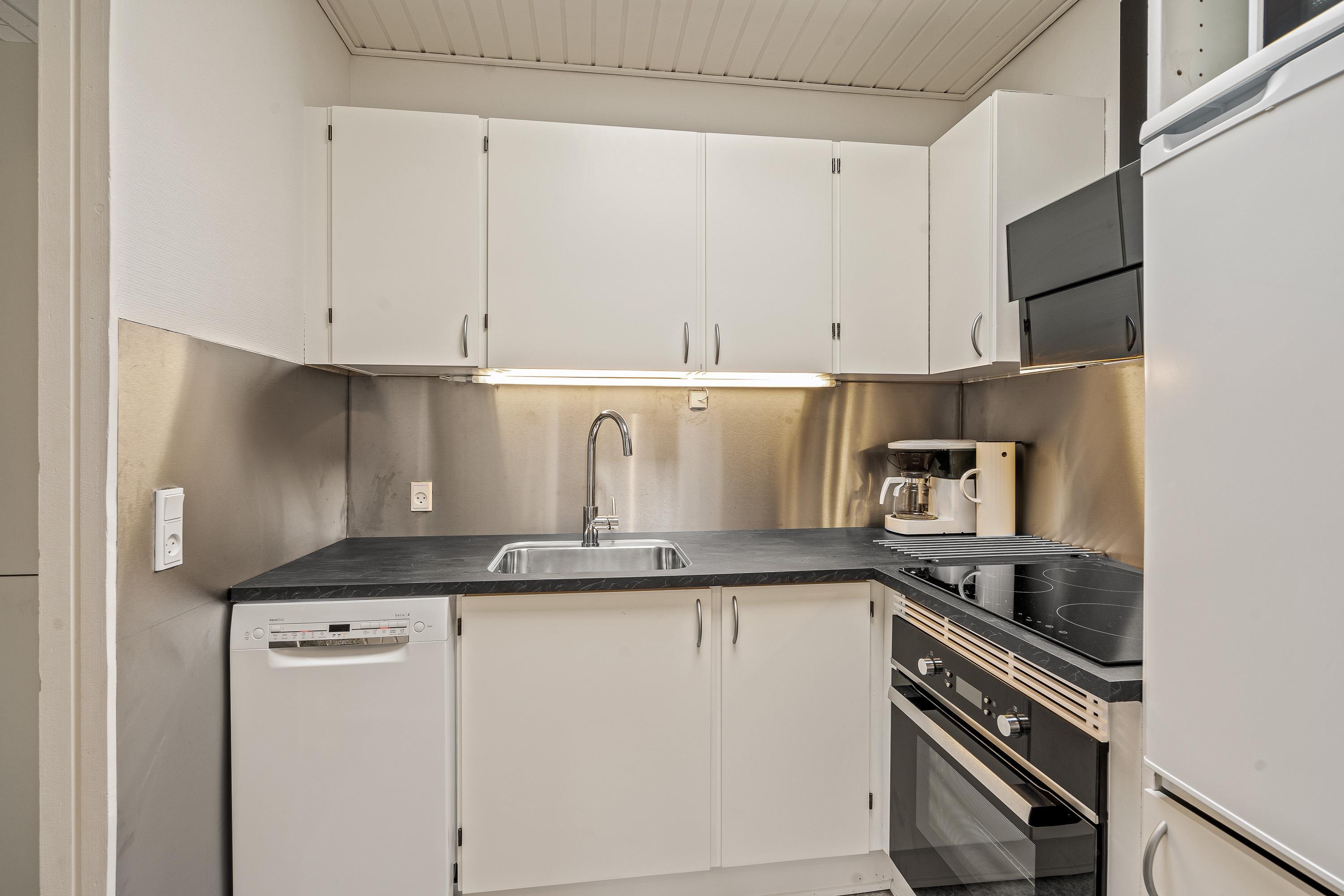 Hjertet i feriehuset er uden tvivl alrummet, hvor køkkenet ligger i åben forbindelse med spiseplads og stue. I alrummet kan I være sammen om forskellige aktiviteter såsom madlavning, spil og film. Efter madlavningen i køkkenet klarer opvaskemaskinen opvasken for jer.