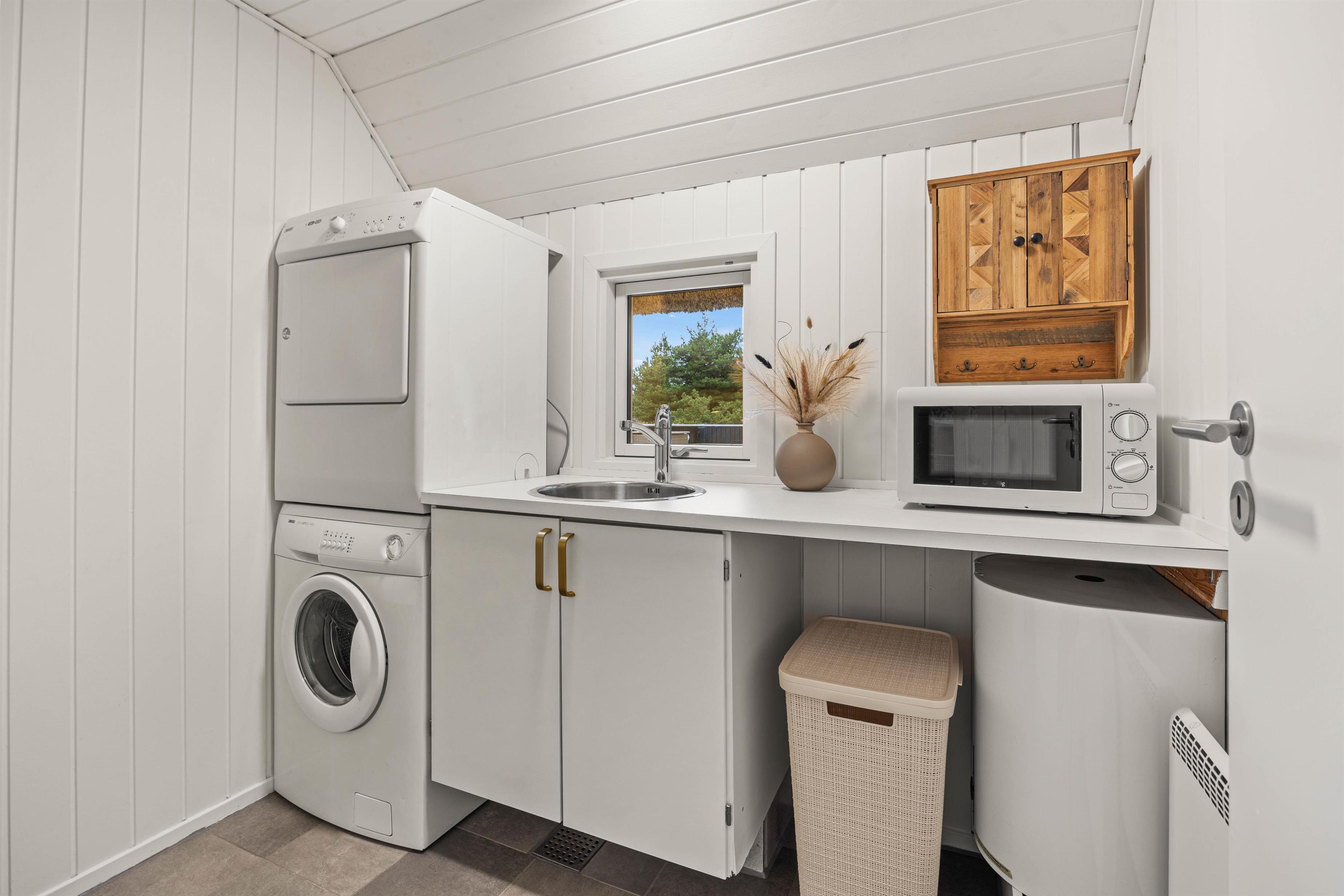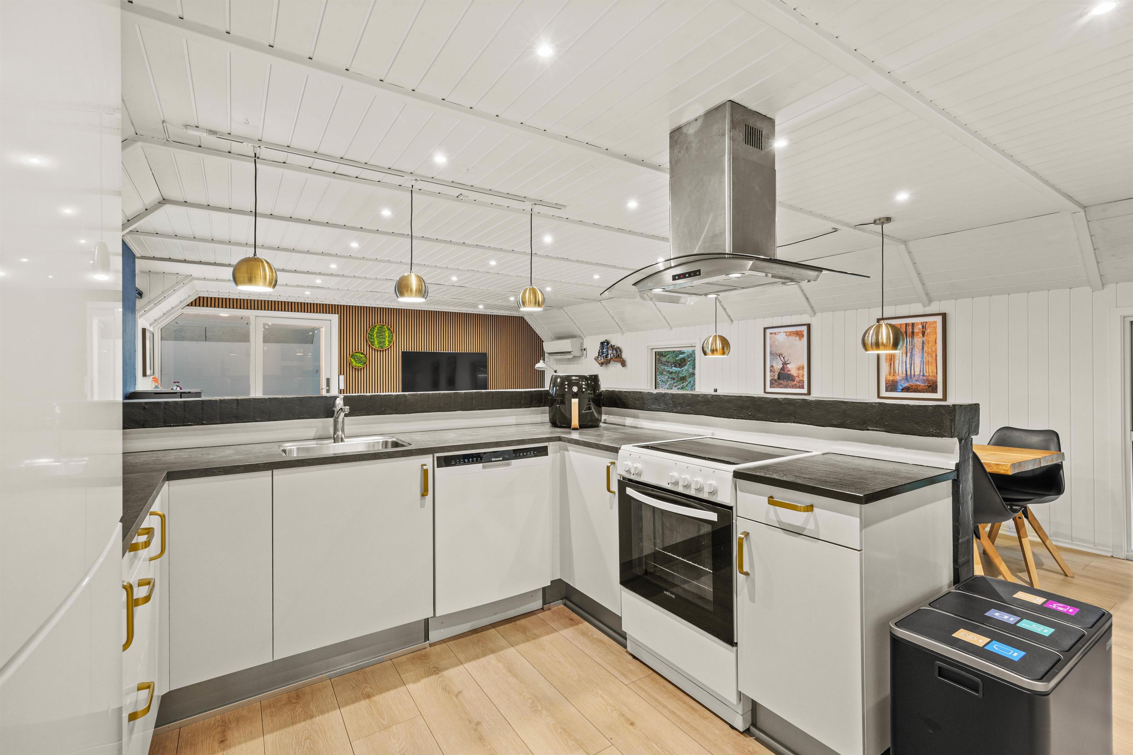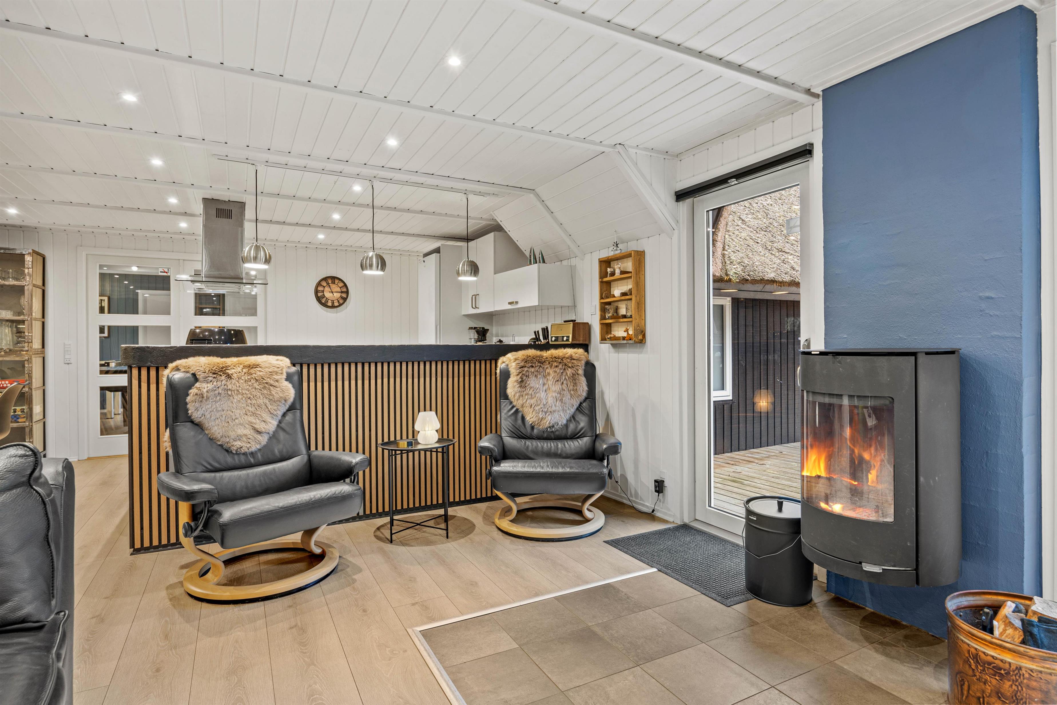 Huset blev renoveret i 2021, og hjertet af dette sommerhus er uden tvivl det store opholdsområde, som byder dig velkommen med gode faciliteter. Her kan I hygge jer foran den knitrende brændeovn og afrunde jeres aftener i ro og mag. Badeværelsets gulvvarme giver en særlig komfort efter en frisk dag på stranden, som ligger kun ca. 700 meter væk.